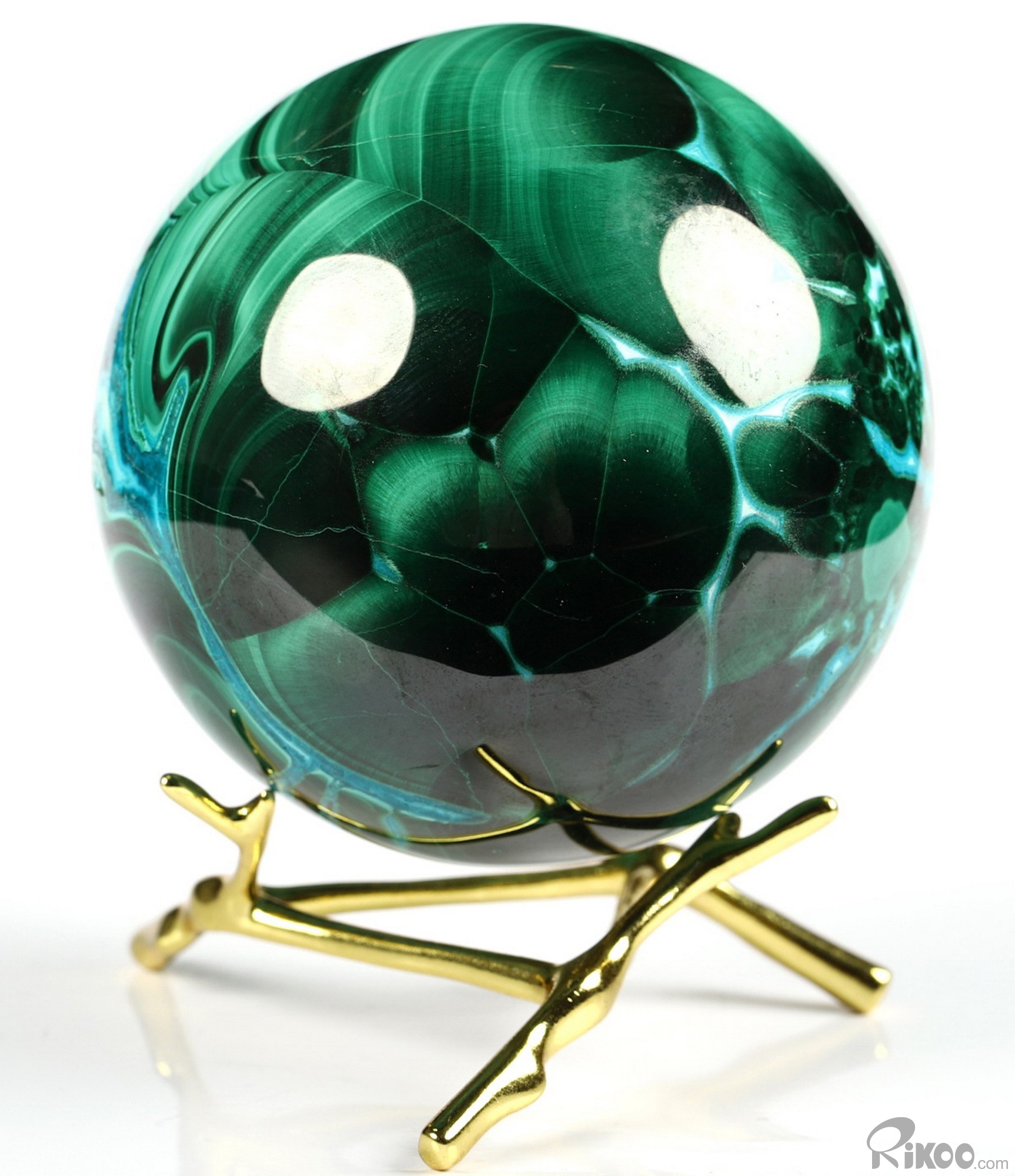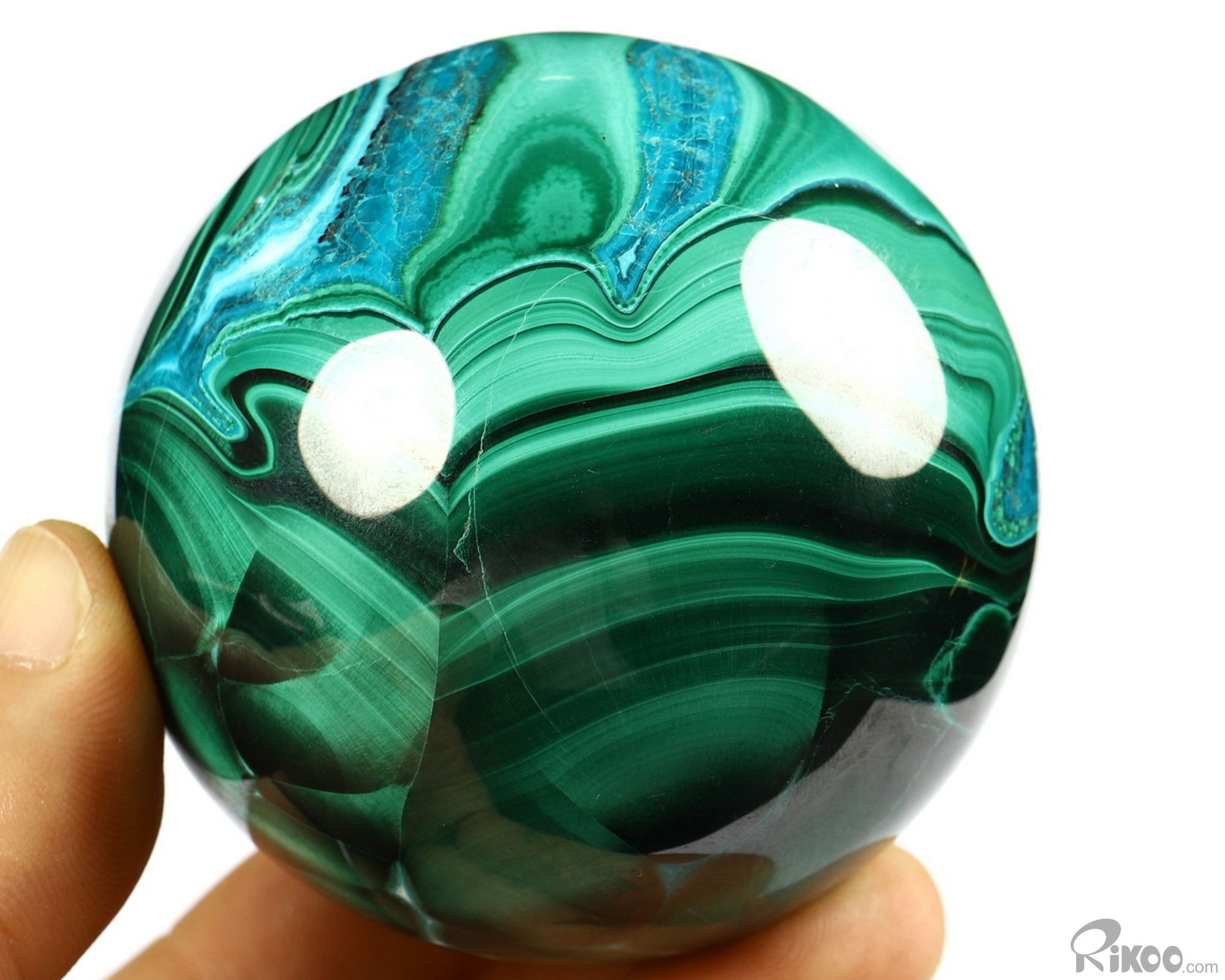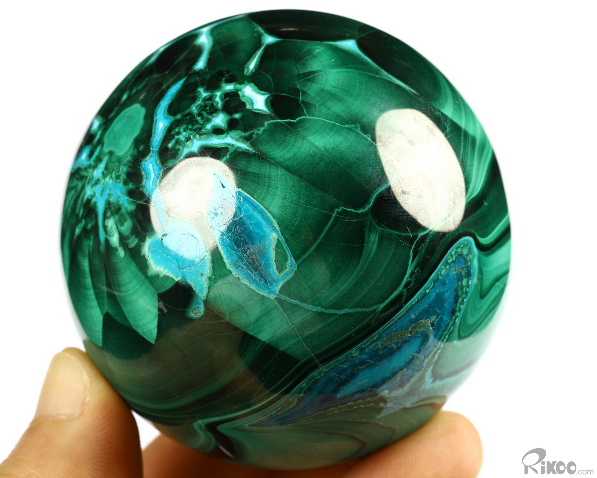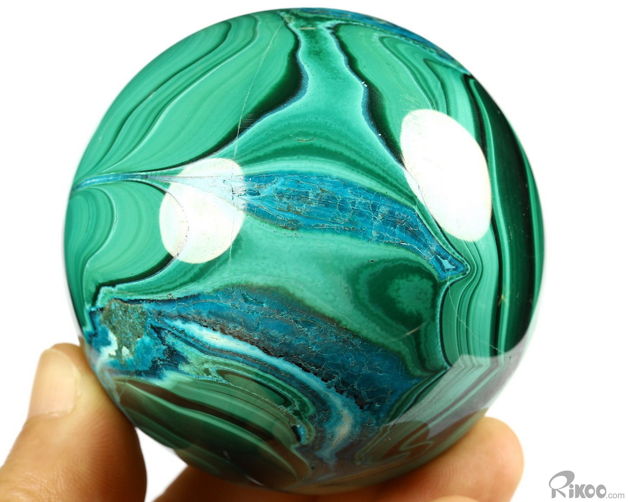 Gemstone 2.4" Malachite Carved Crystal Sphere, Crystal Healing