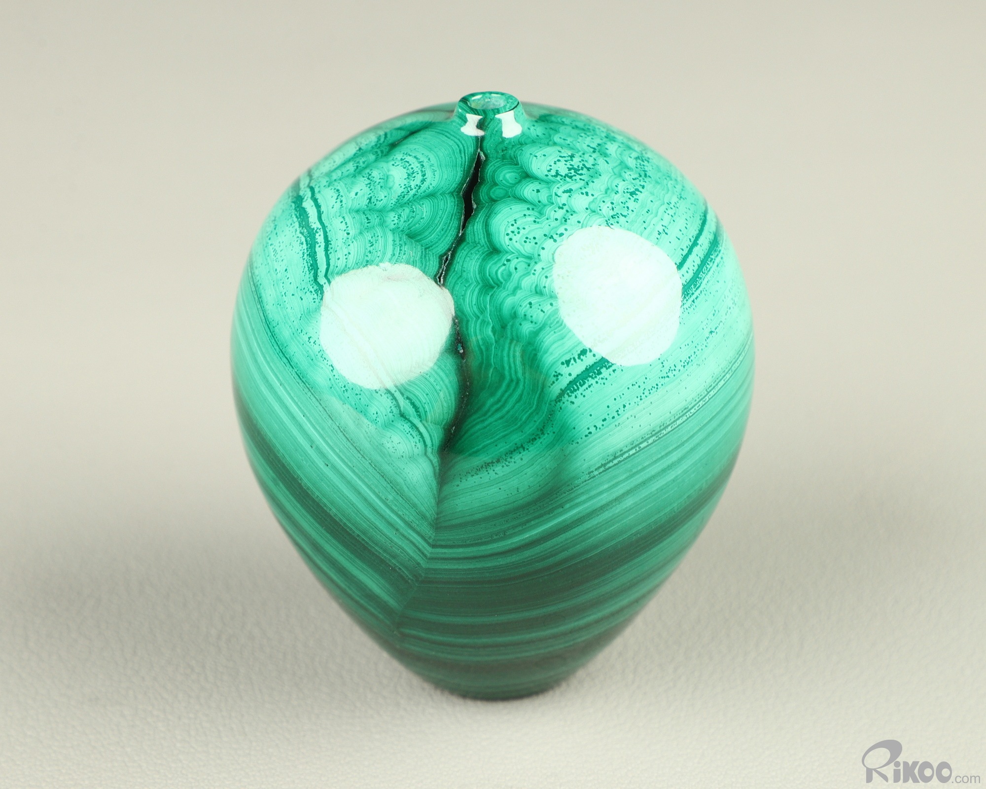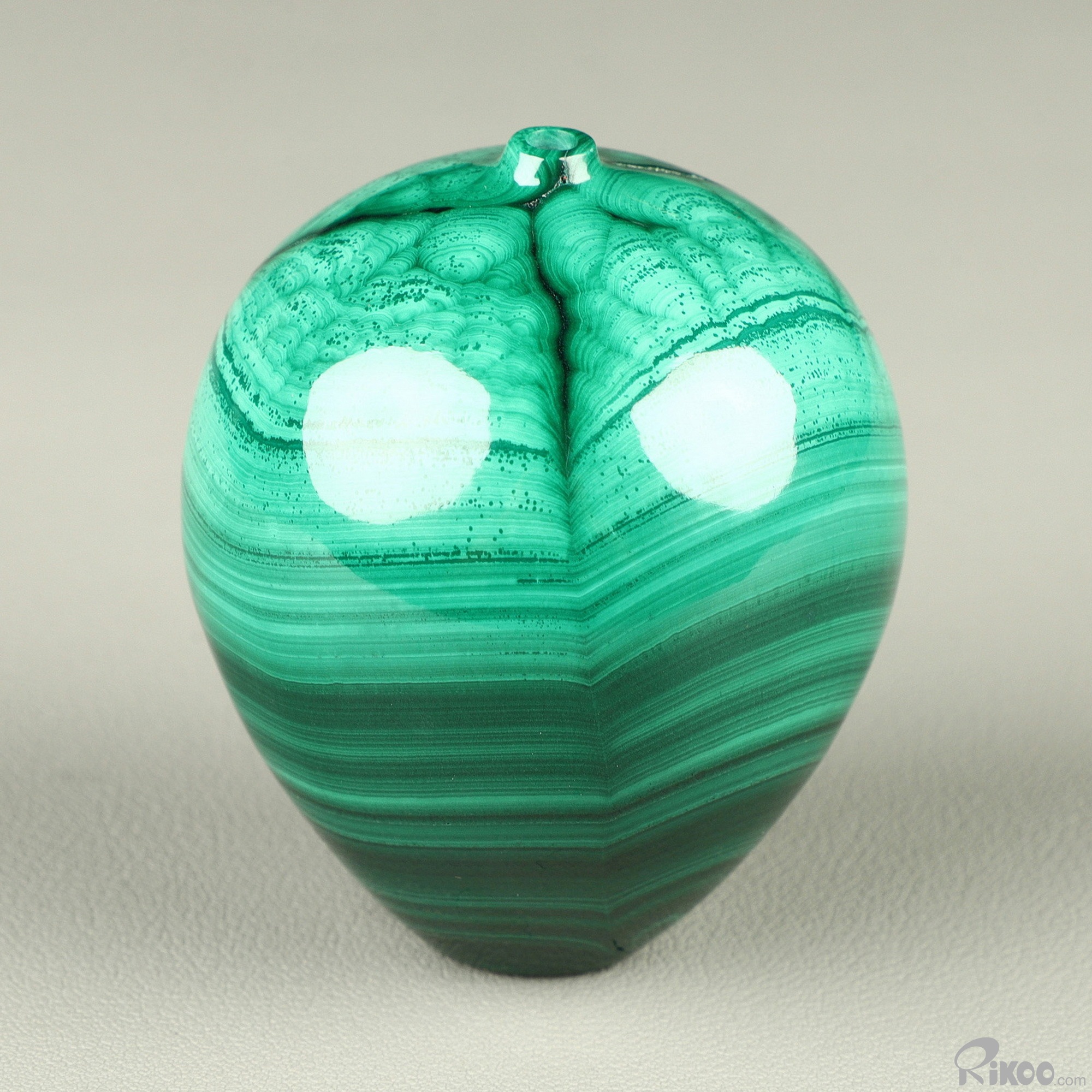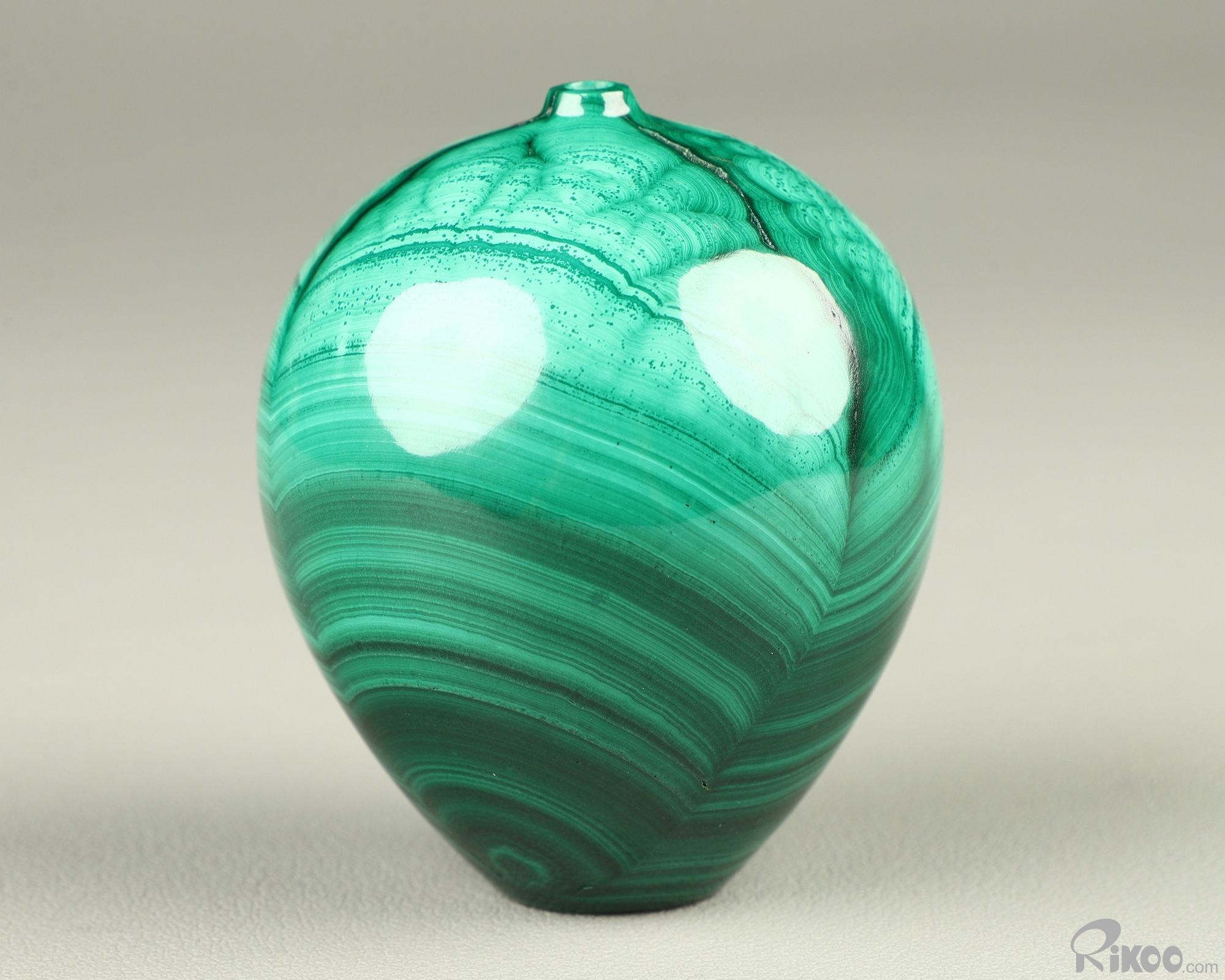 You are looking at a Malachite vase sculpture. The sculpture is 2.4 inches long.