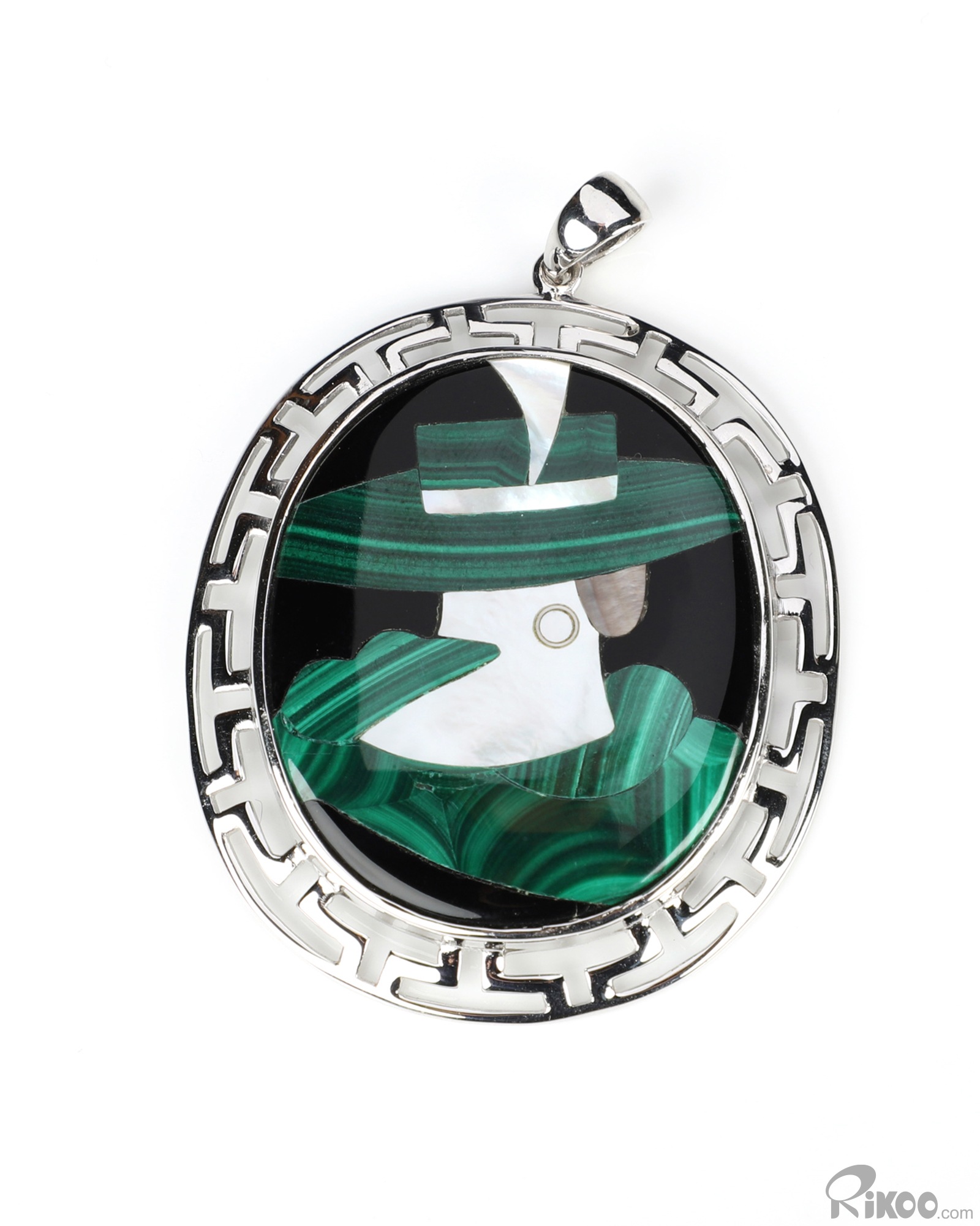 Gemstone 2.4" Malachite and 925 Silver Hand Carved Crystal Necklace, Crystal Healing