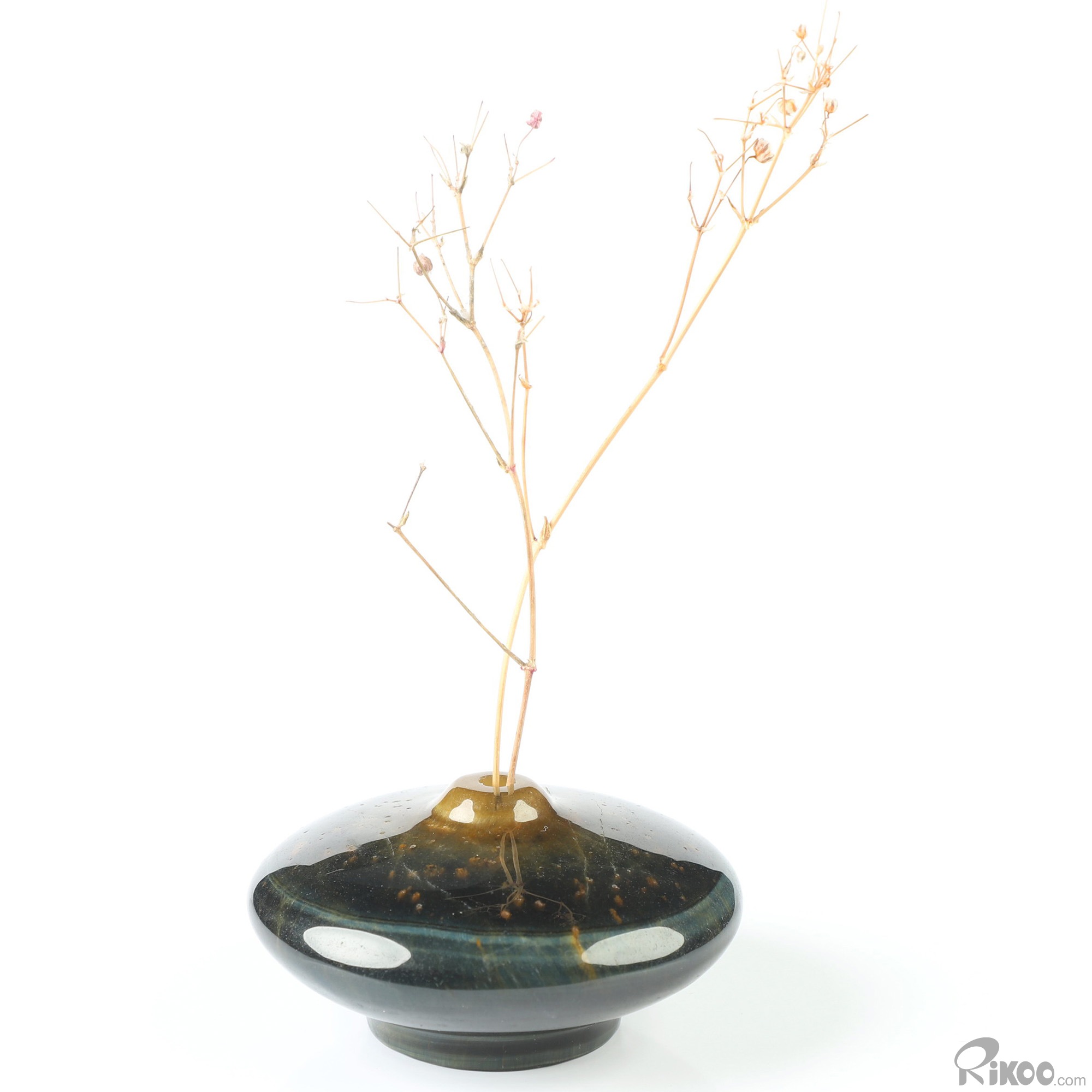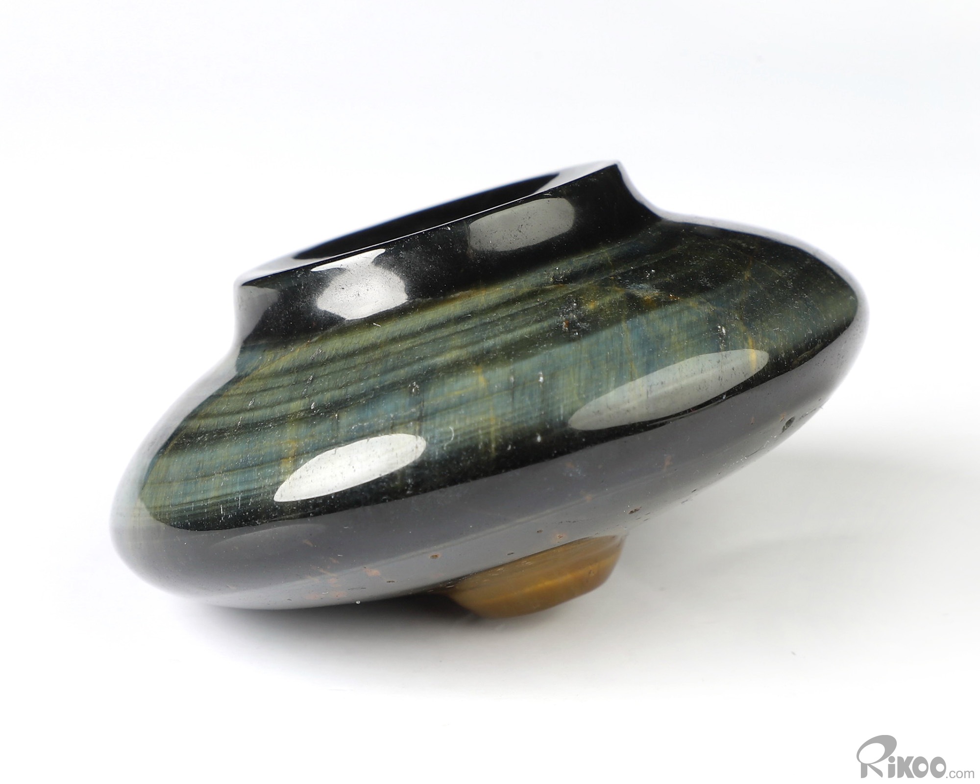 Gemstone 2.5" Blue & Gold Tiger's Eye Hand Carved Crystal Vase Sculpture, Crystal Healing