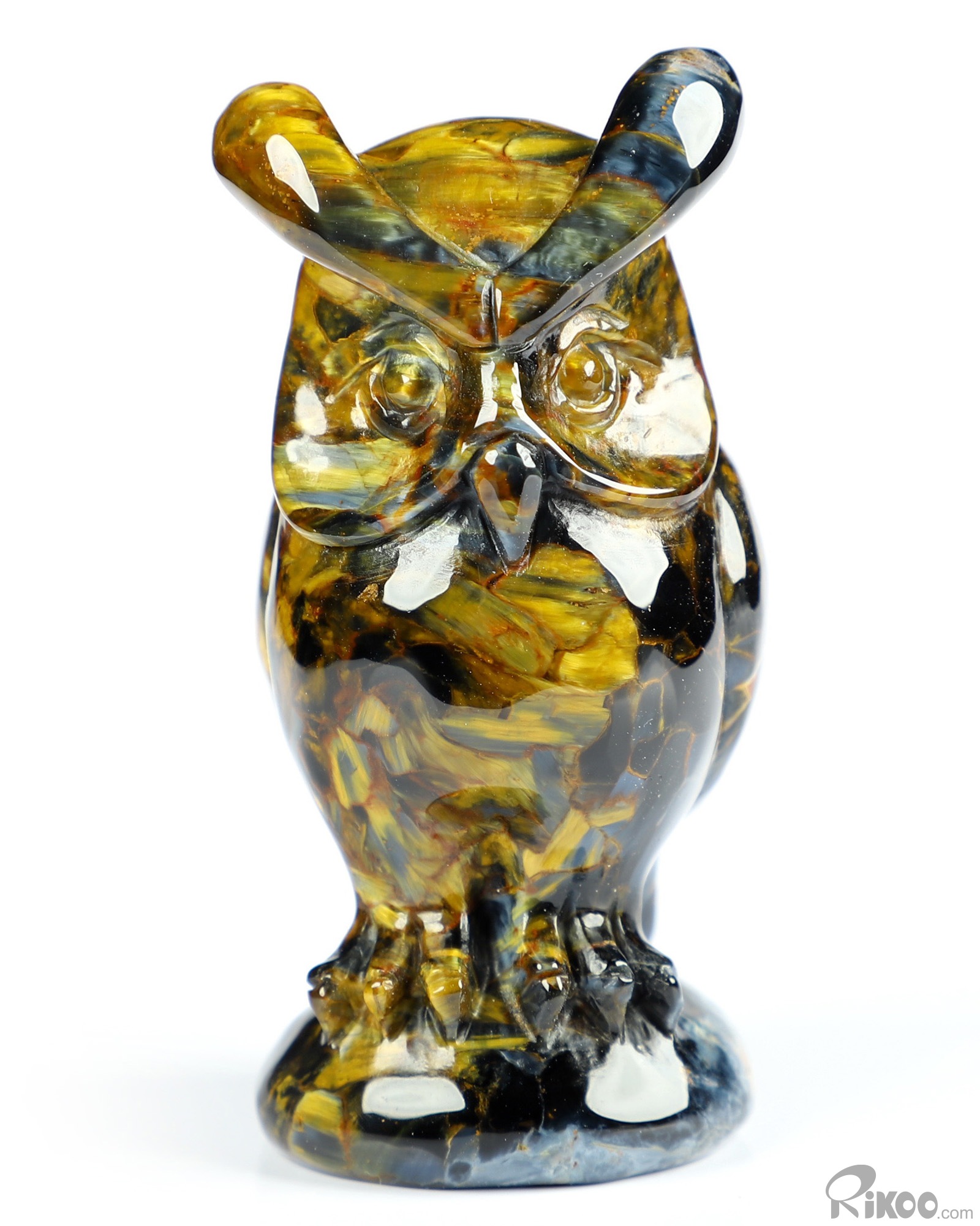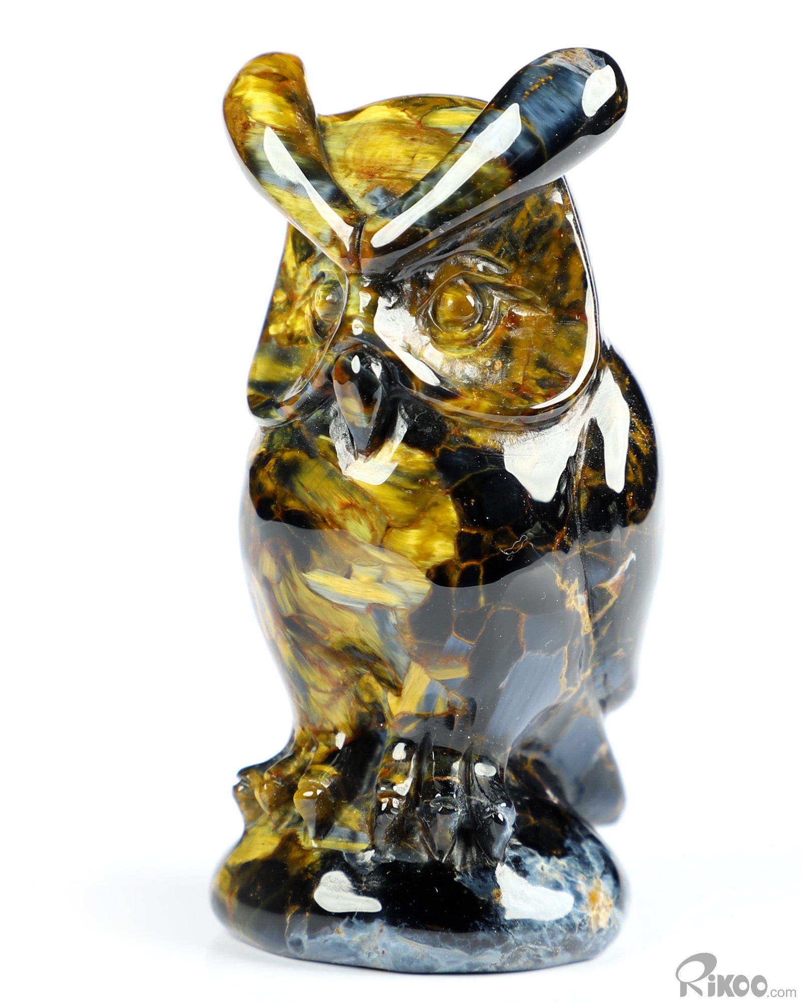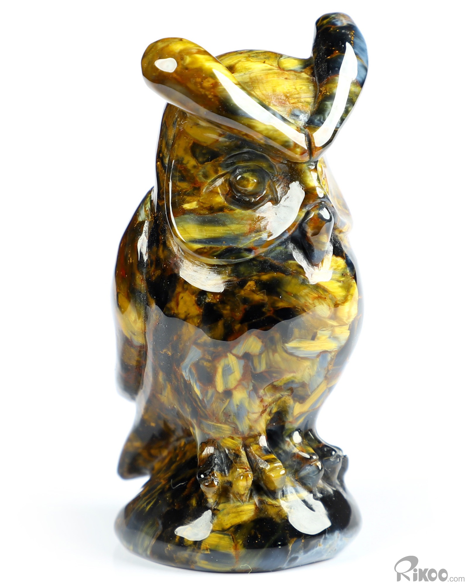 Gemstone 2.5" Blue & Red Pietersite Carved Crystal Owl, Realistic, Crystal Healing