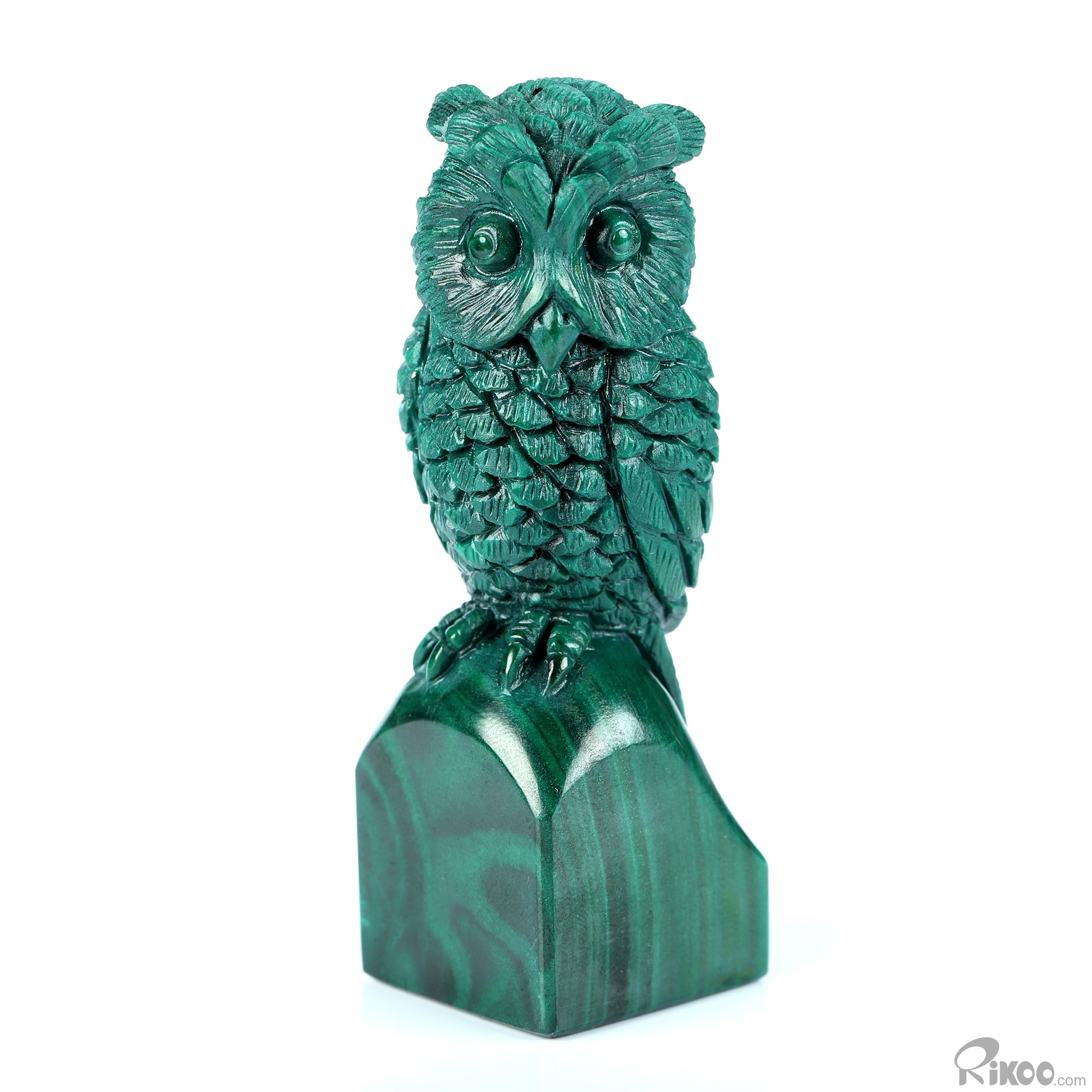 Gemstone 2.5" Malachite Hand Carved Crystal Owl Sculpture, Crystal Healing