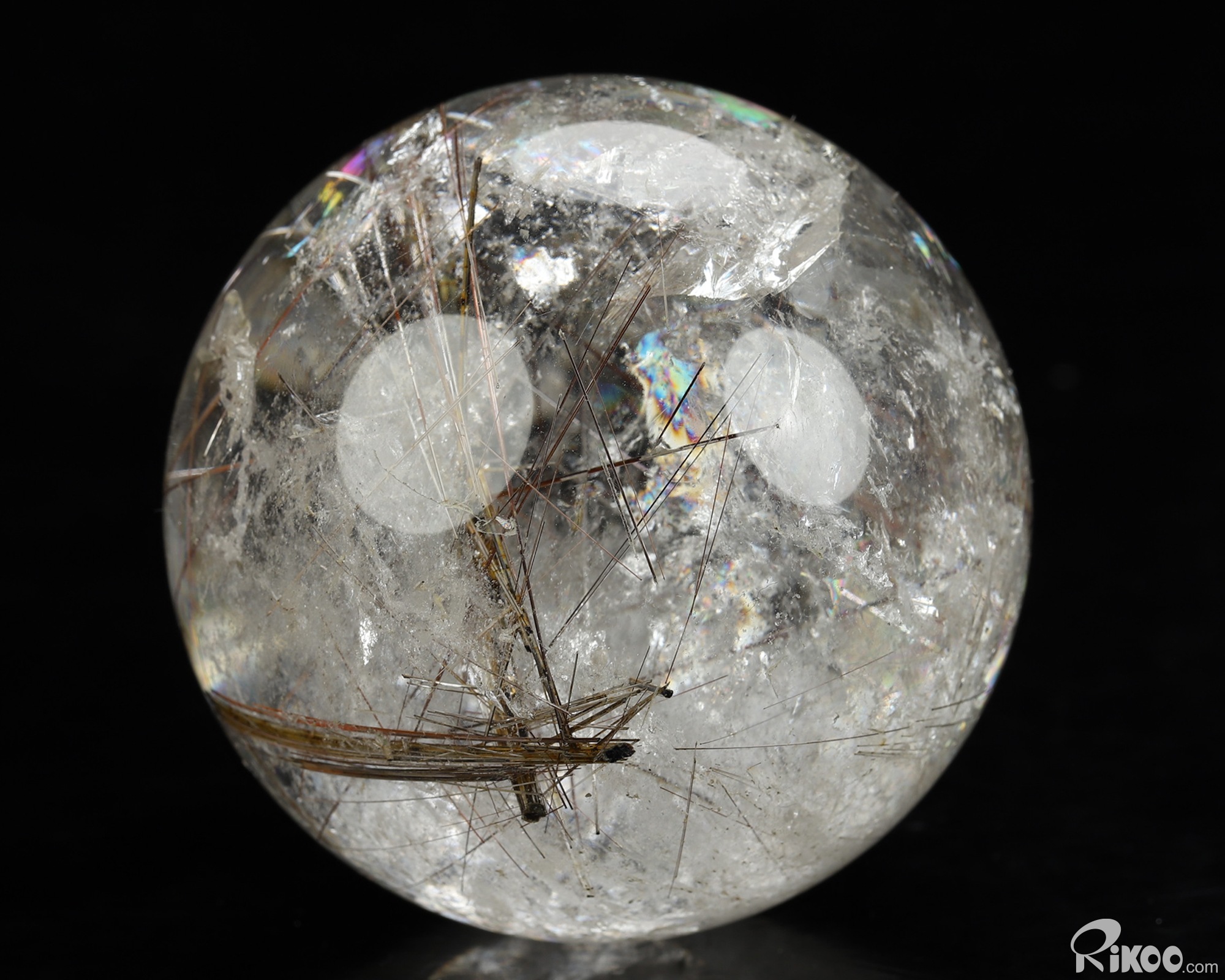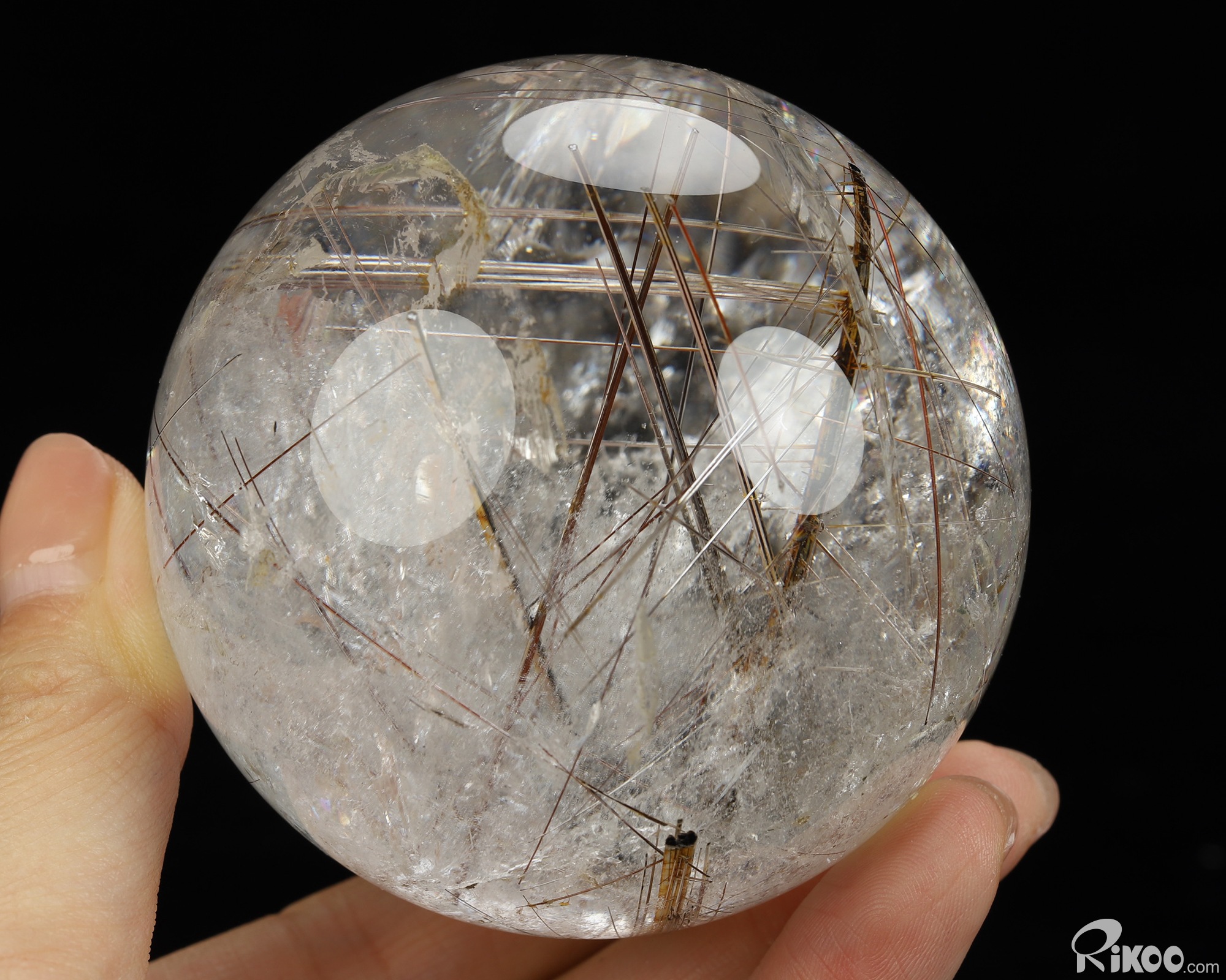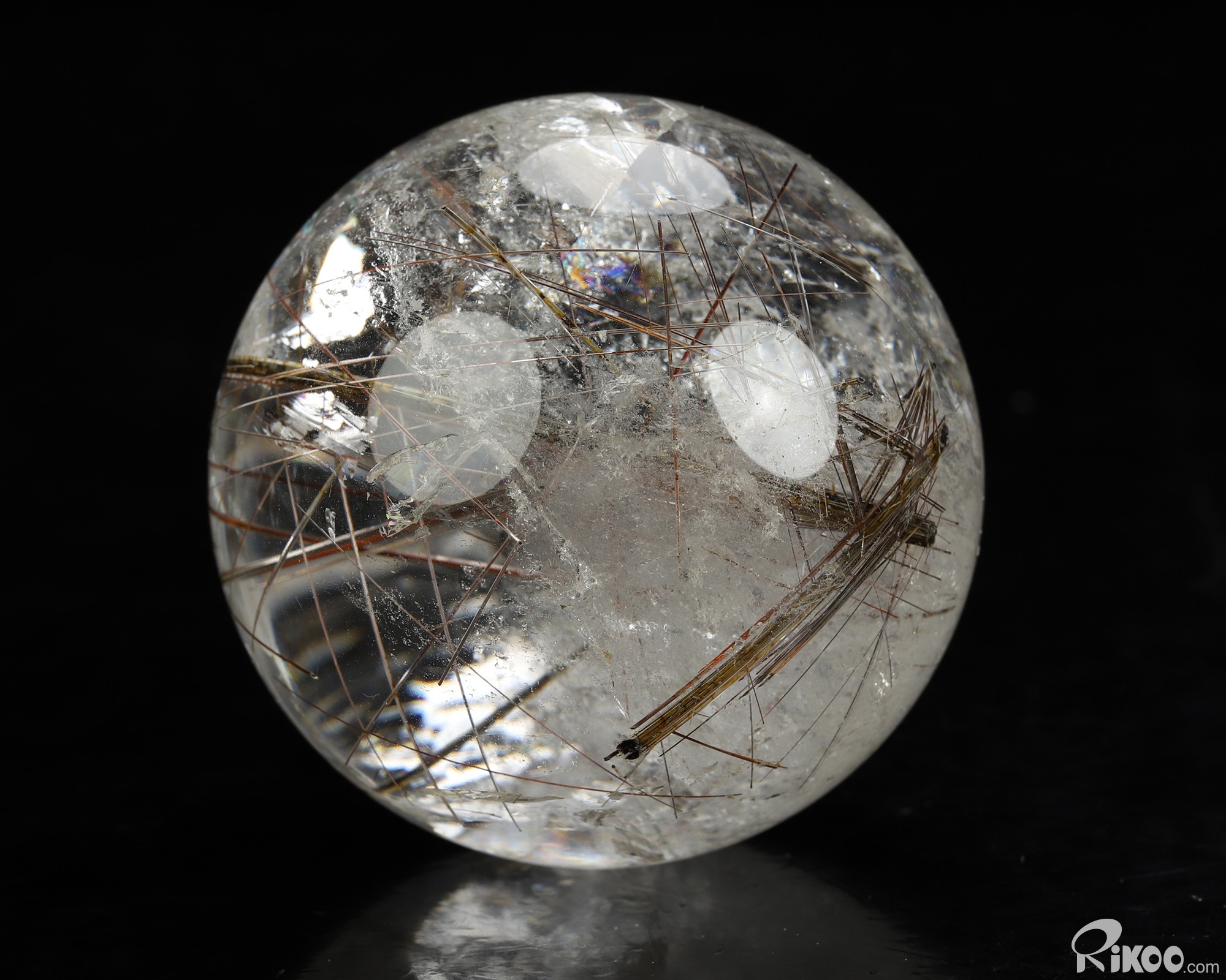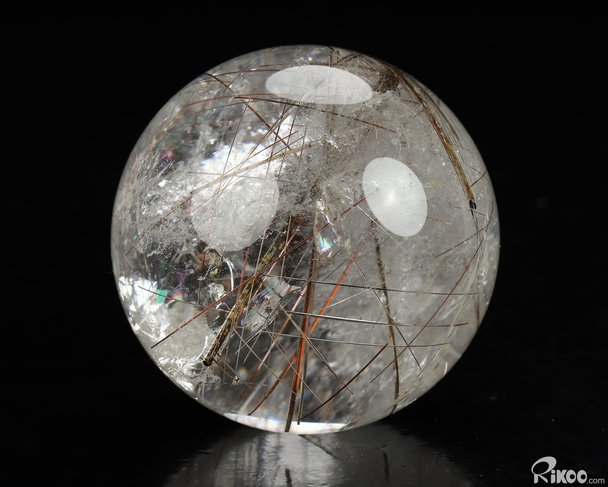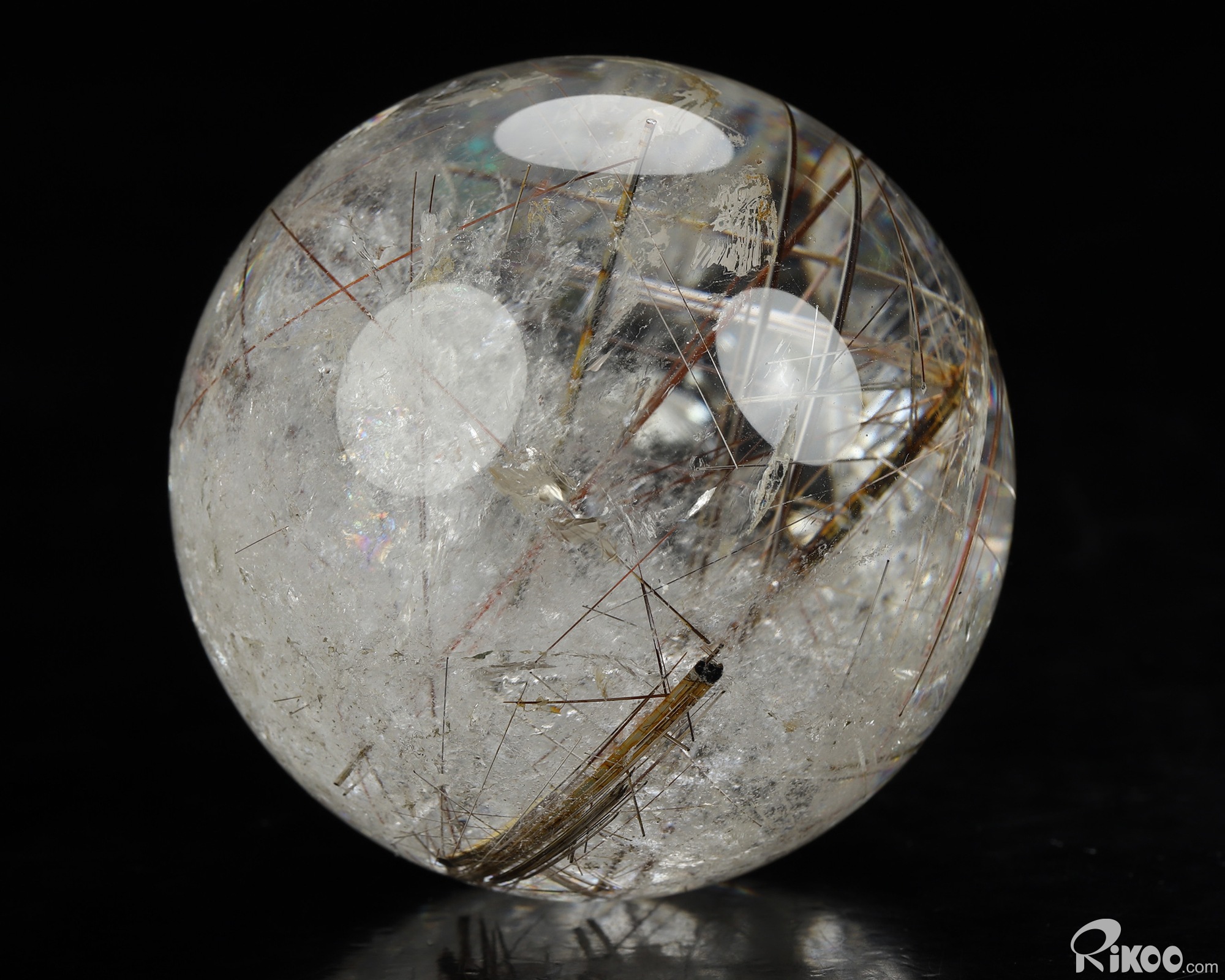 Gemstone 2.6" Rutilated Quartz Rock Crystal Hand Carved Crystal Ball/Sphere, Crystal Healing