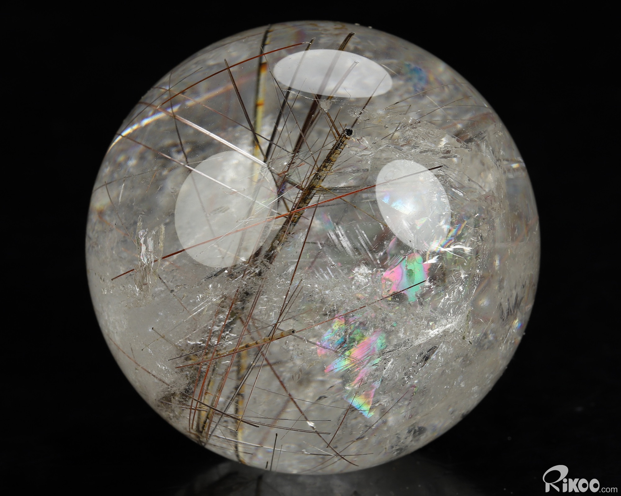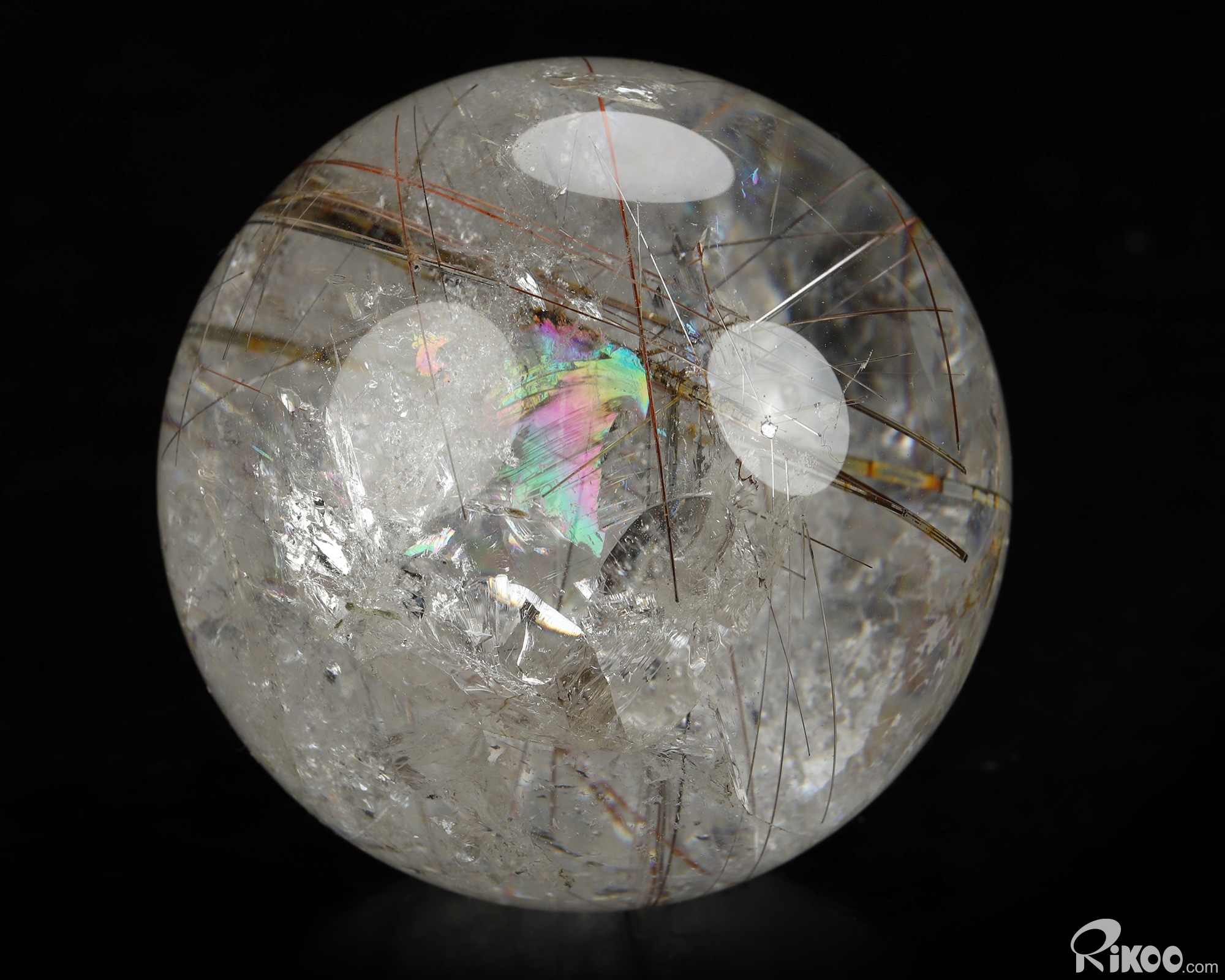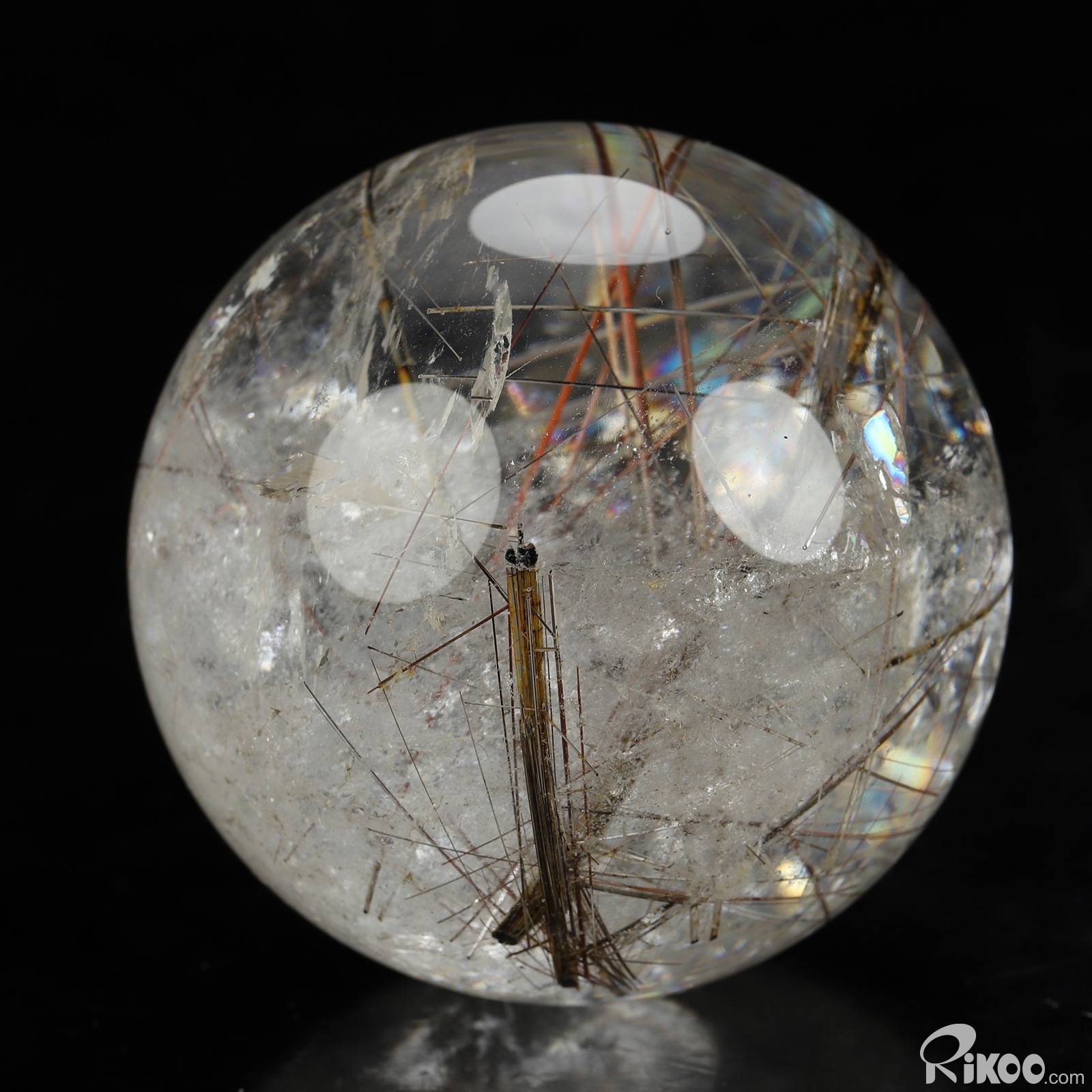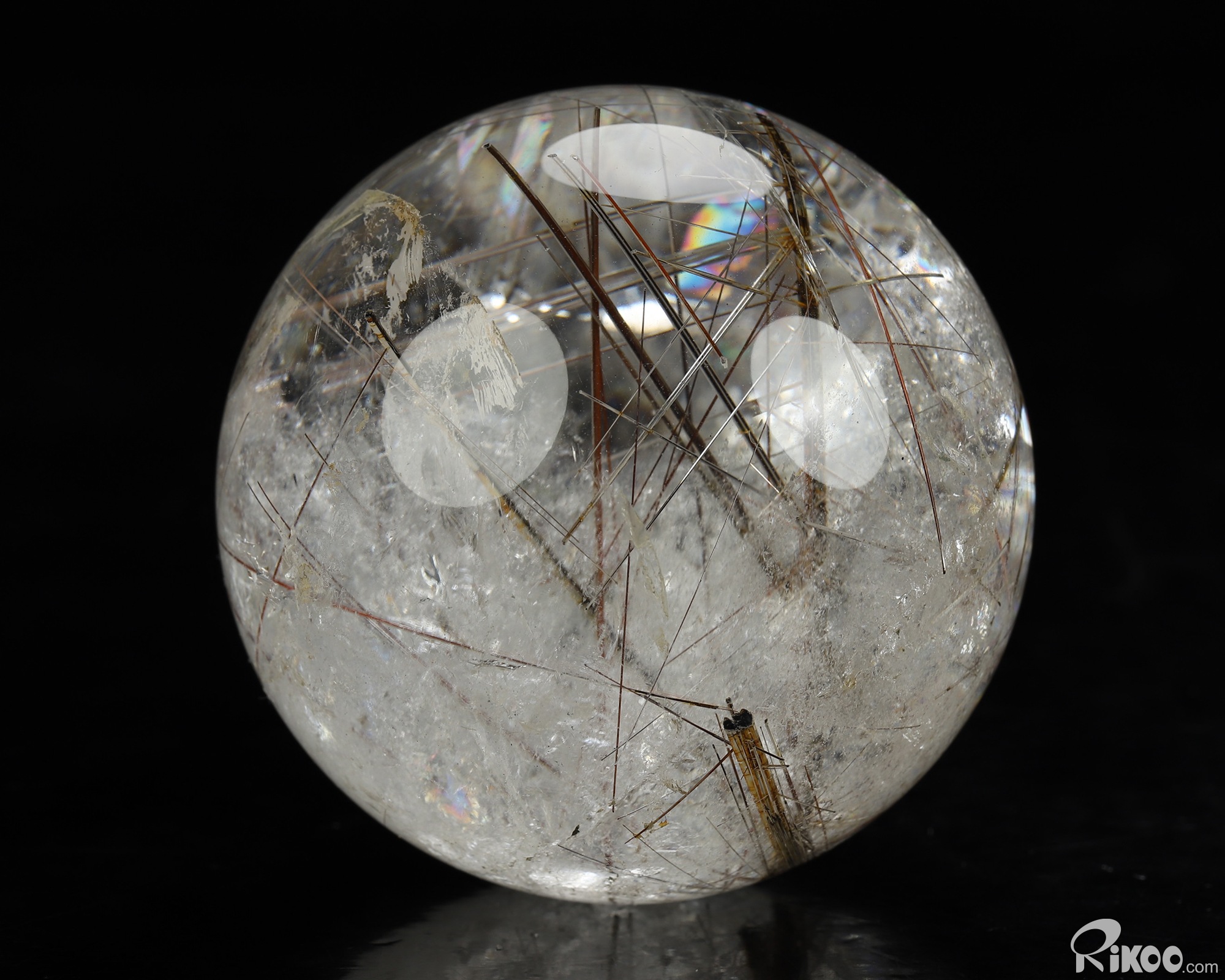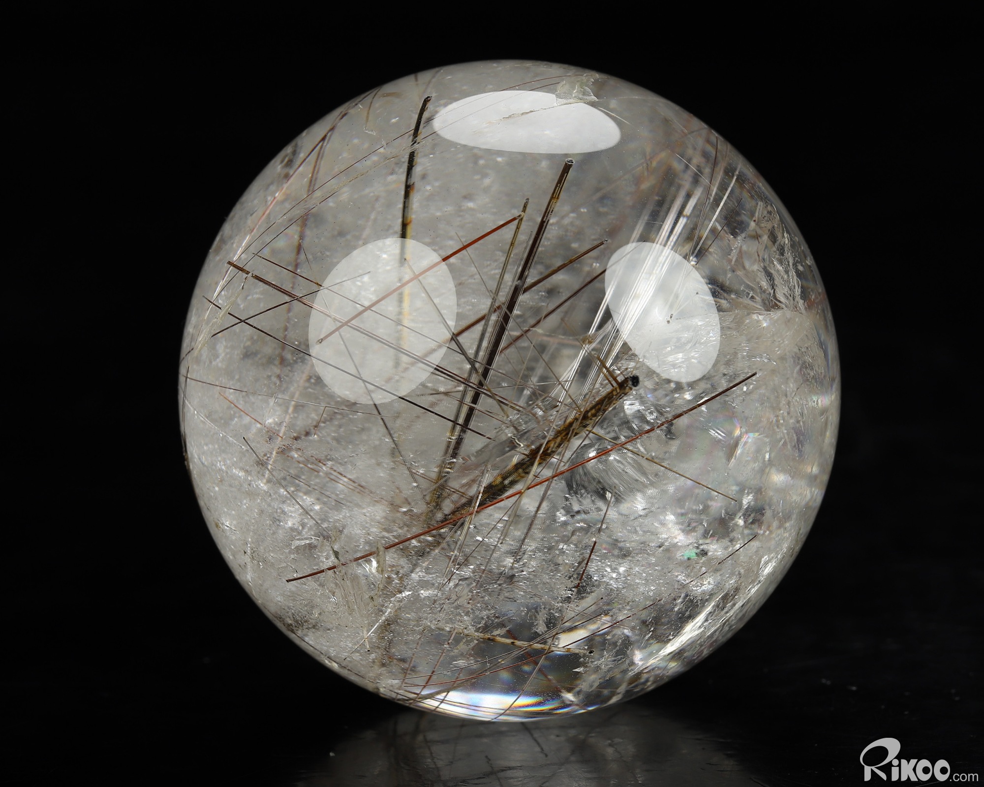 Gemstone 2.6" Rutilated Quartz Rock Crystal Hand Carved Crystal Ball/Sphere, Crystal Healing