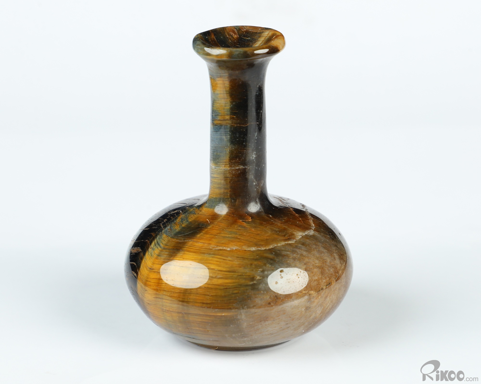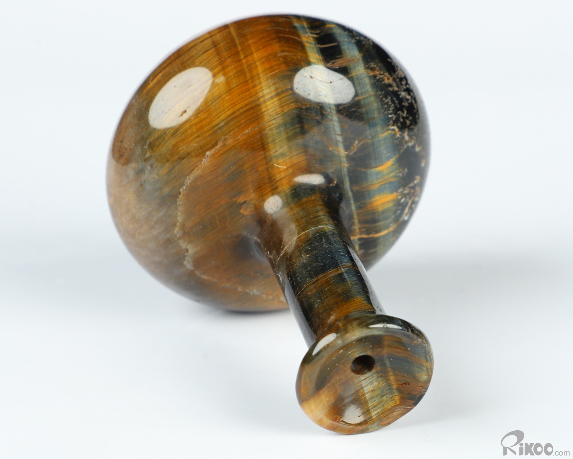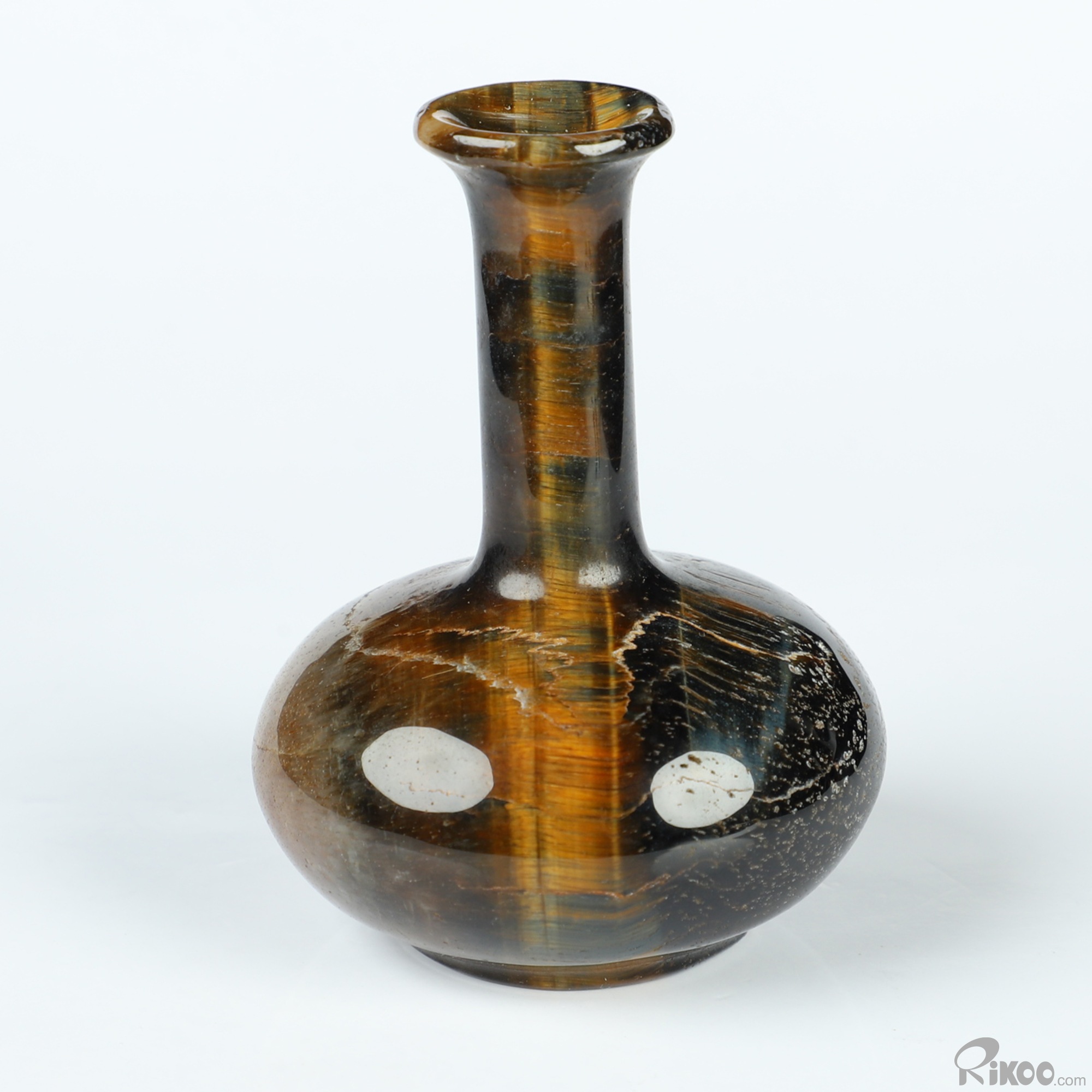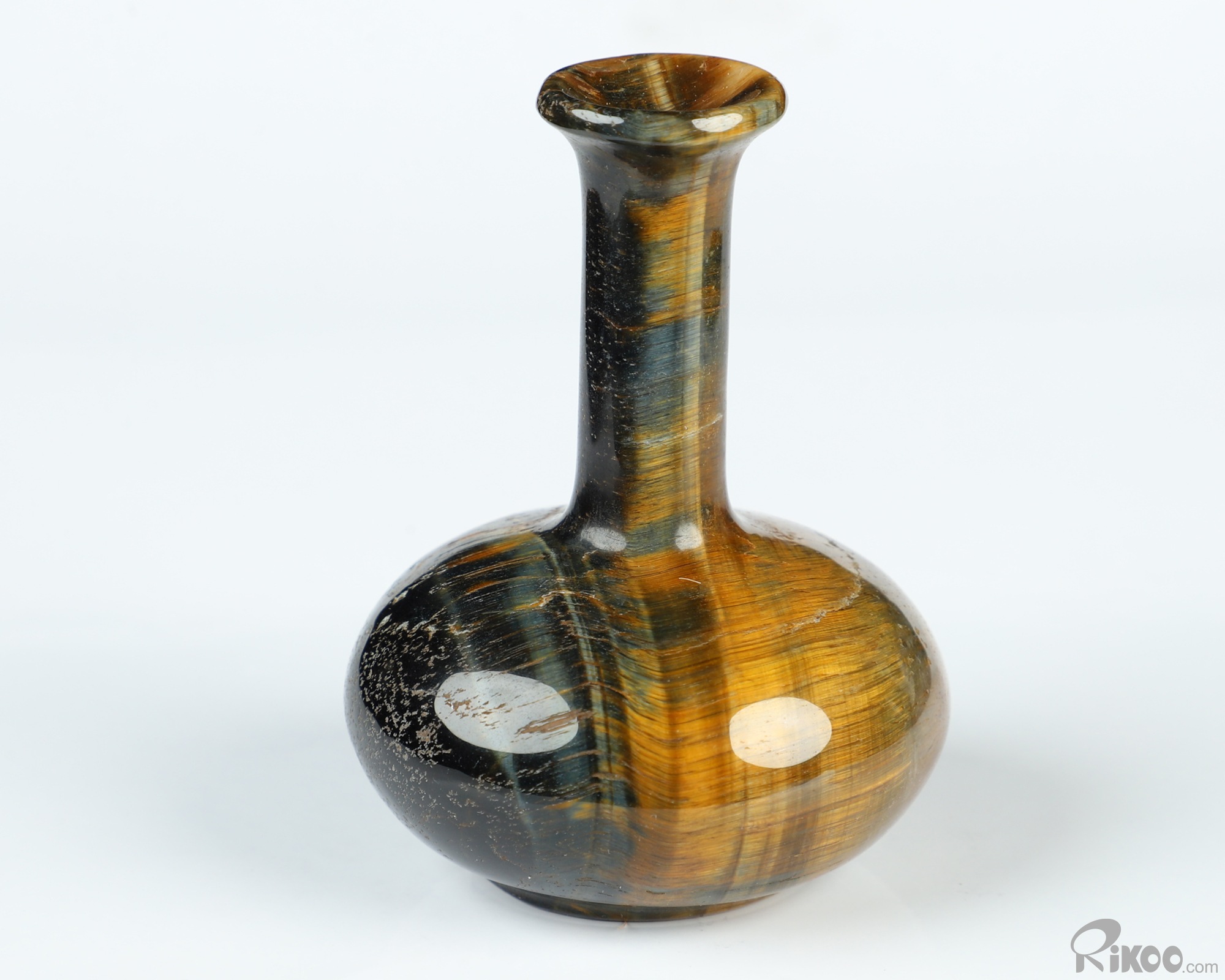 Gemstone 2.7" Blue & Gold Tiger's Eye Hand Carved Crystal Vase Sculpture, Crystal Healing