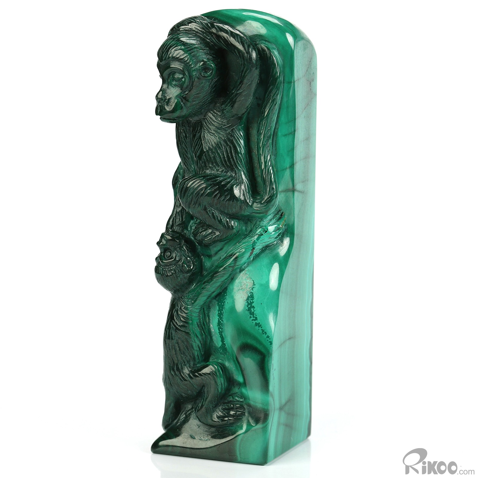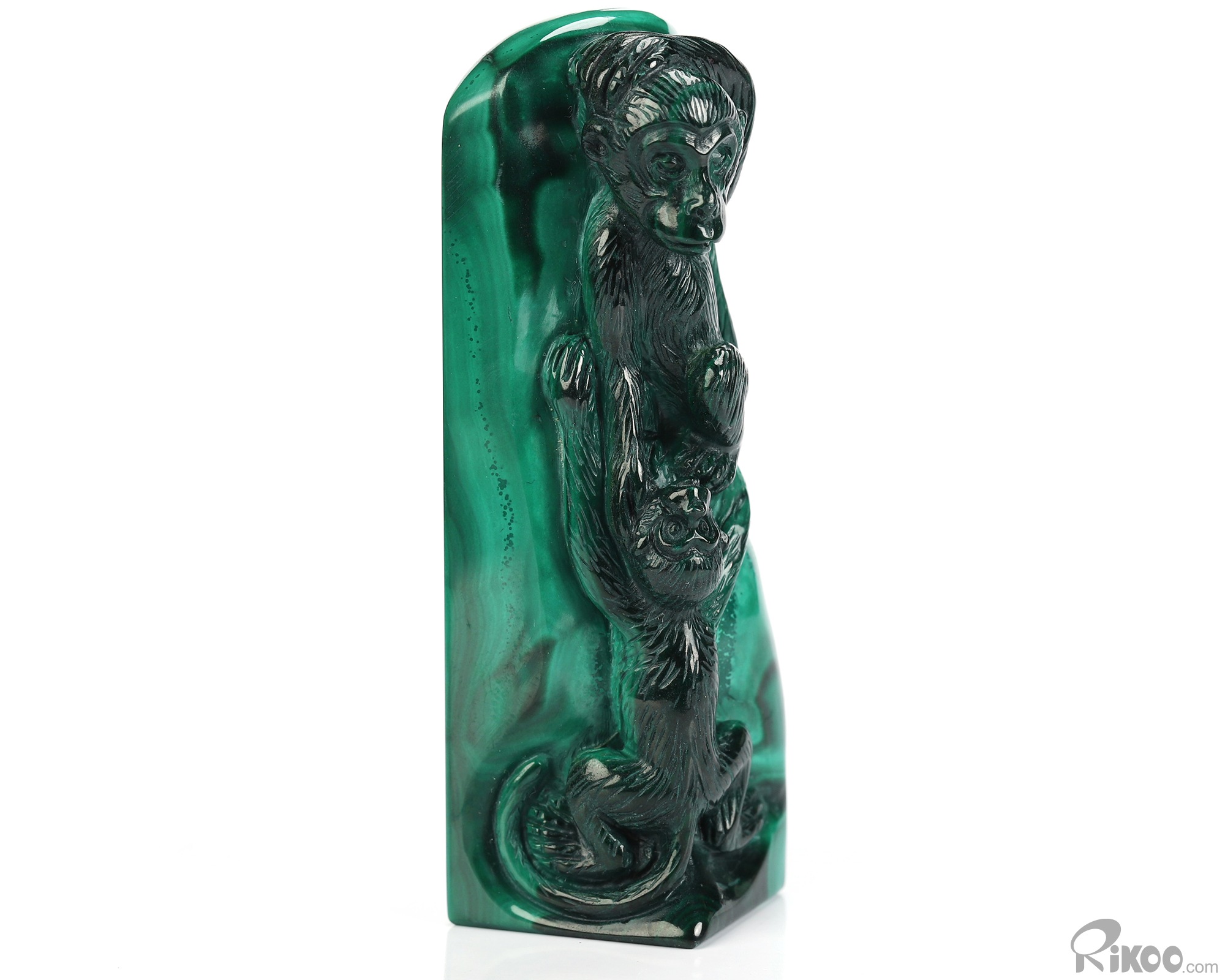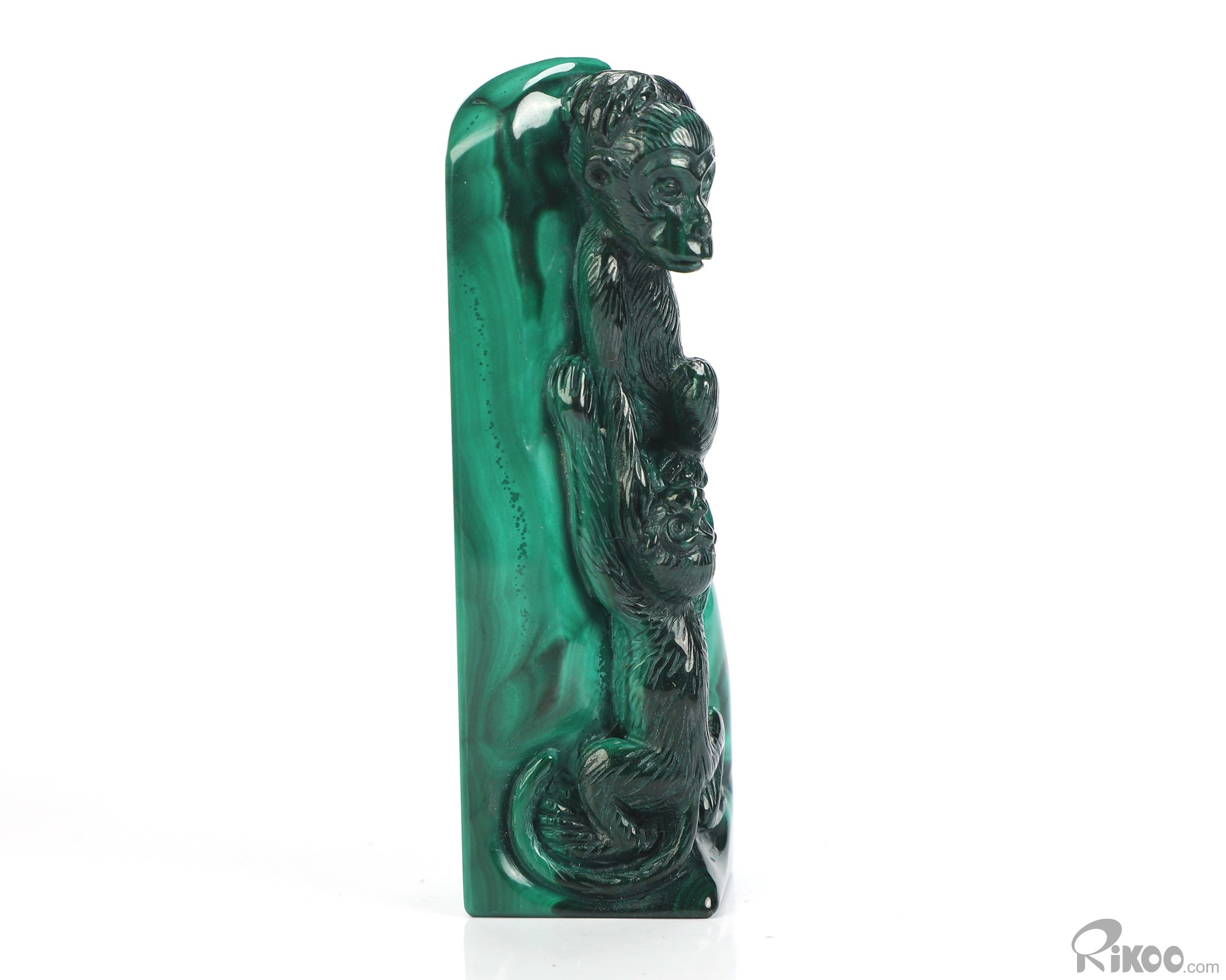 Gemstone 2.8" Malachite Hand Carved Monkey Seal Crystal Sculpture, Crystal Healing