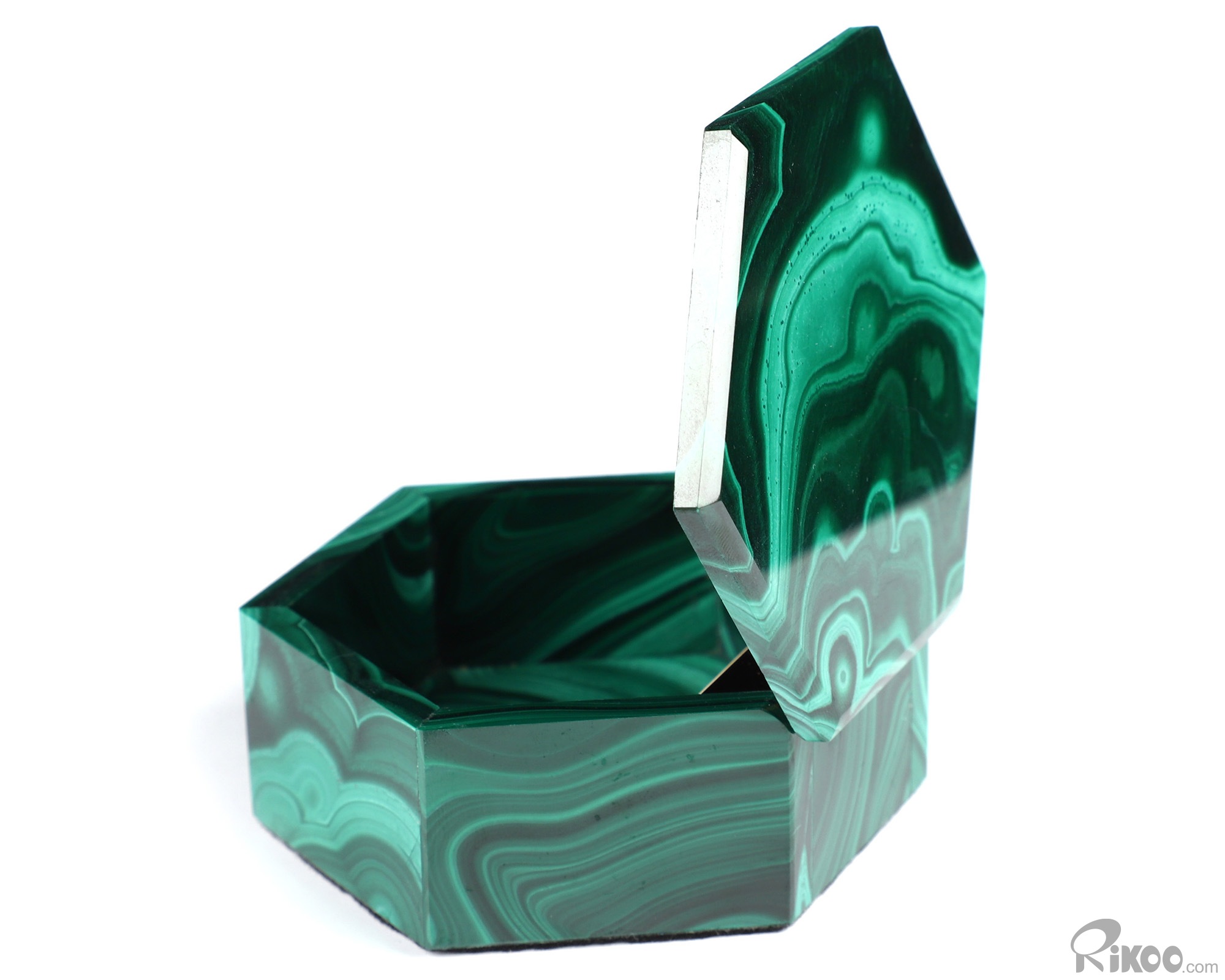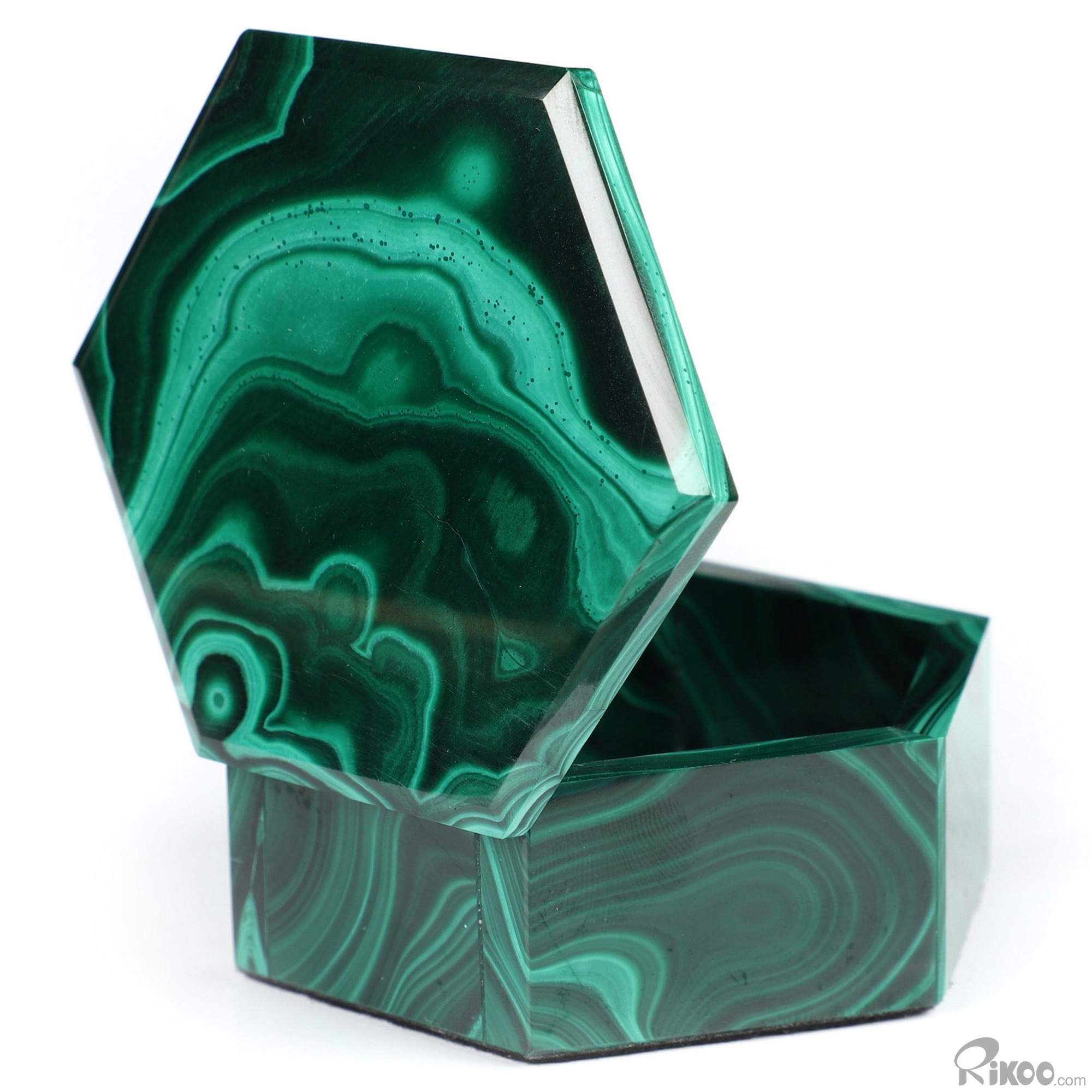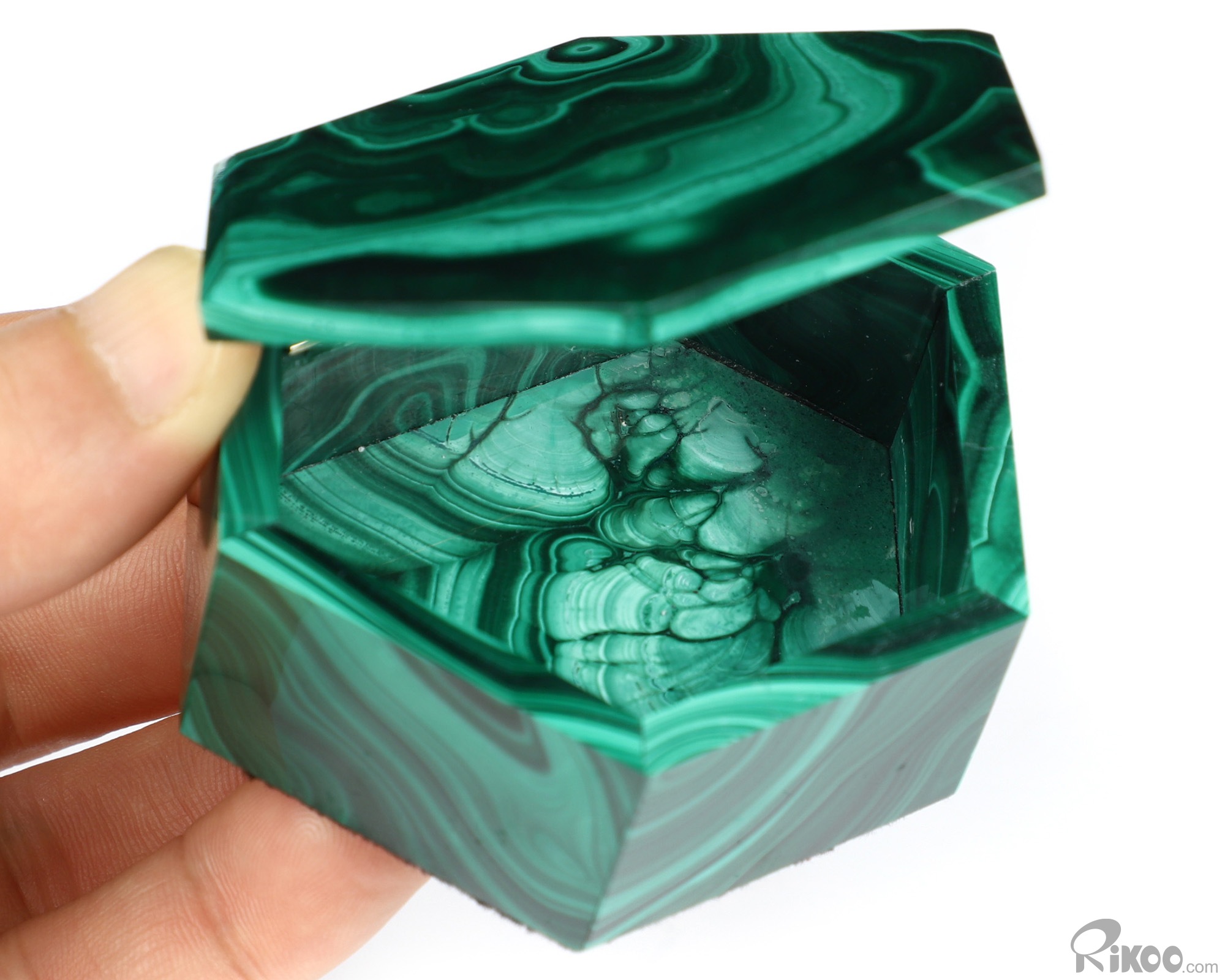 Gemstone 2.9" Malachite Hand Carved Crystal Jewelry Box, Crystal Healing