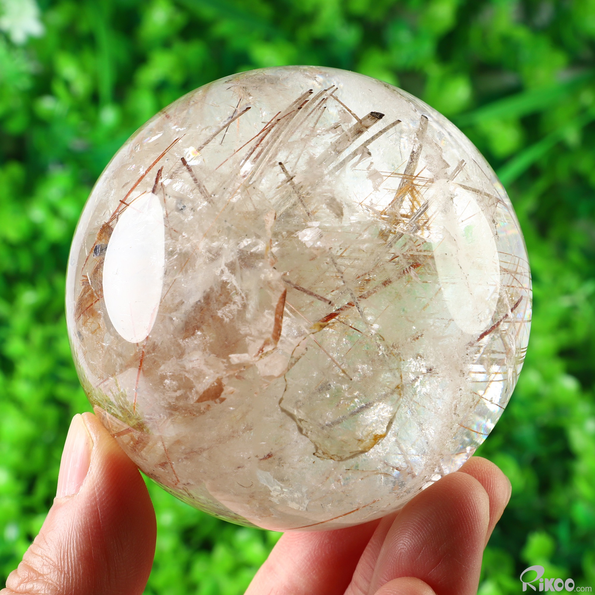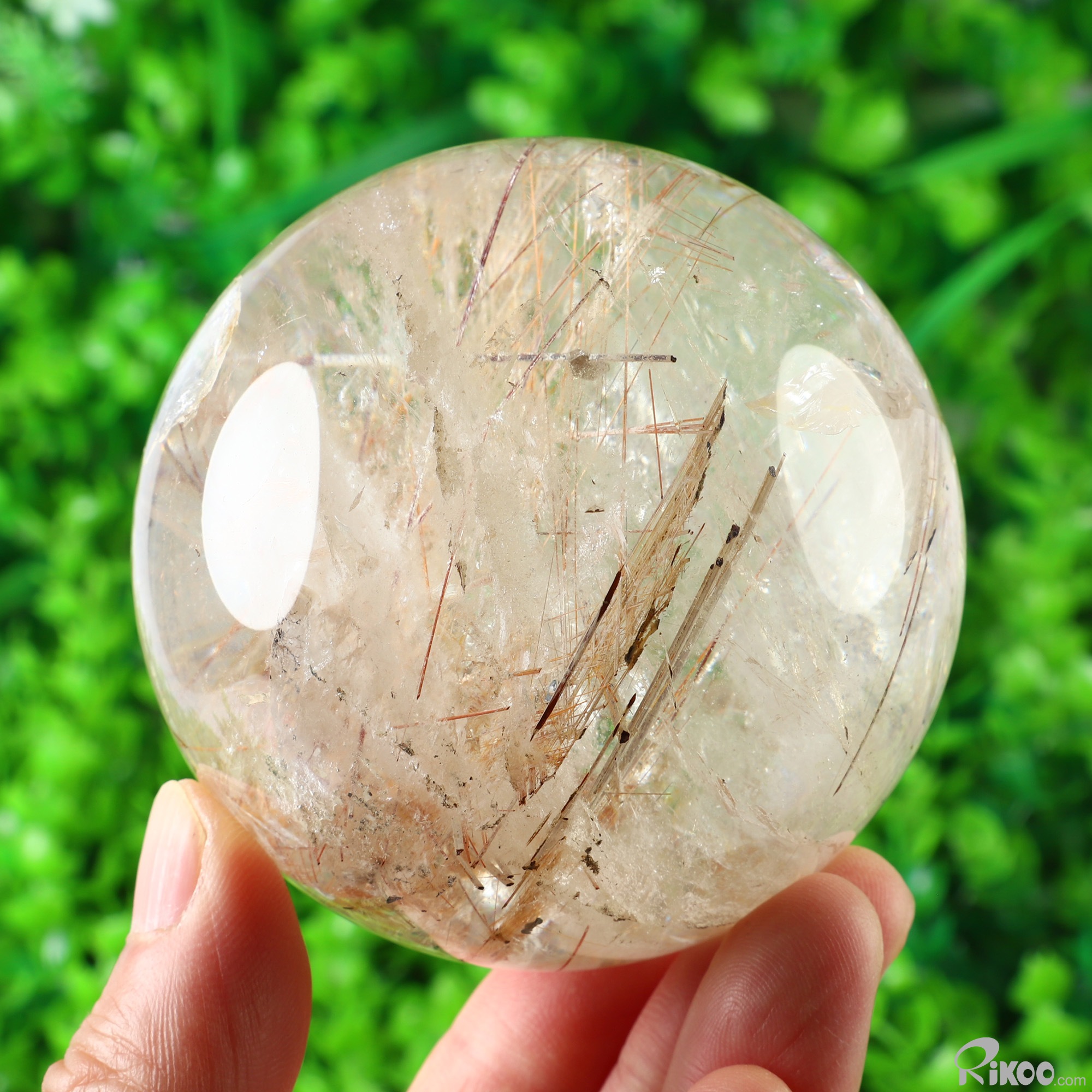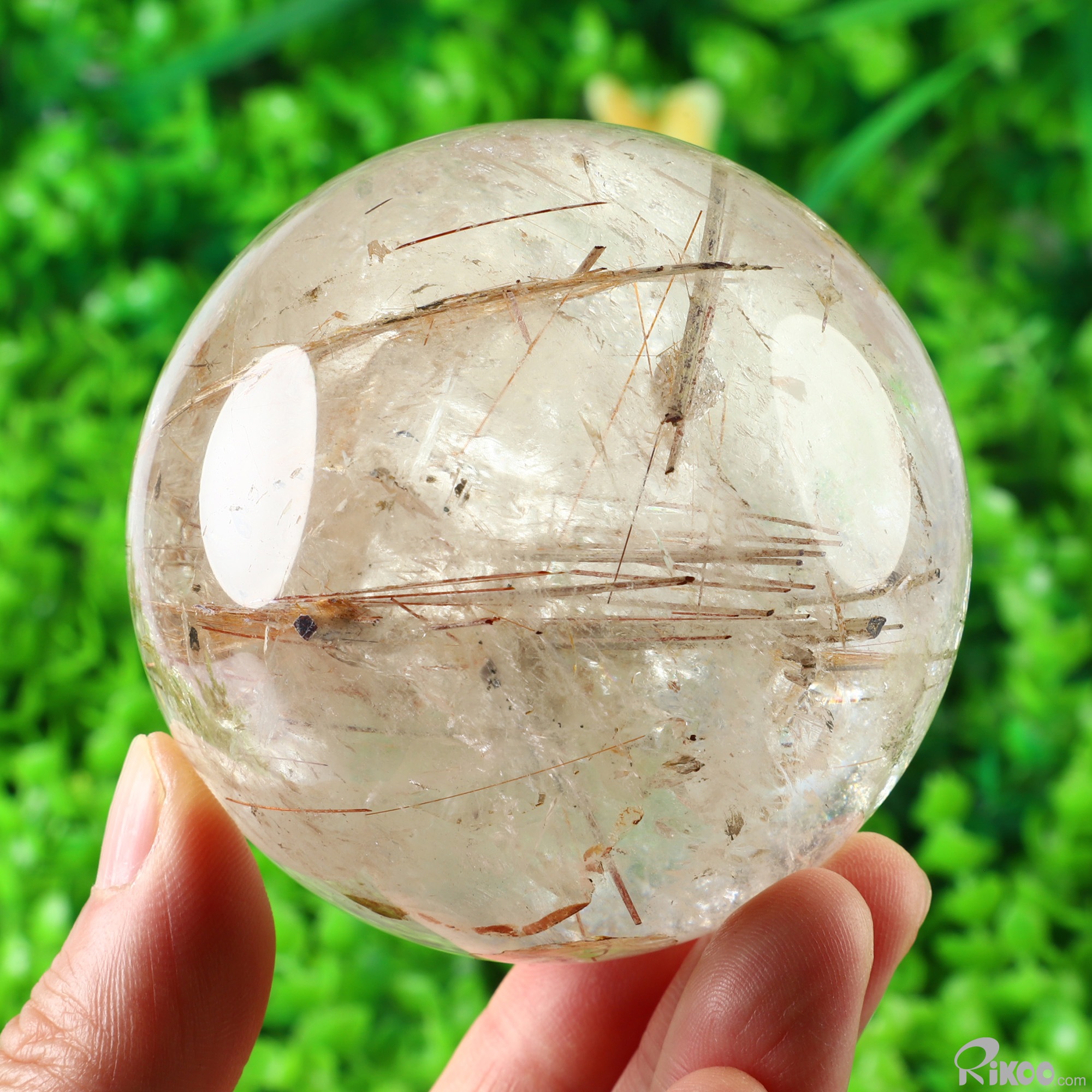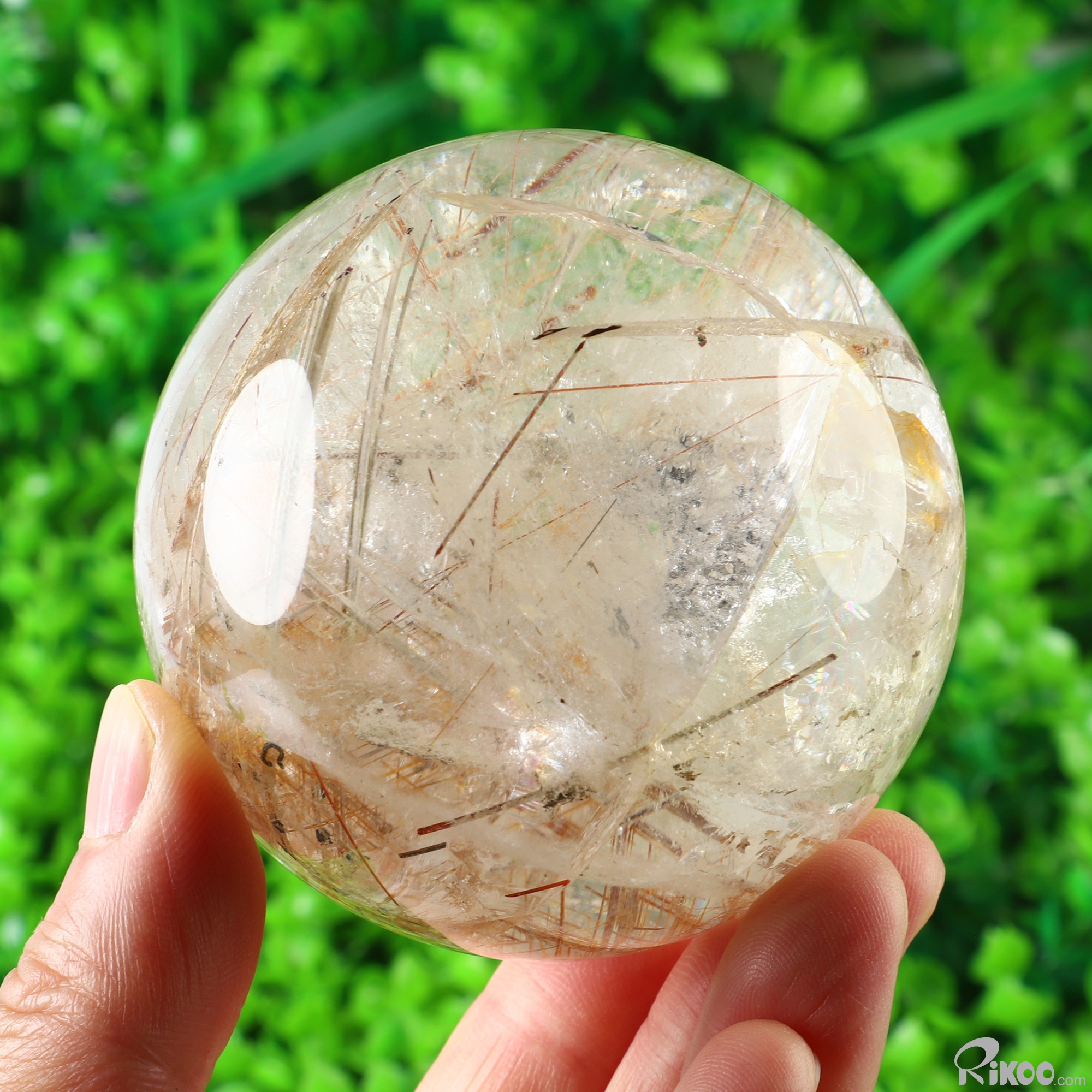 Gemstone 2.9" Rutilated Quartz Rock Crystal Hand Carved Crystal Ball/Sphere, Crystal Healing