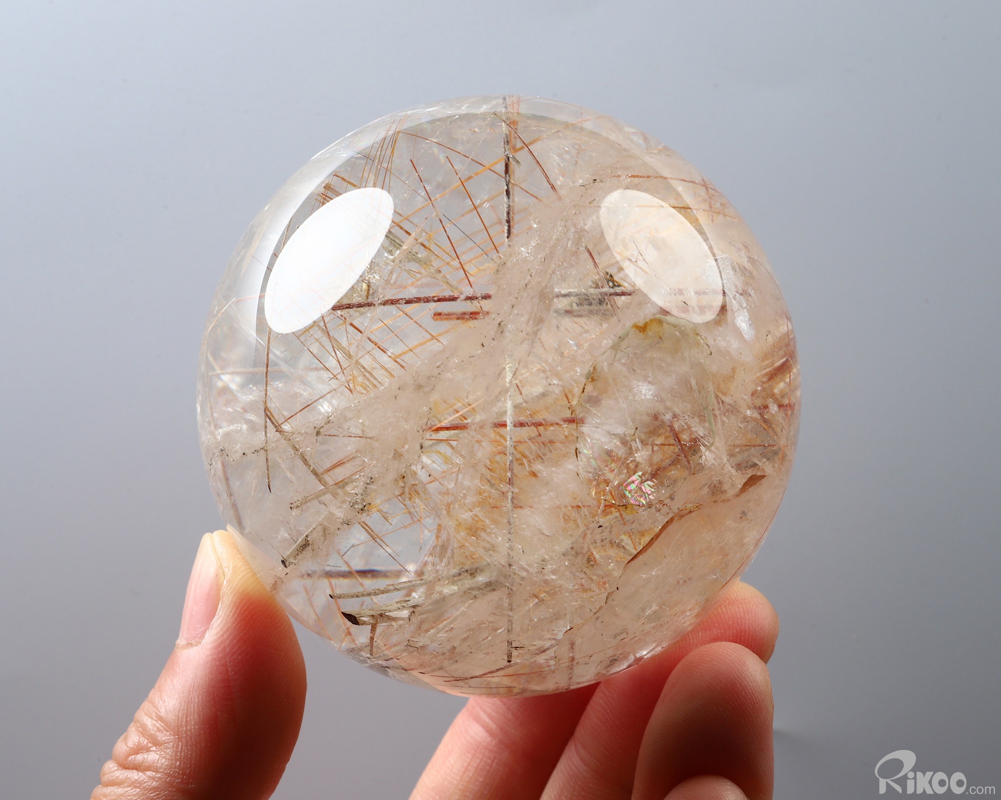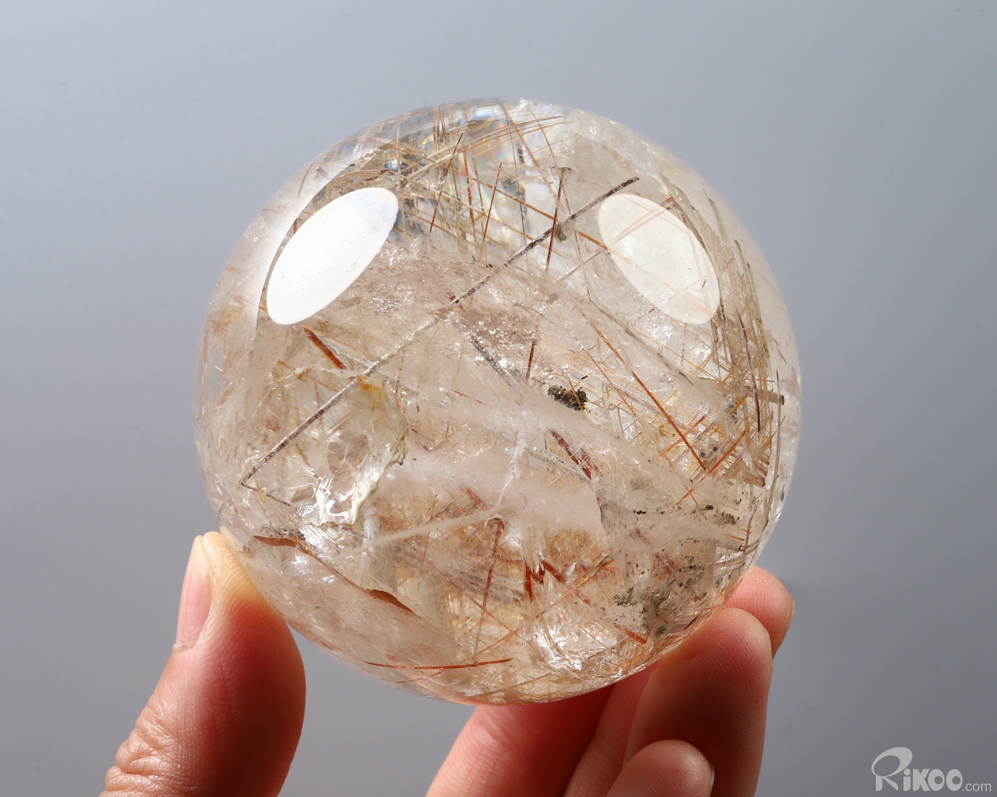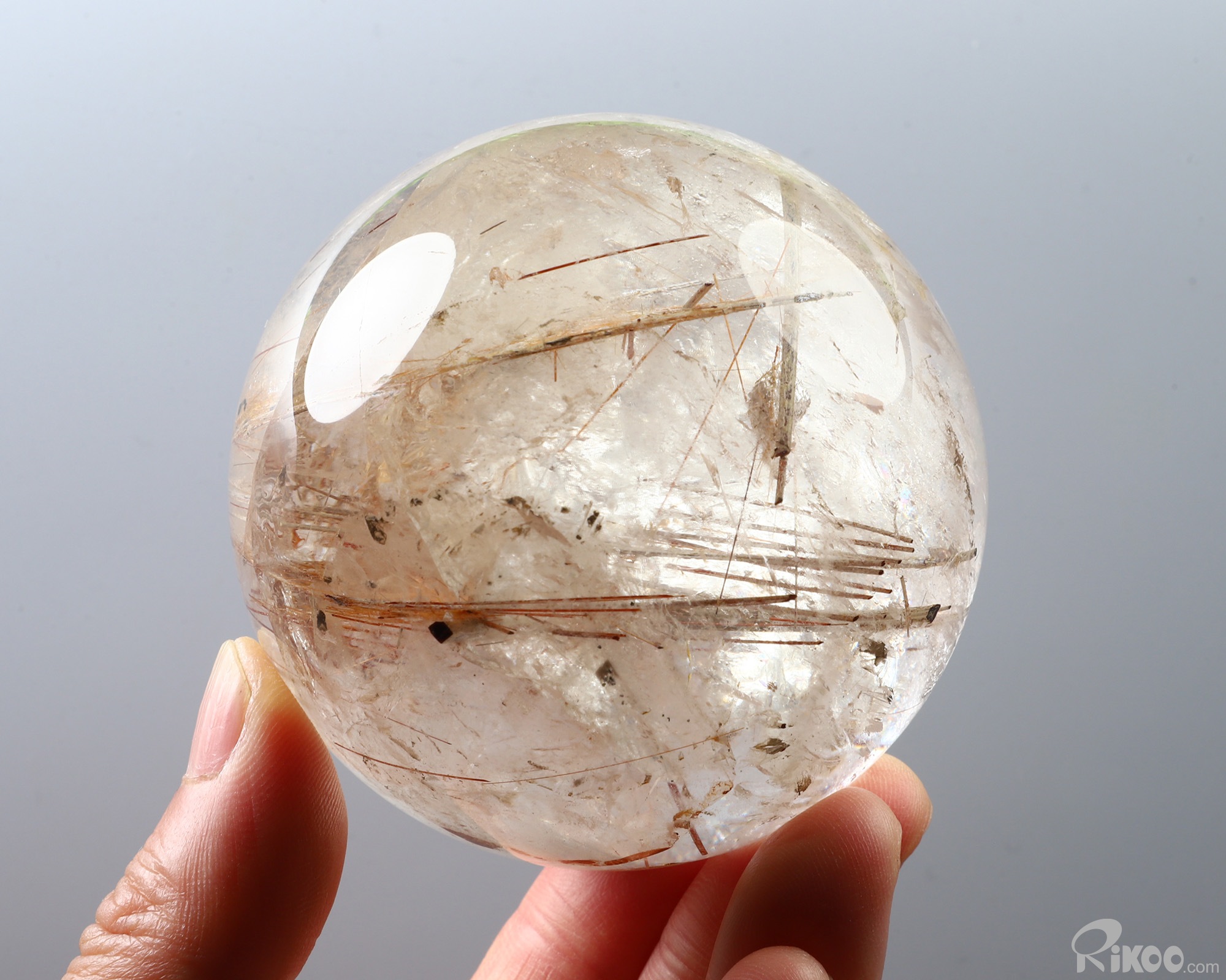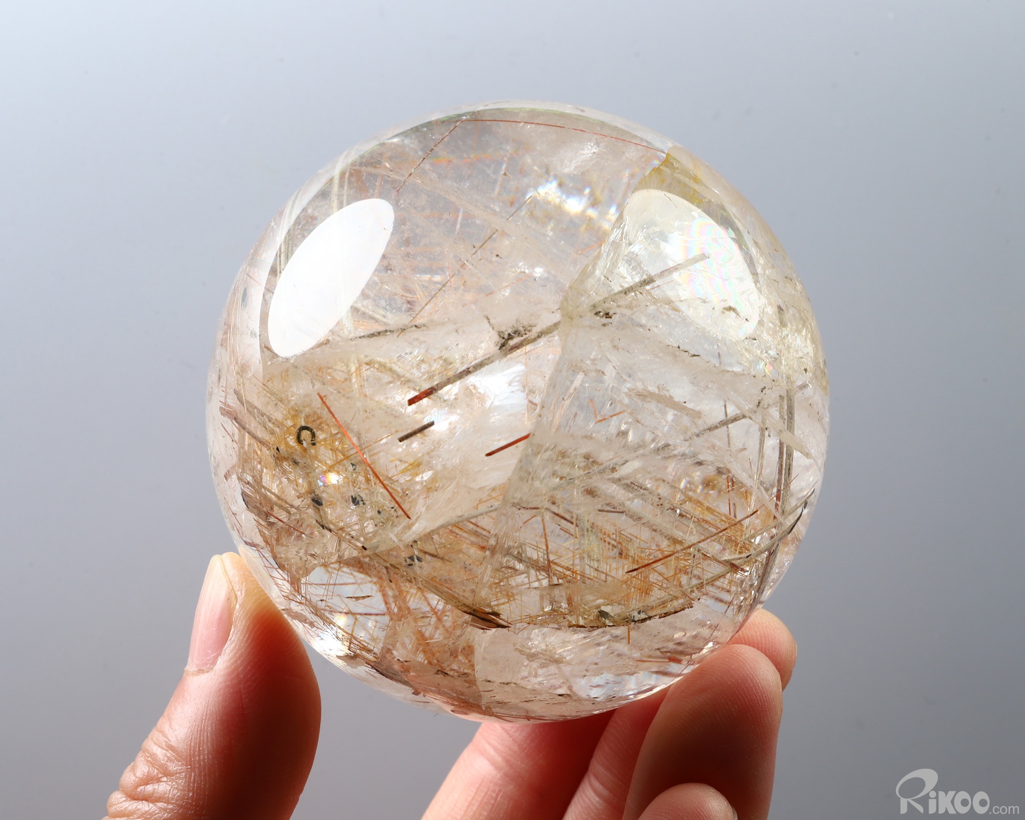 Gemstone 2.9" Rutilated Quartz Rock Crystal Hand Carved Crystal Ball/Sphere, Crystal Healing