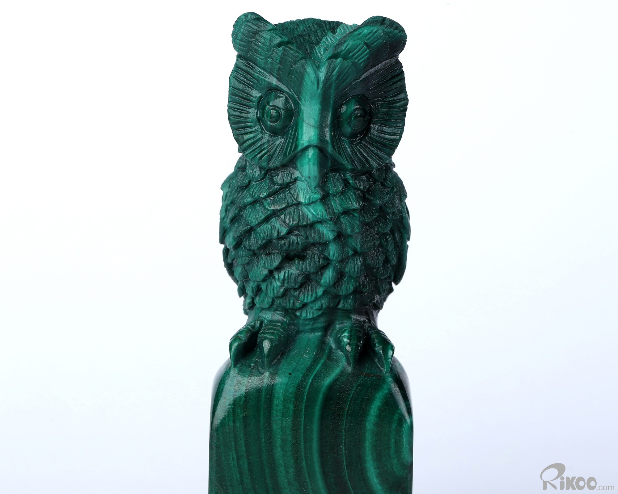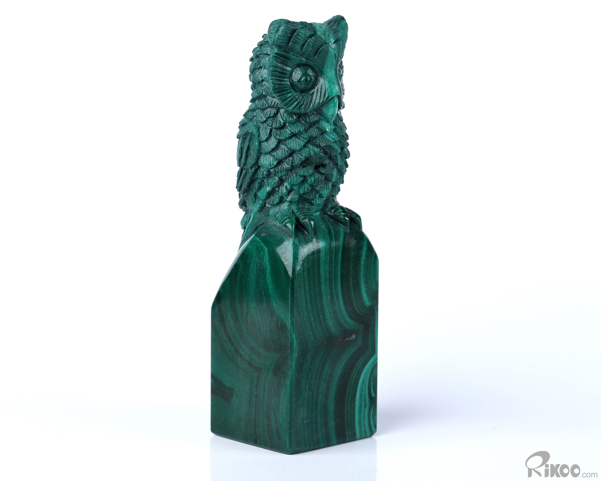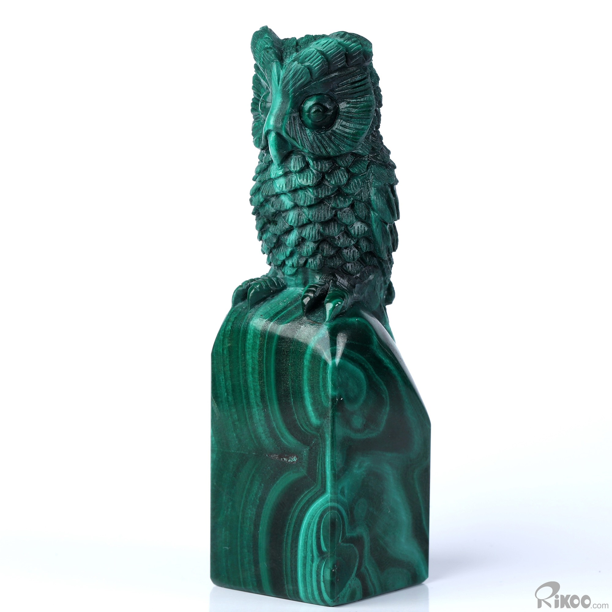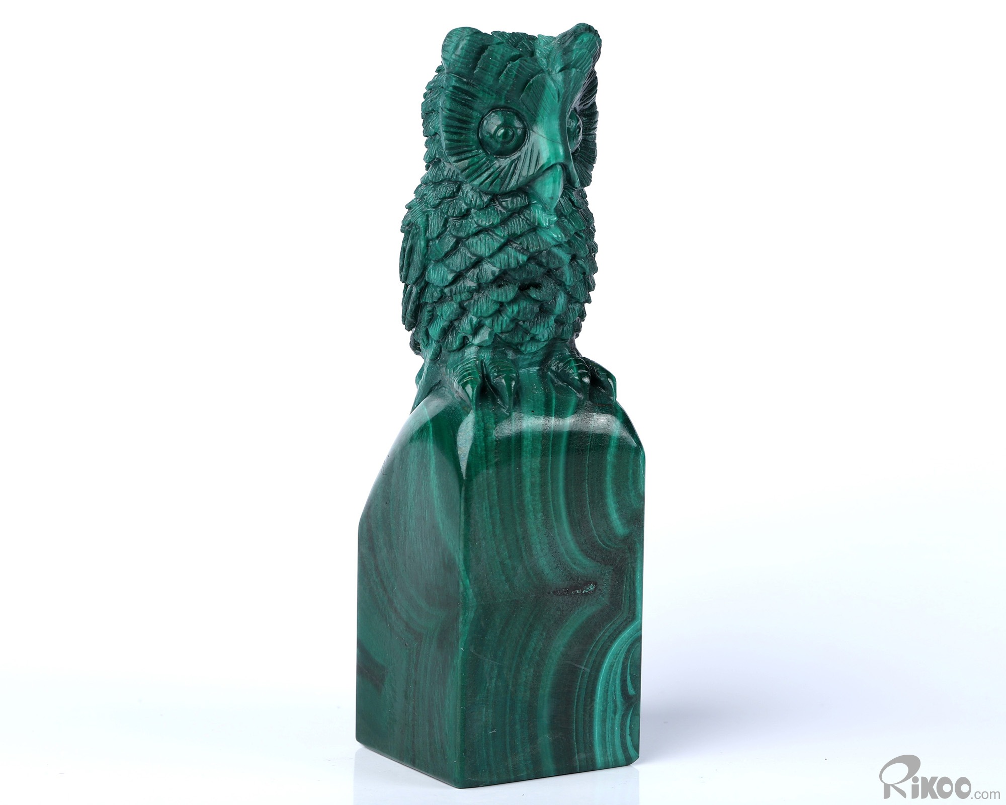 Gemstone 3.0" Malachite Hand Carved Crystal Owl Sculpture, Crystal Healing