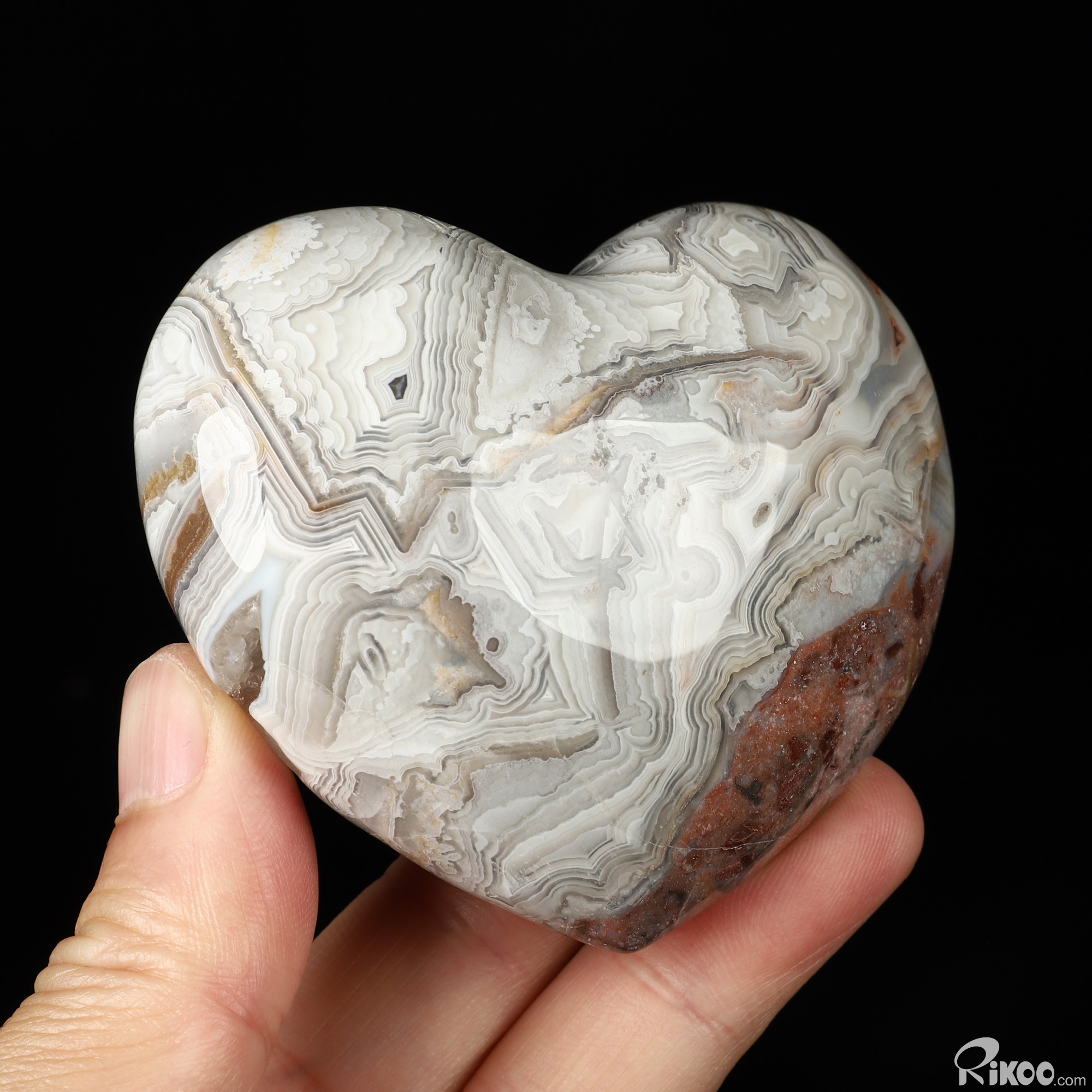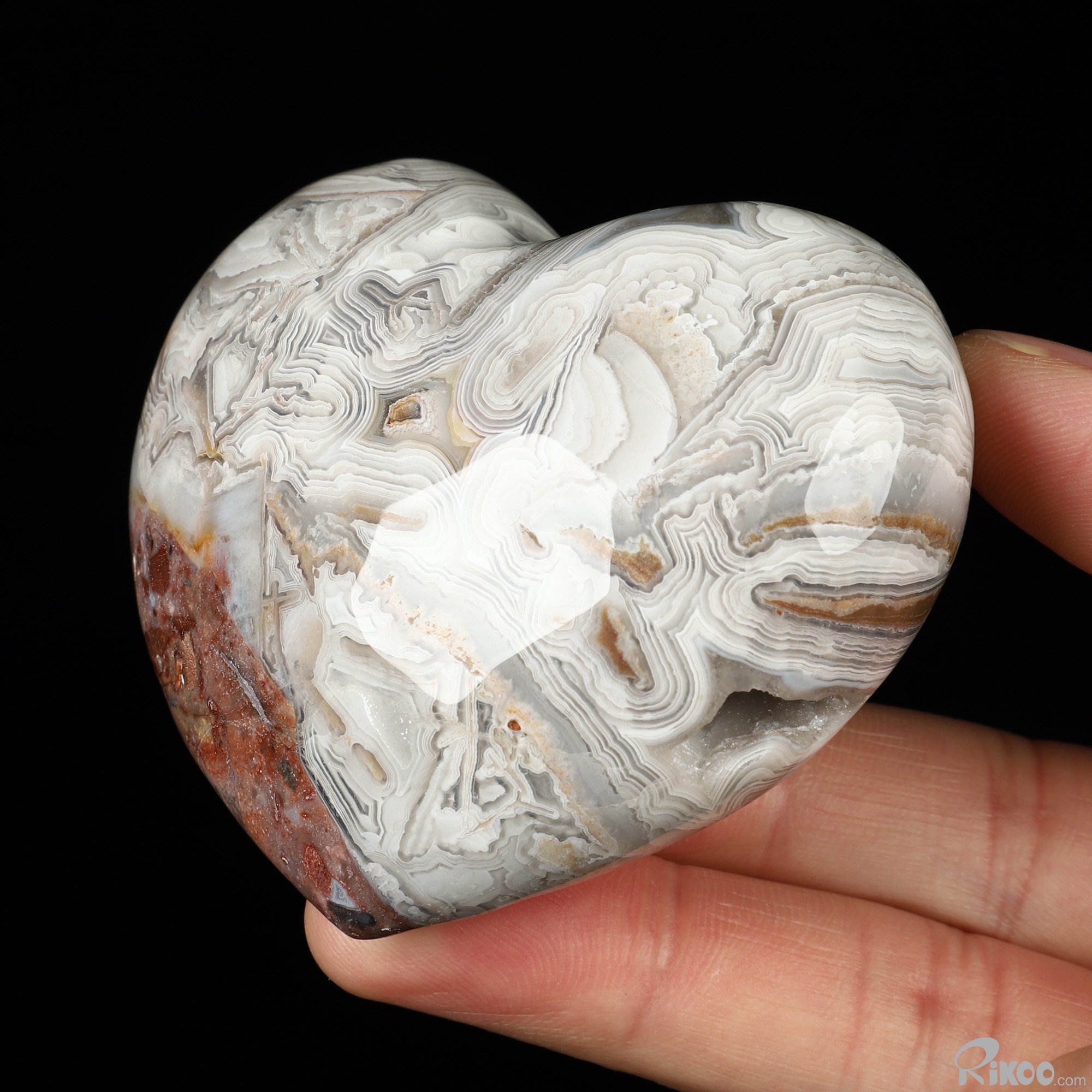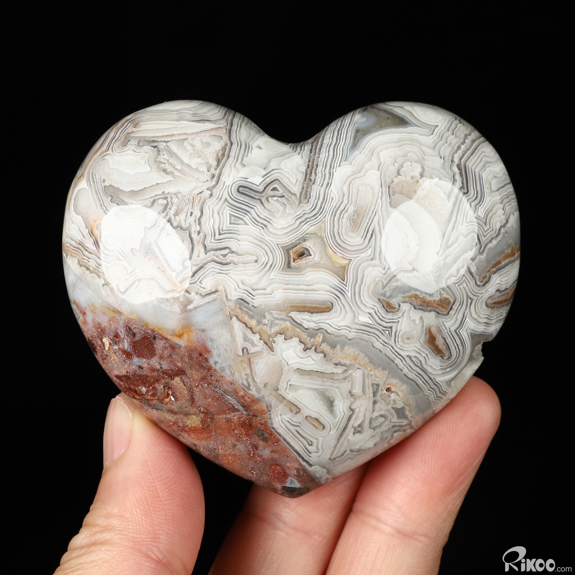 Gemstone 3.0" Red Crazy Lace Agate Hand Carved Crystal Heart Sculpture, Crystal Healing