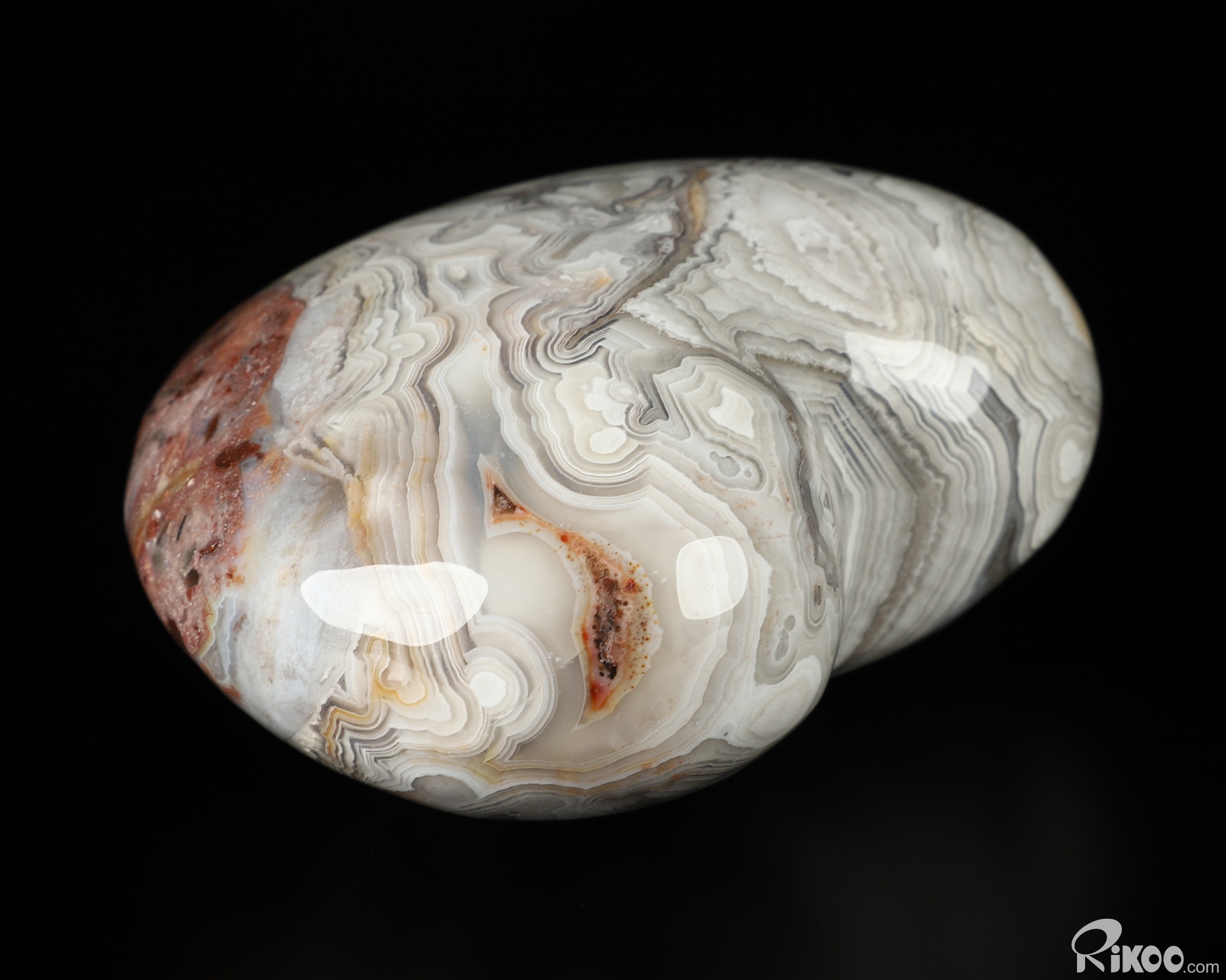 You are looking at a Red Crazy Lace Agate sculpture. The sculpture is 3 inches long.