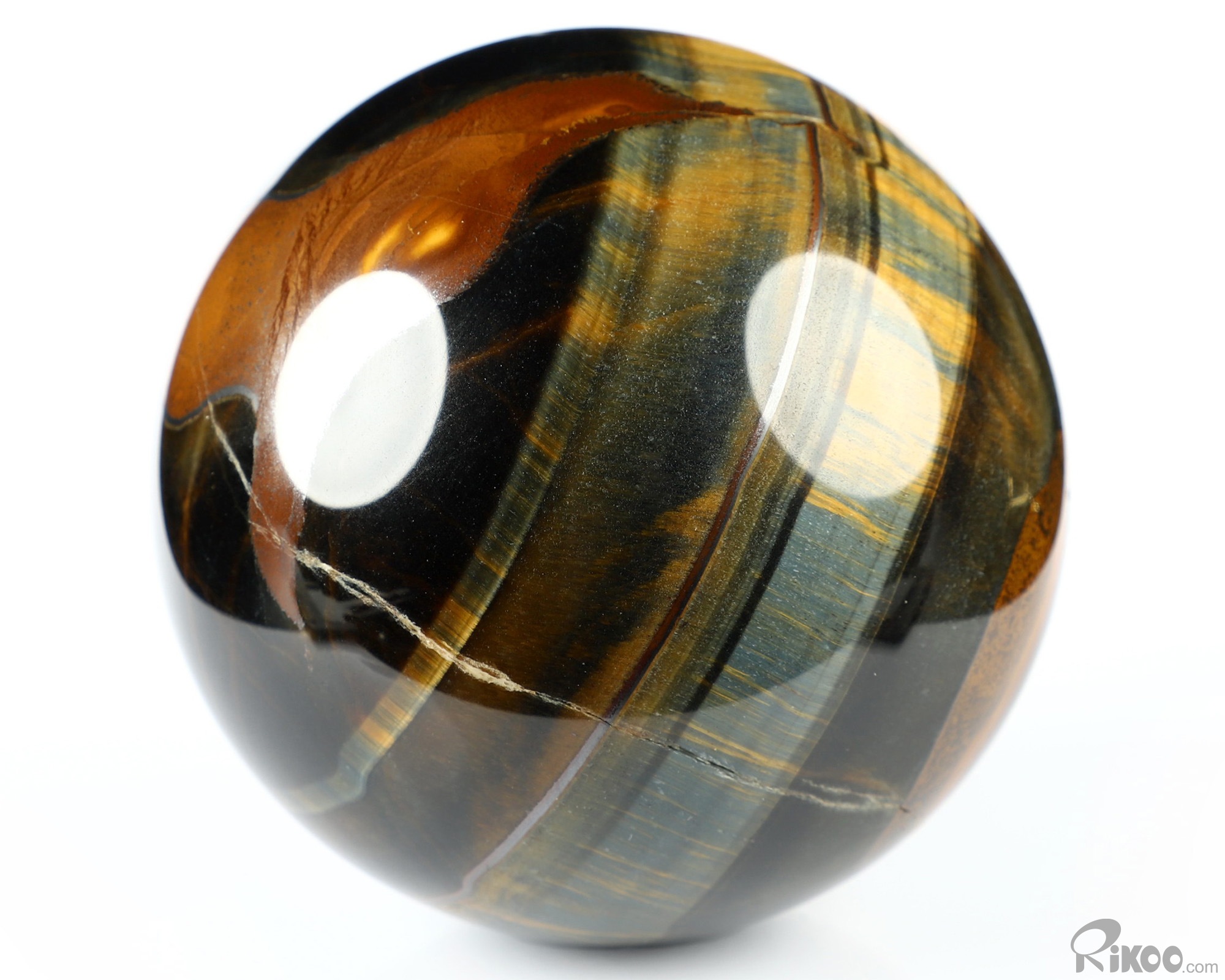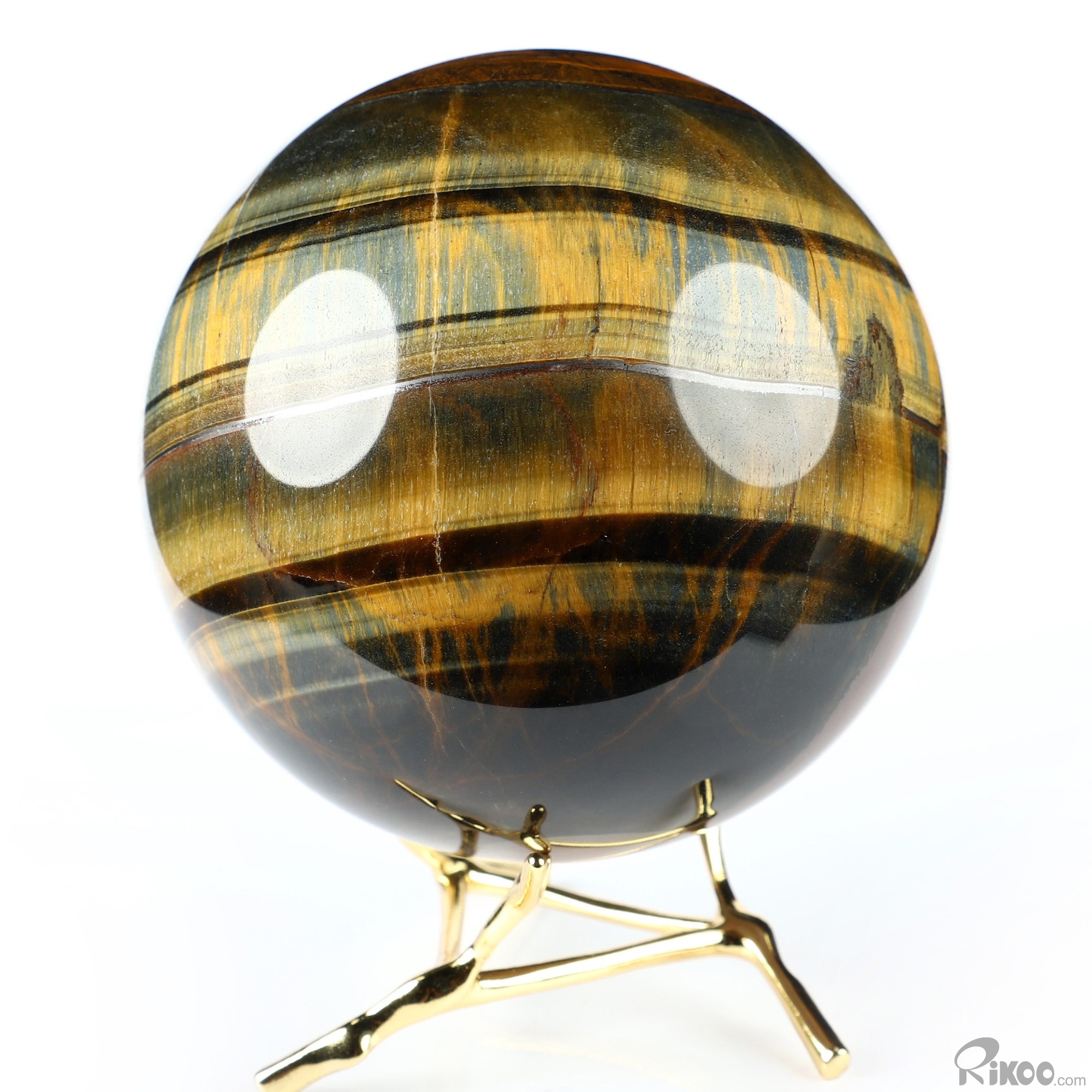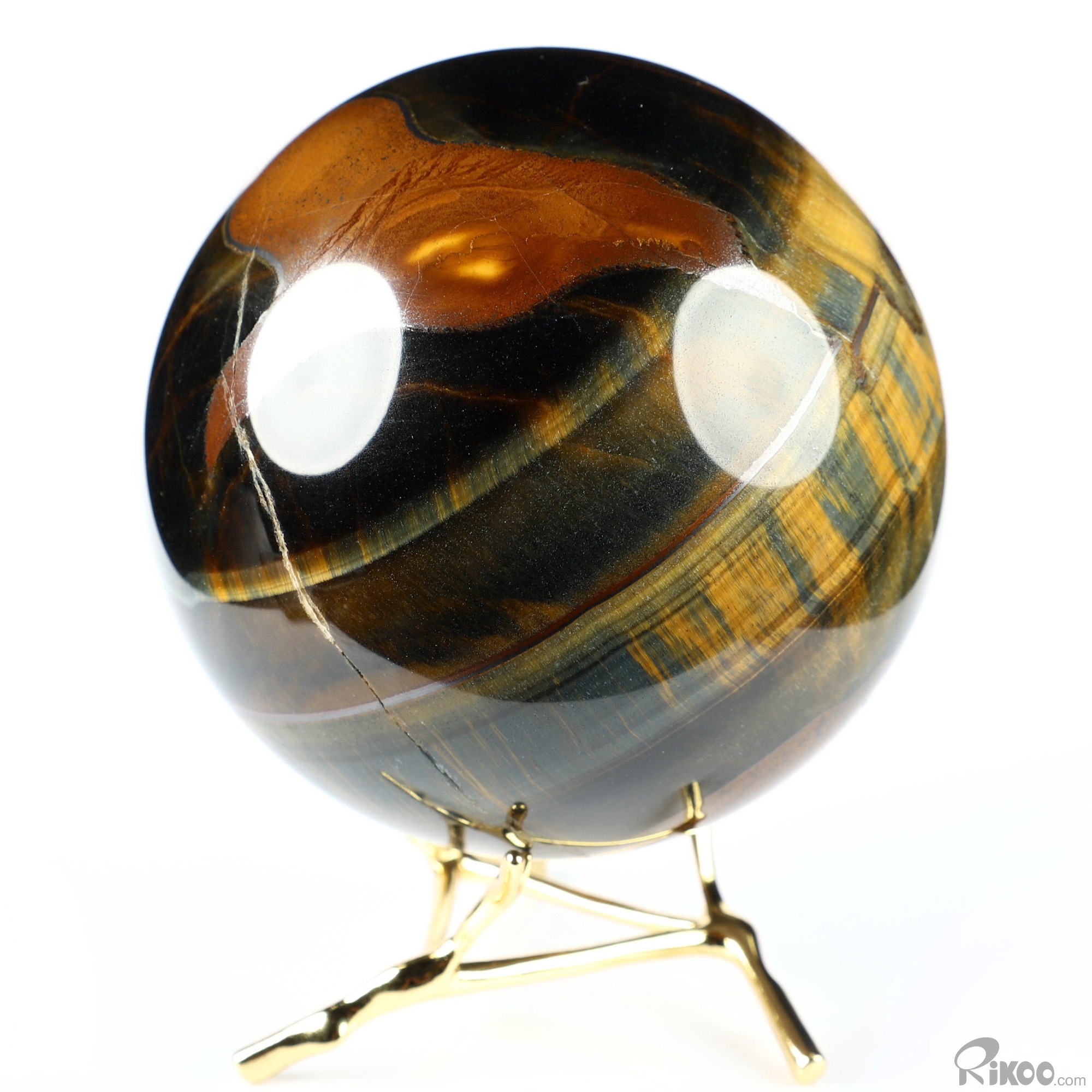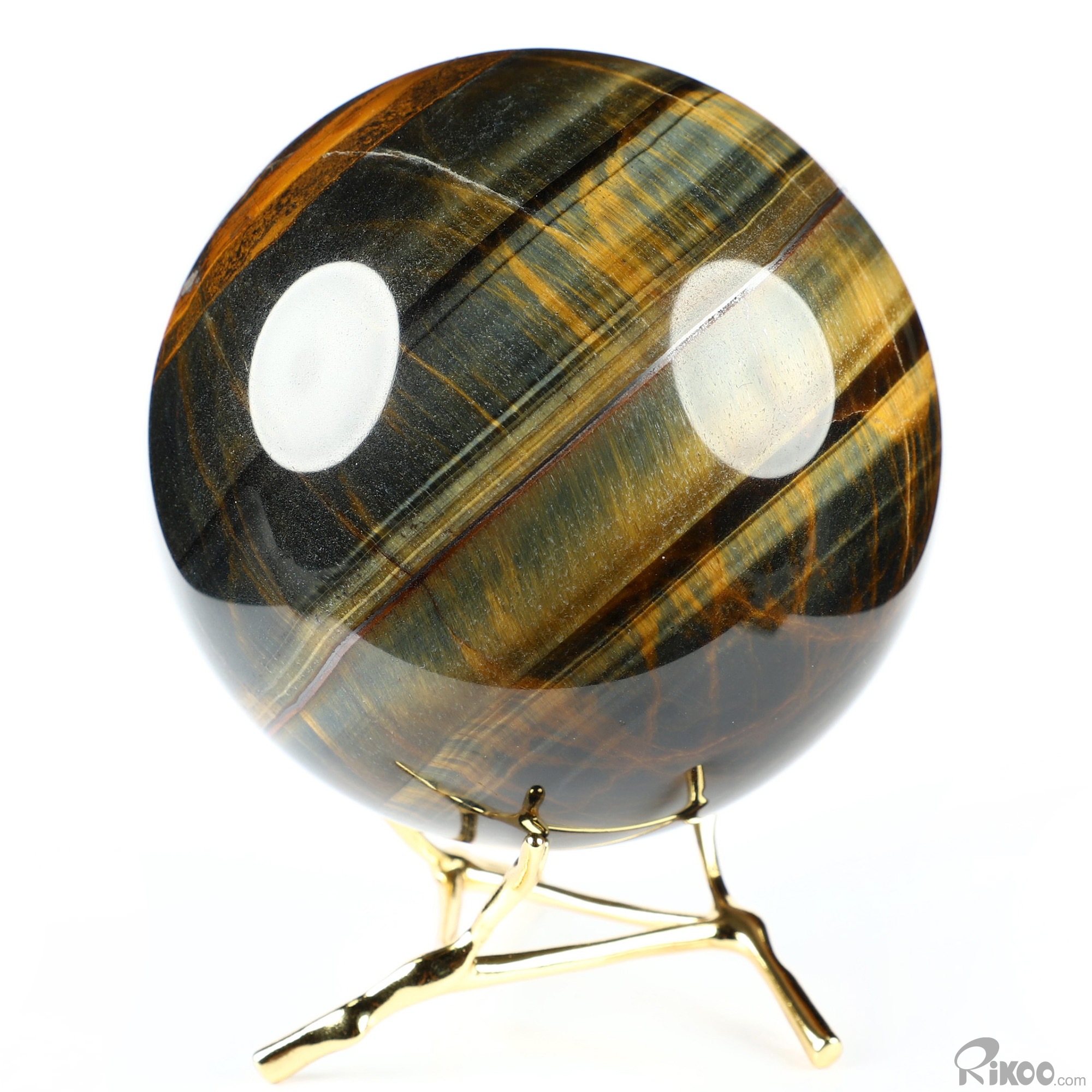 Gemstone 3.1" Blue & Gold Tiger's Eye Hand Carved Crystal Ball/Sphere, Crystal Healing