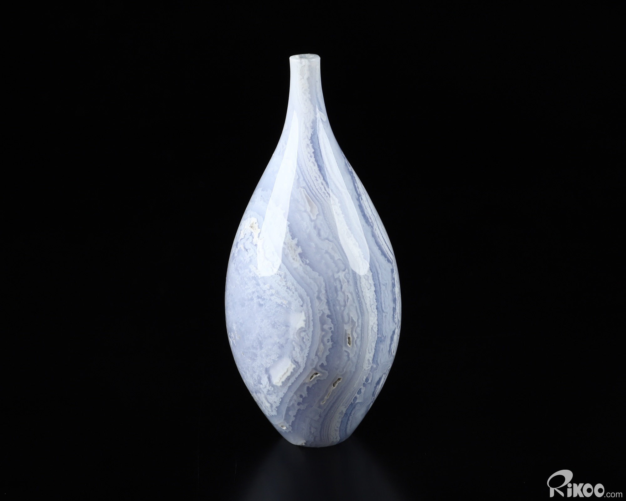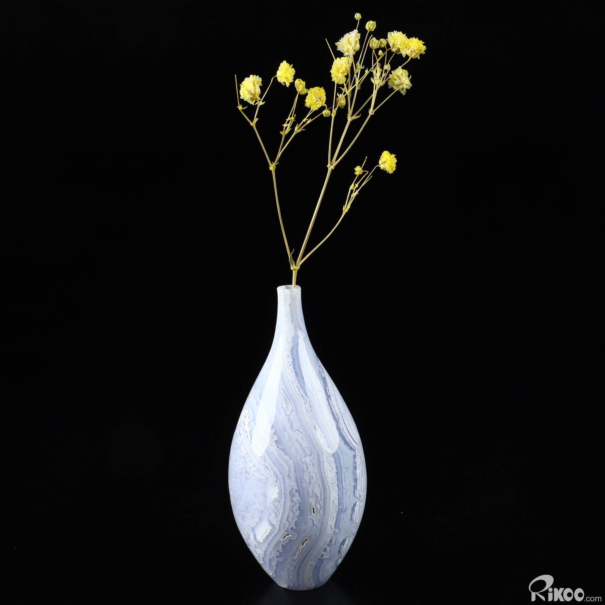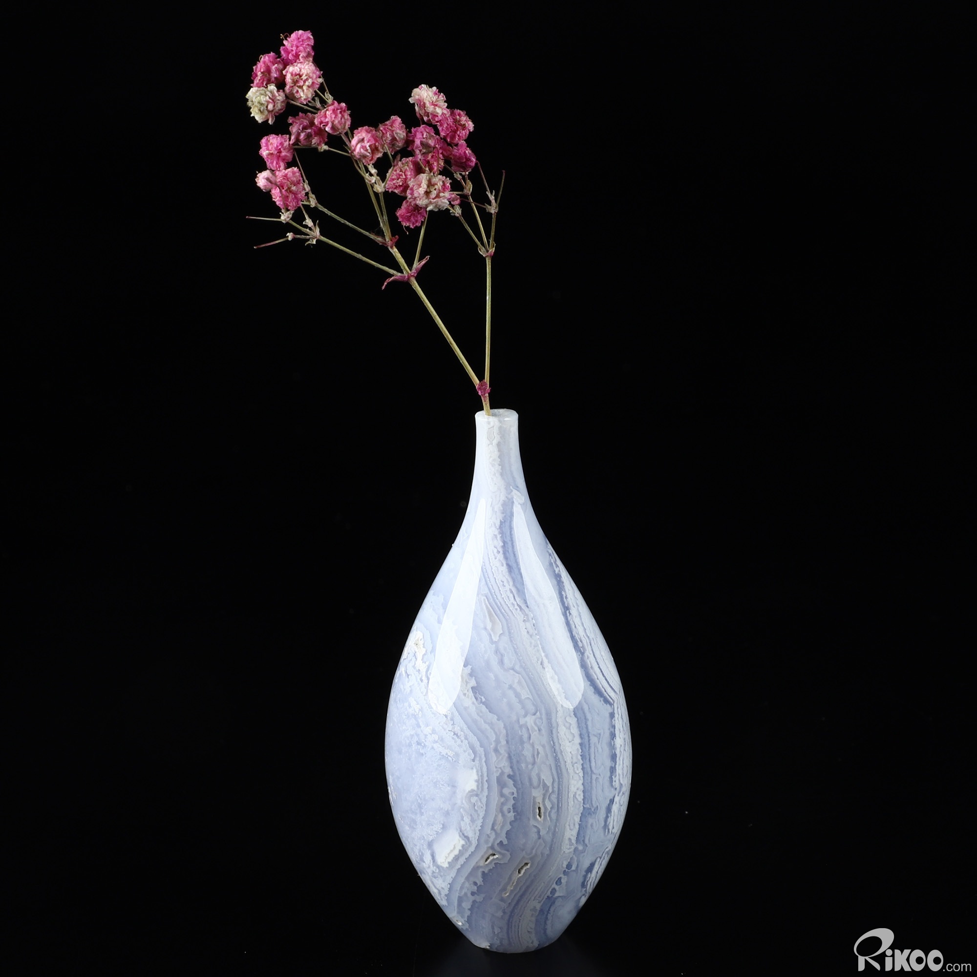 This vase with limited functionality is mainly for display.Blue Lace is one of the most prized agates and has been hard to find lately. The best Blue Lace Agate comes from Namibia. It helps one to reach hige spiritual place, Associated with hope, unity, cleansing, harmony, protection,optimism, positive thinking. smooth energy flow, joy, truth, purification and promptness. Makes us more easygoing.