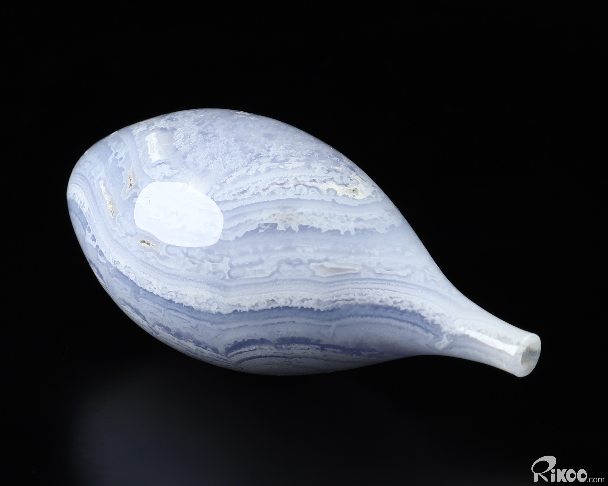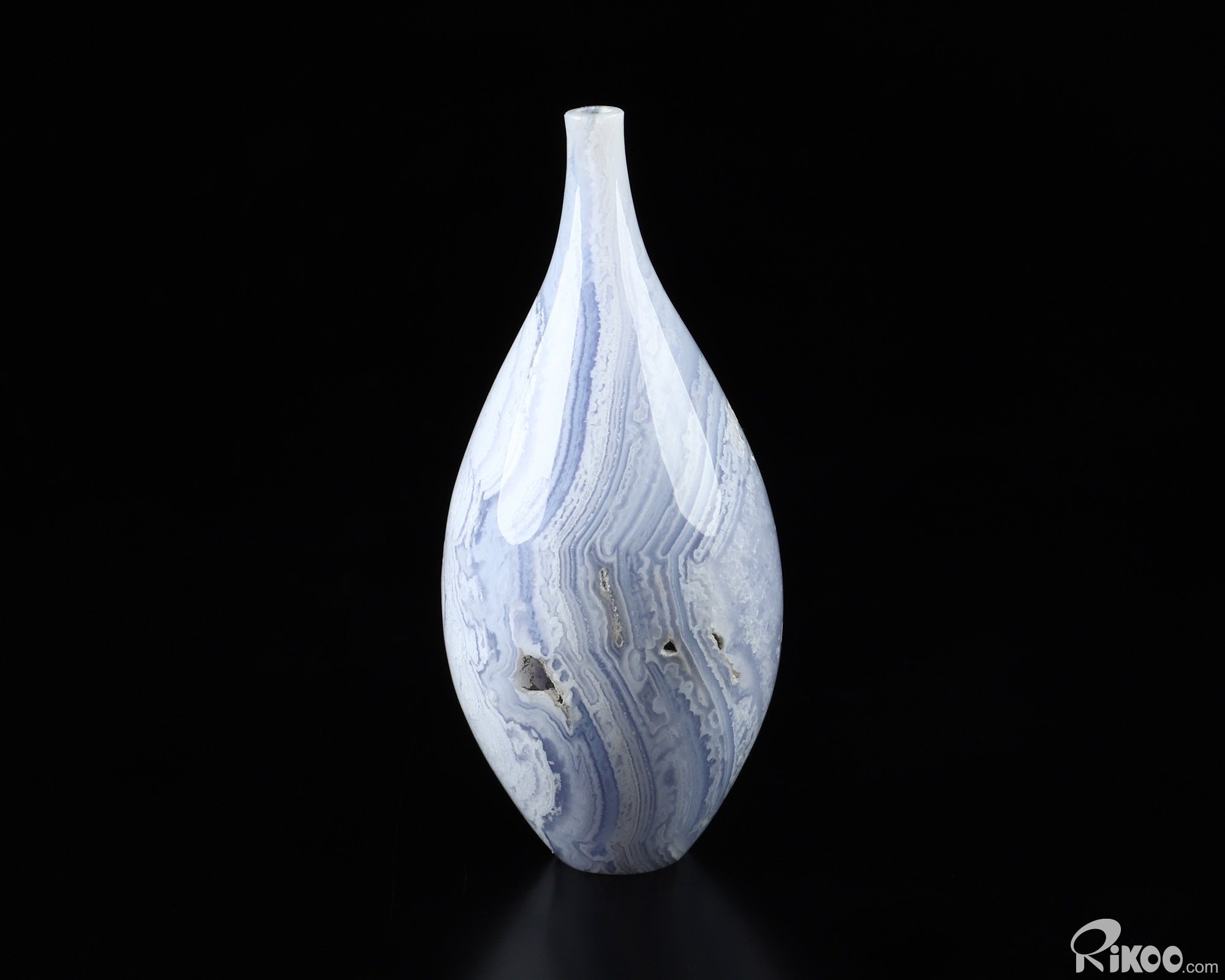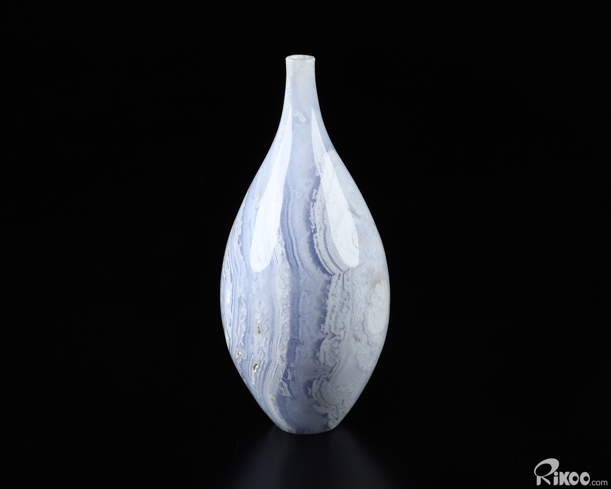 This vase with limited functionality is mainly for display.Blue Lace is one of the most prized agates and has been hard to find lately. The best Blue Lace Agate comes from Namibia. It helps one to reach hige spiritual place, Associated with hope, unity, cleansing, harmony, protection,optimism, positive thinking. smooth energy flow, joy, truth, purification and promptness. Makes us more easygoing.