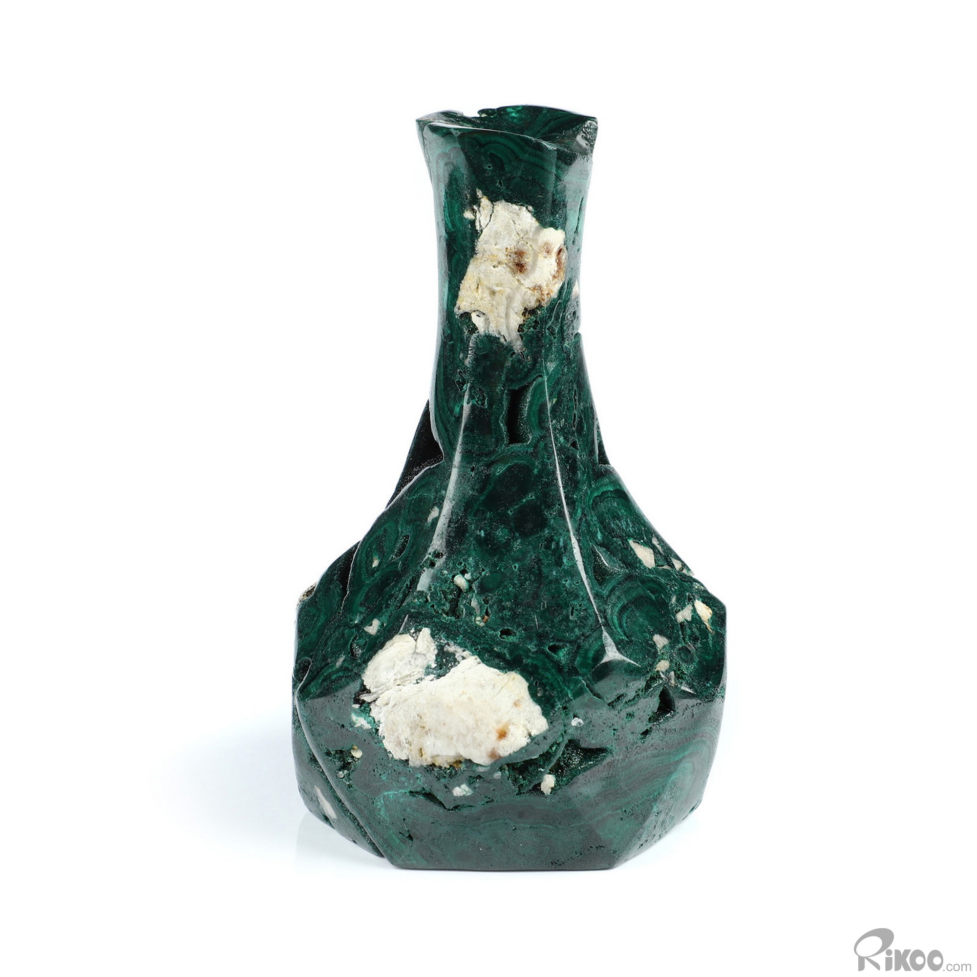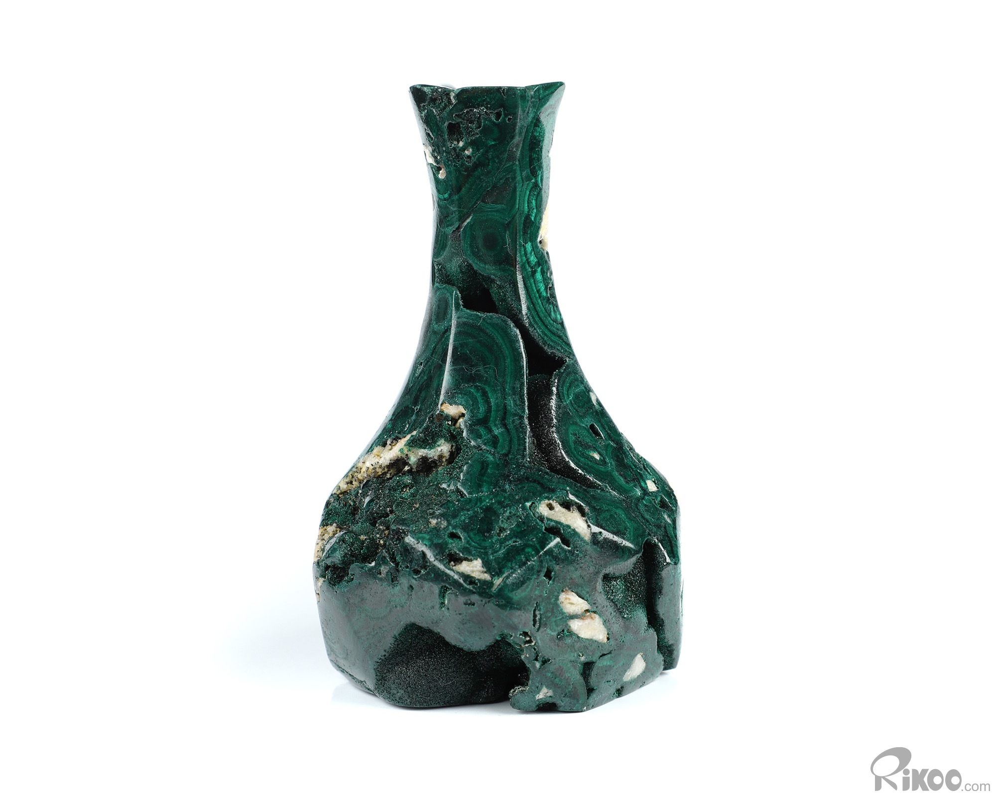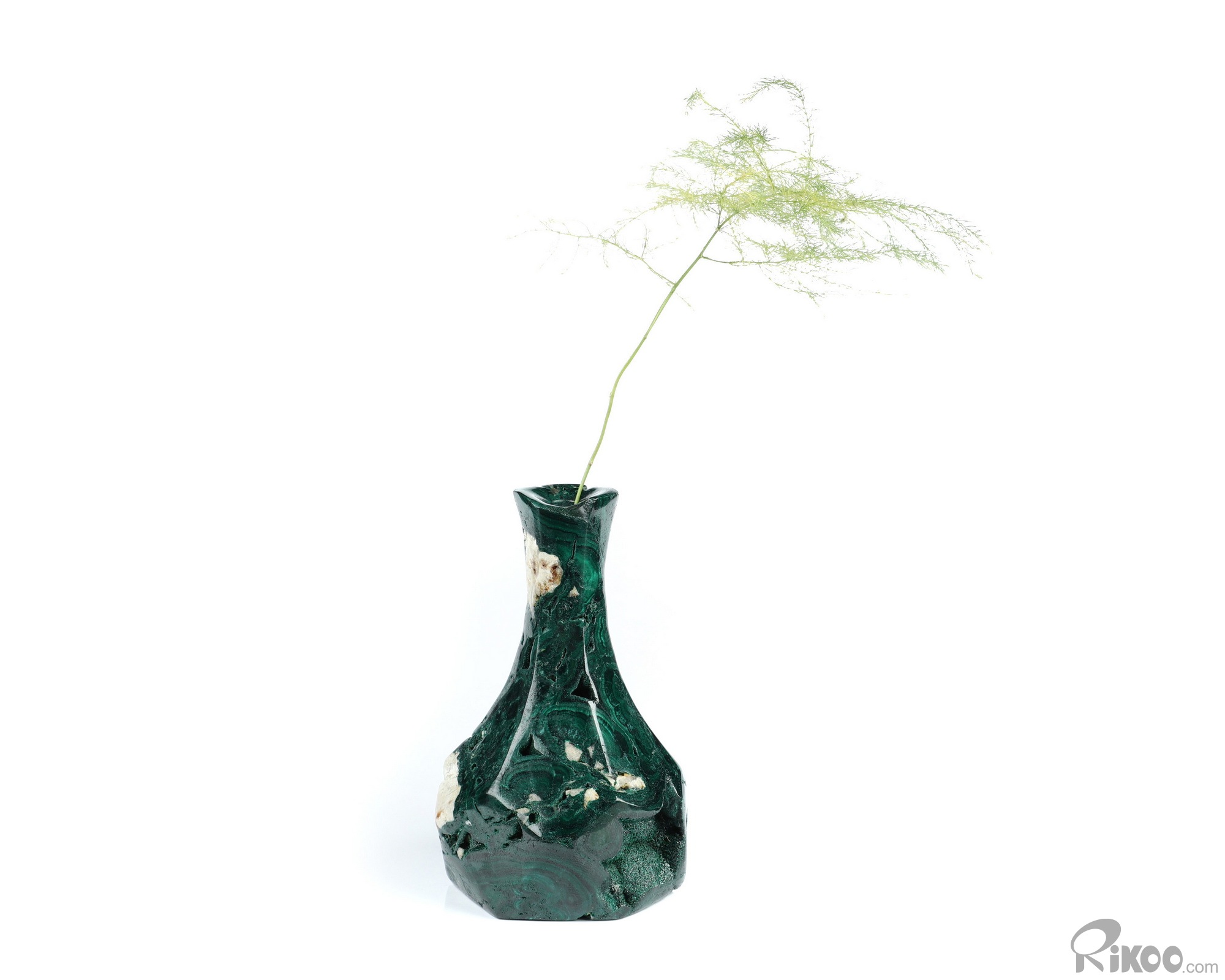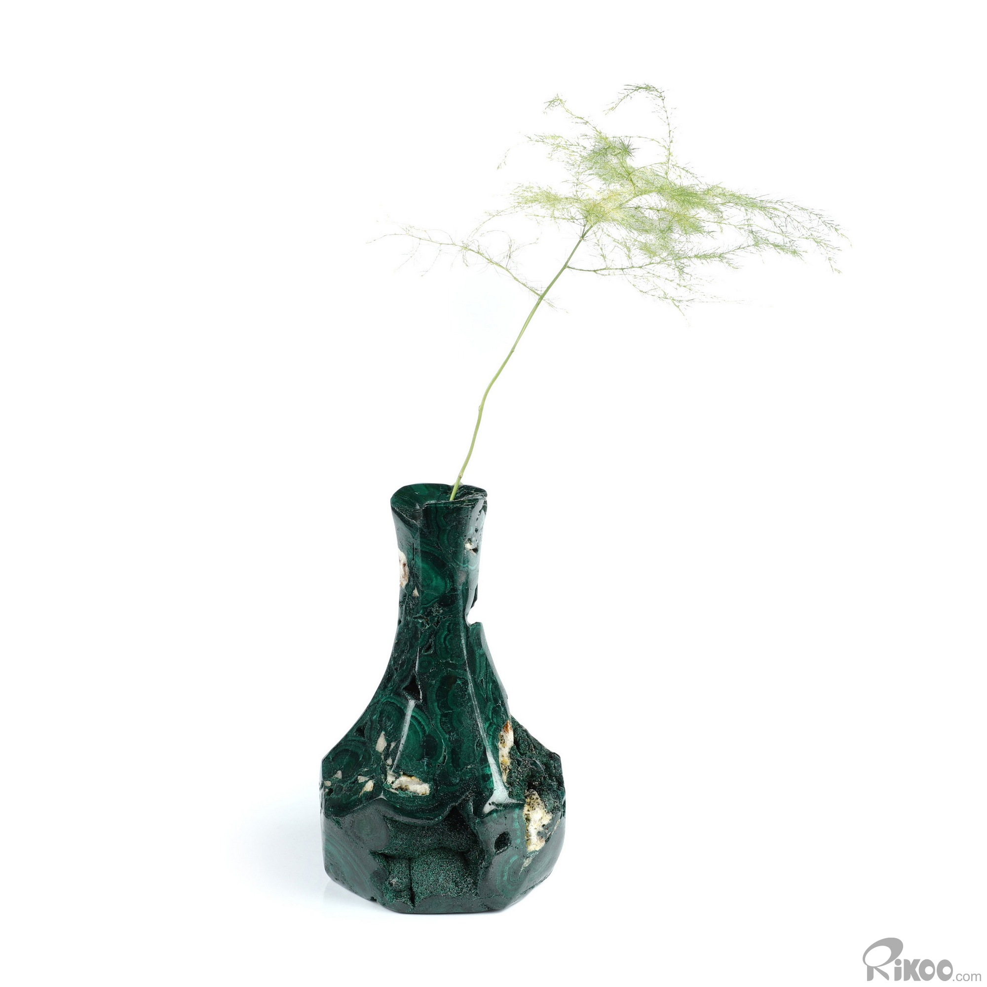 Gemstone 3.3" Malachite Hand Carved Crystal Vase Sculpture, Crystal Healing