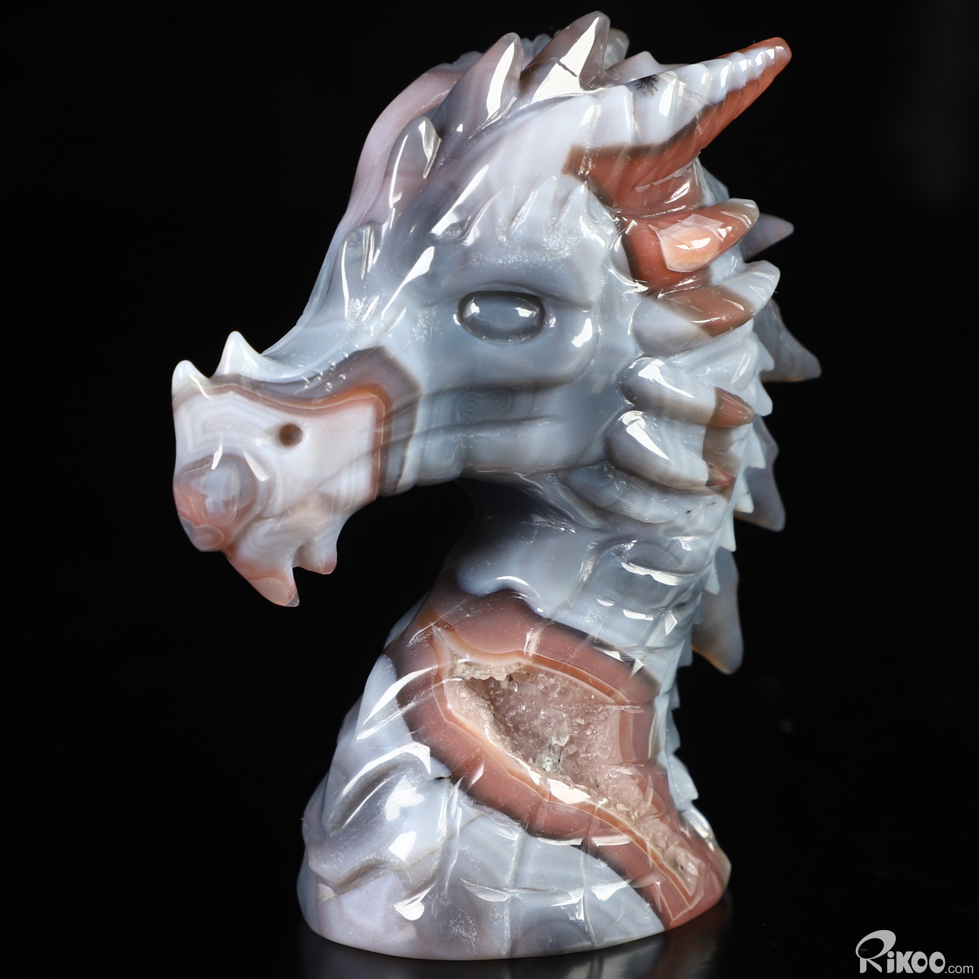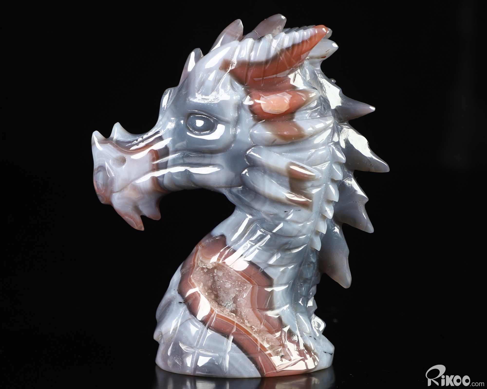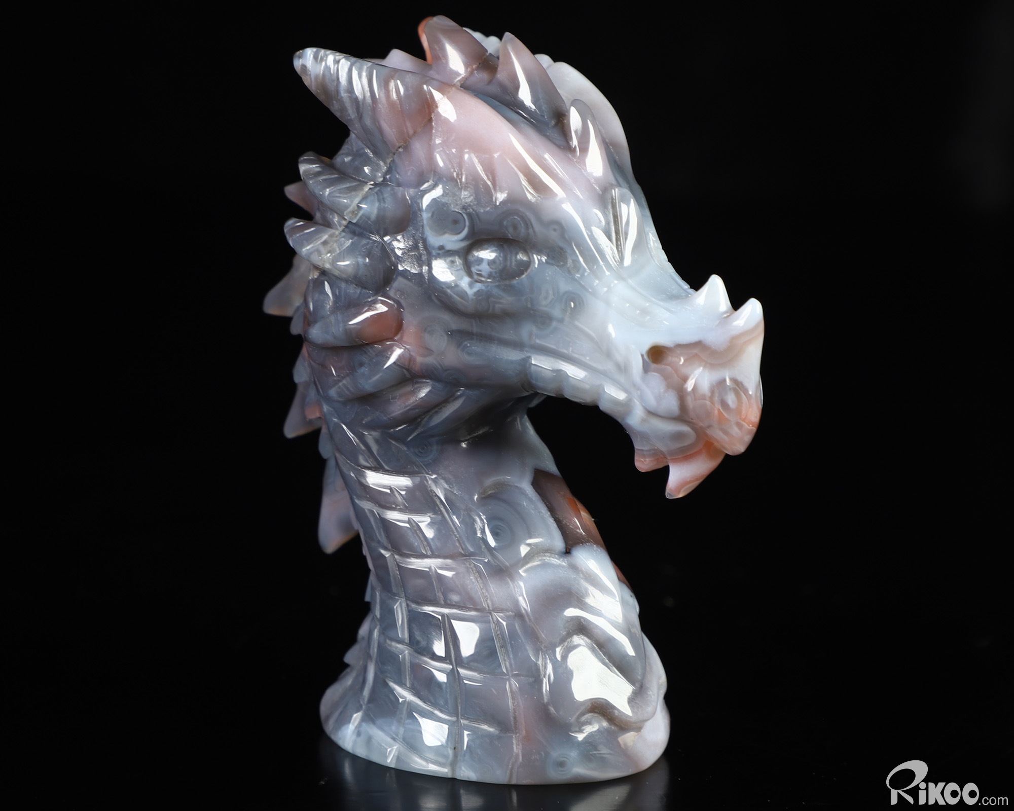 Gemstone 3.5" Mozambique Agate Hand Carved Crystal Dragon Sculpture, Crystal Healing
