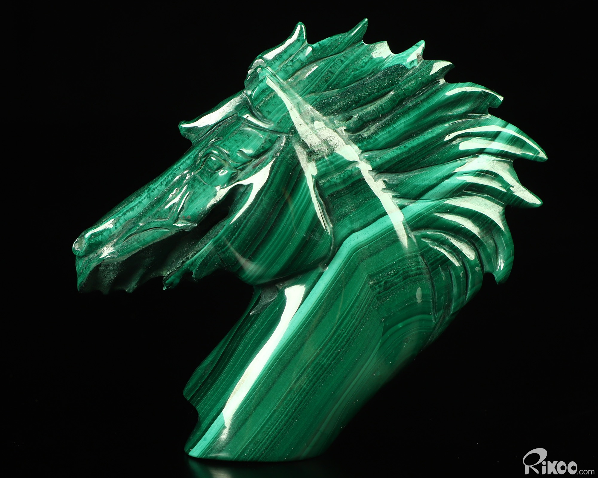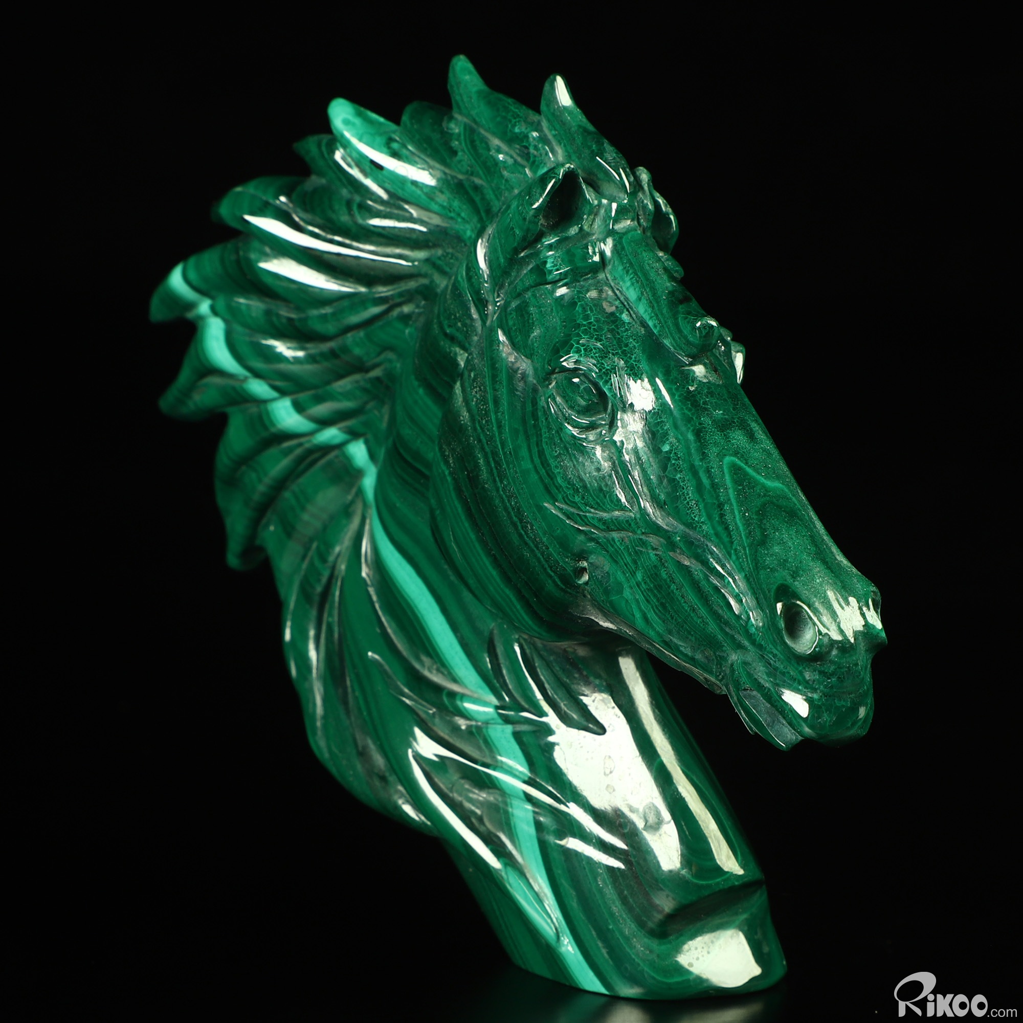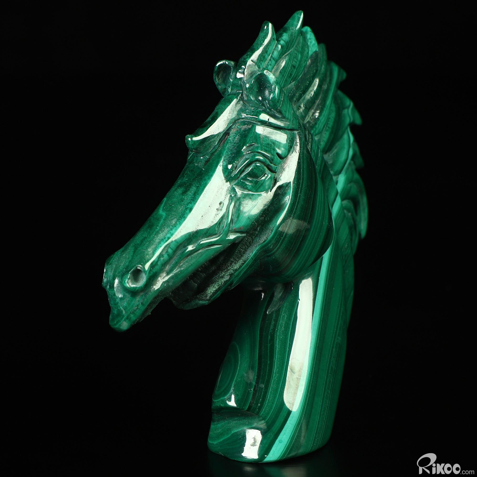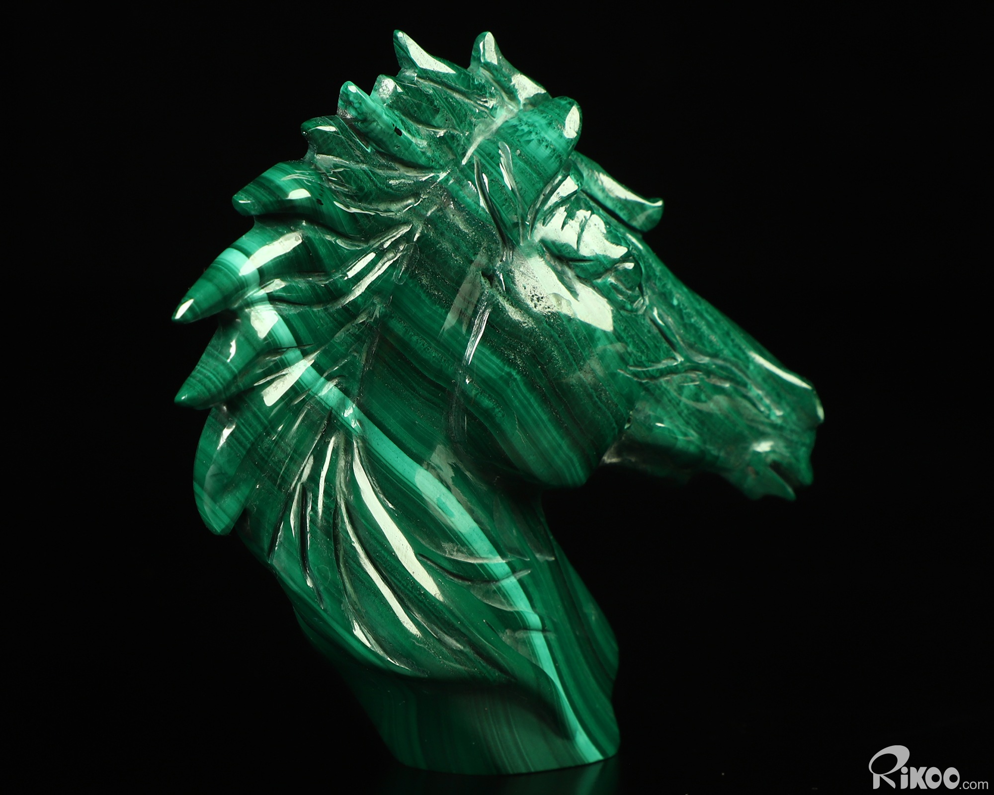 Gemstone 3.7" Malachite Hand Carved Crystal Horse Sculpture, Crystal Healing