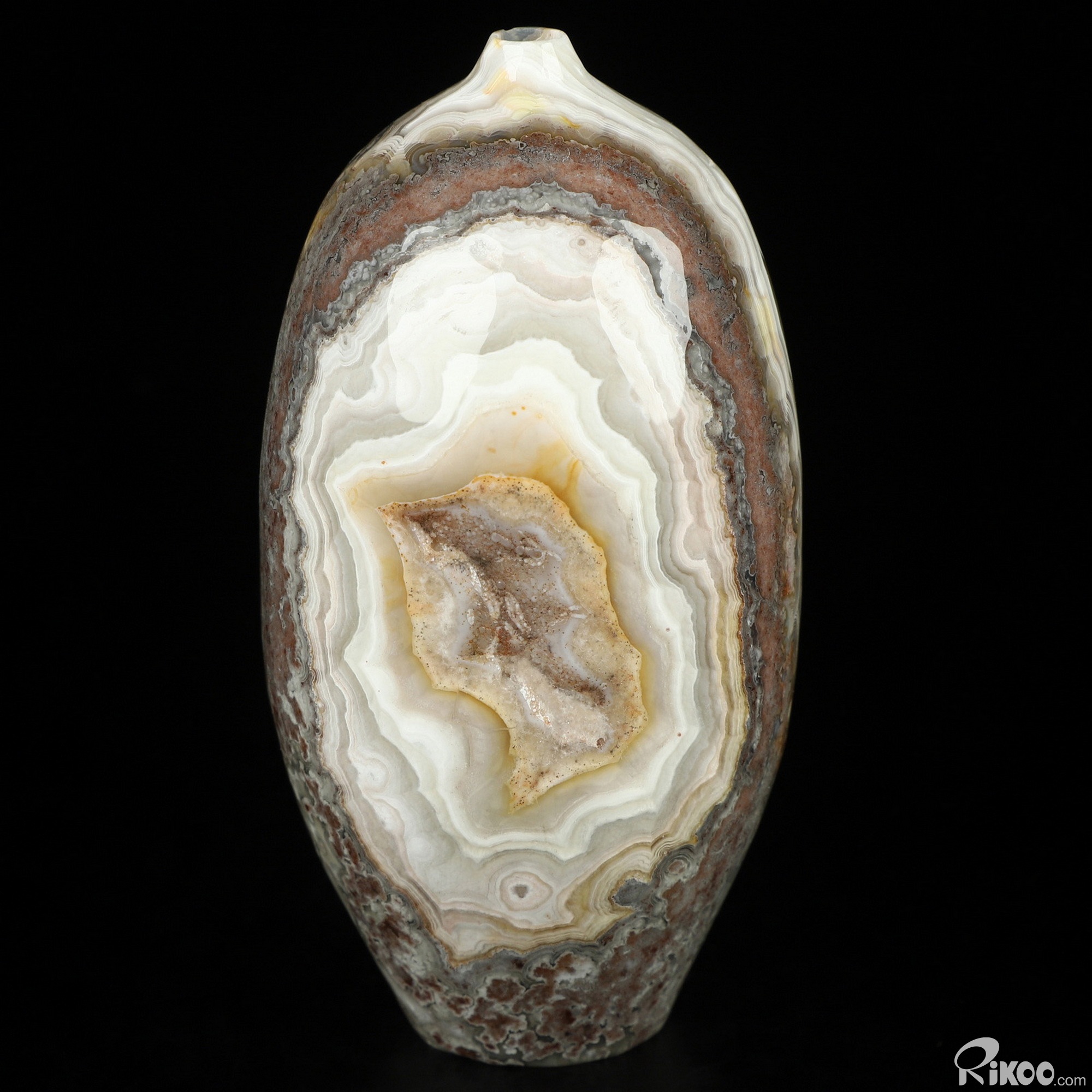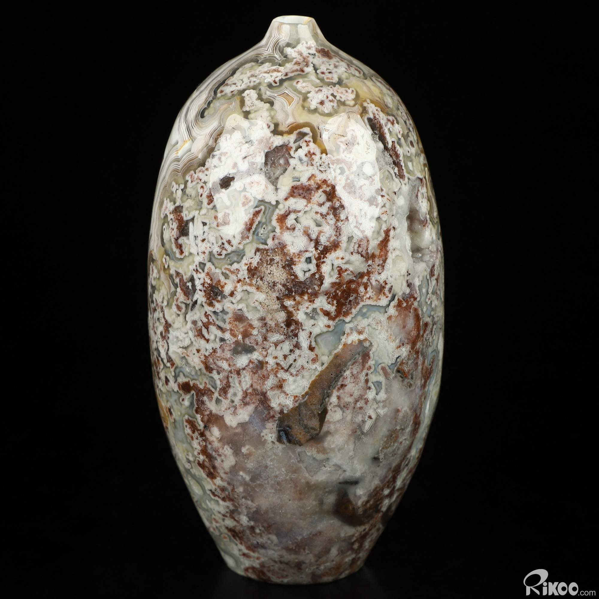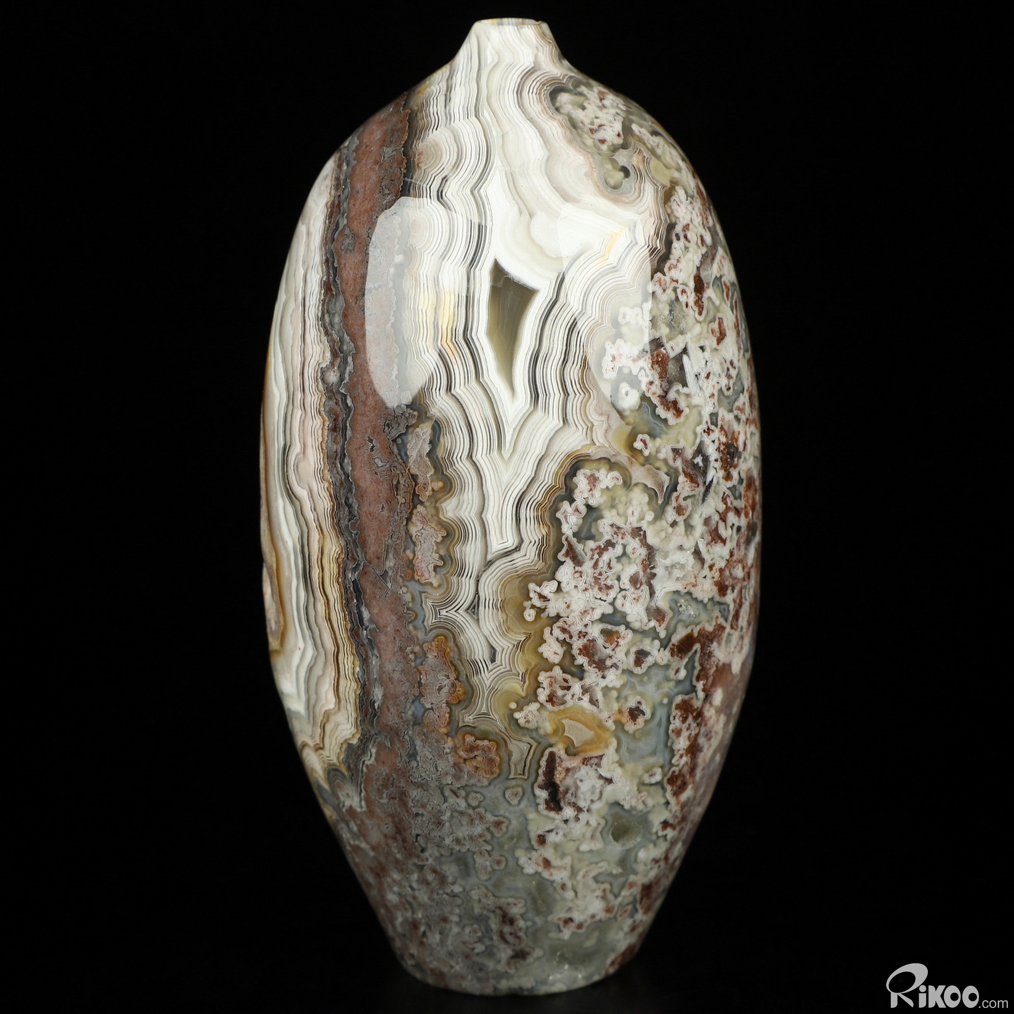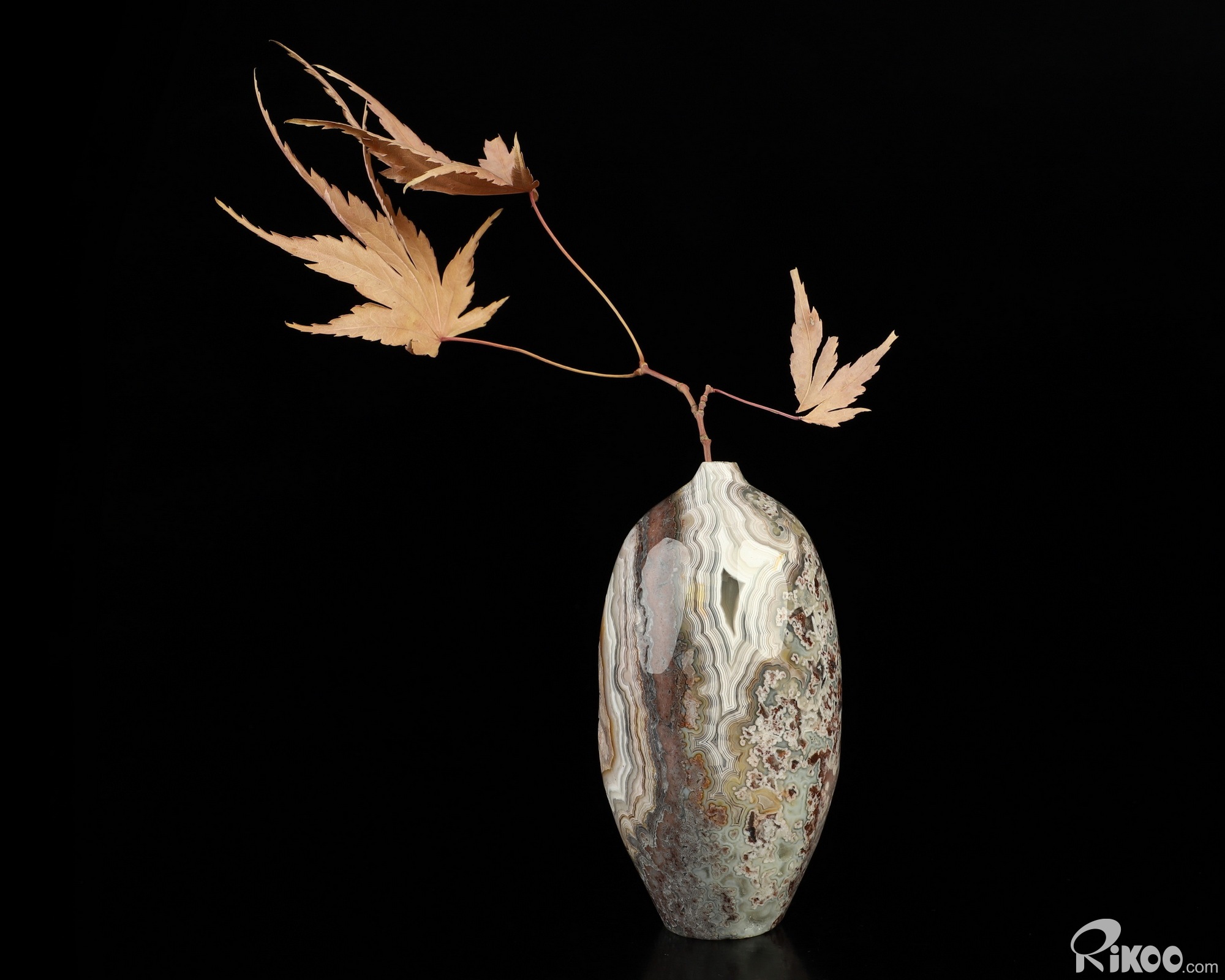 This vase with limited functionality is mainly for display.Crazy Lace Agate can be used to help one to reach extremely high physical levels. It helps to balance physical energies. It can bring humor and laughter to one's life, and helps to see life clearly.