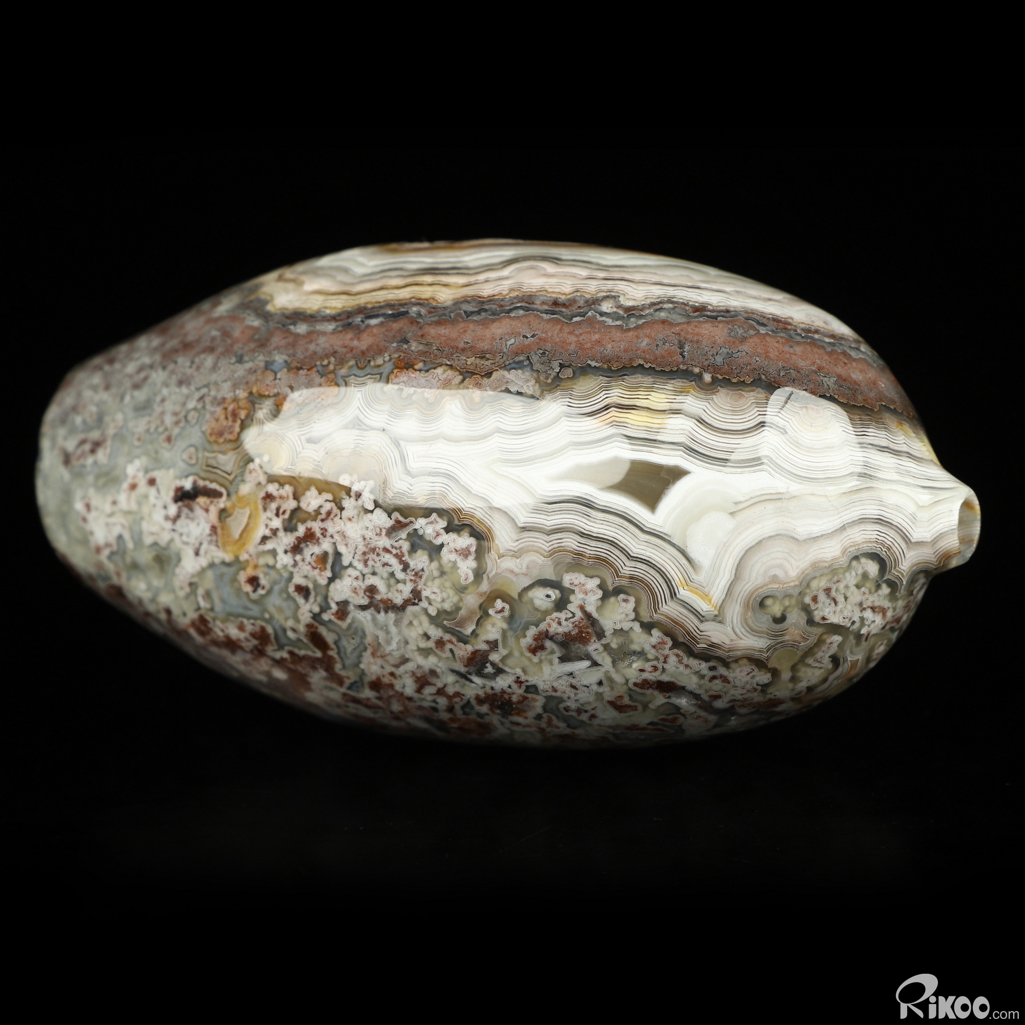 You are looking at a Red Crazy Lace Agate sculpture. The sculpture is 3.7 inches long.