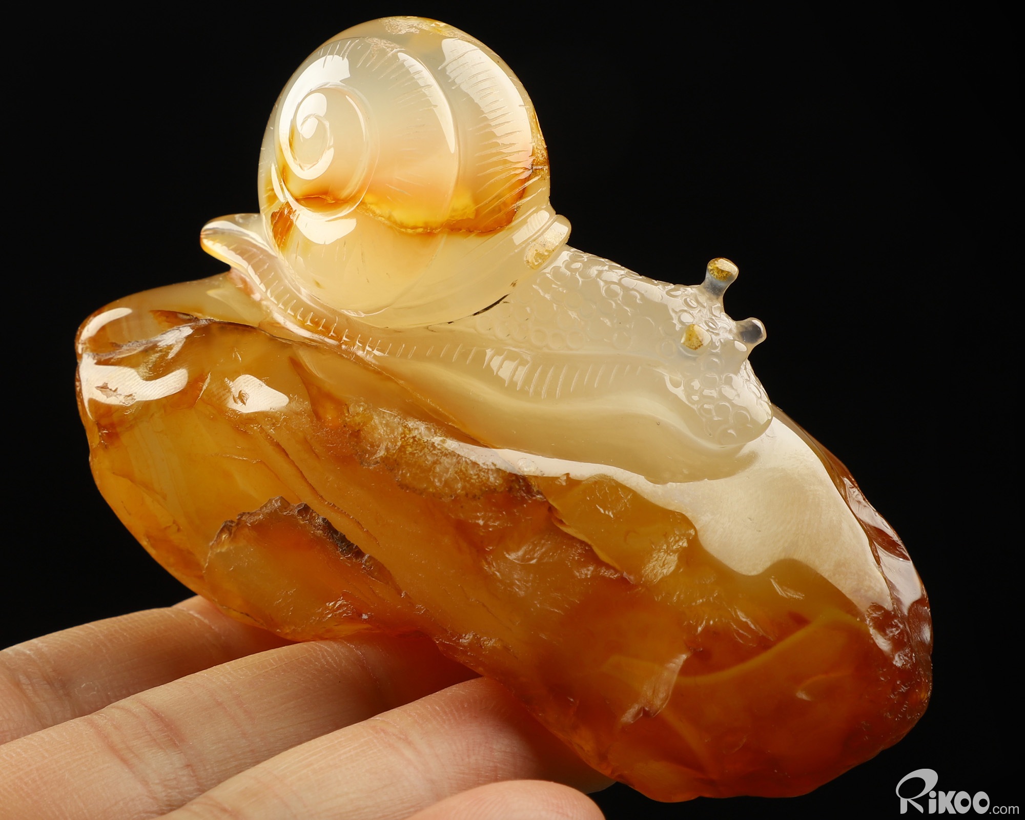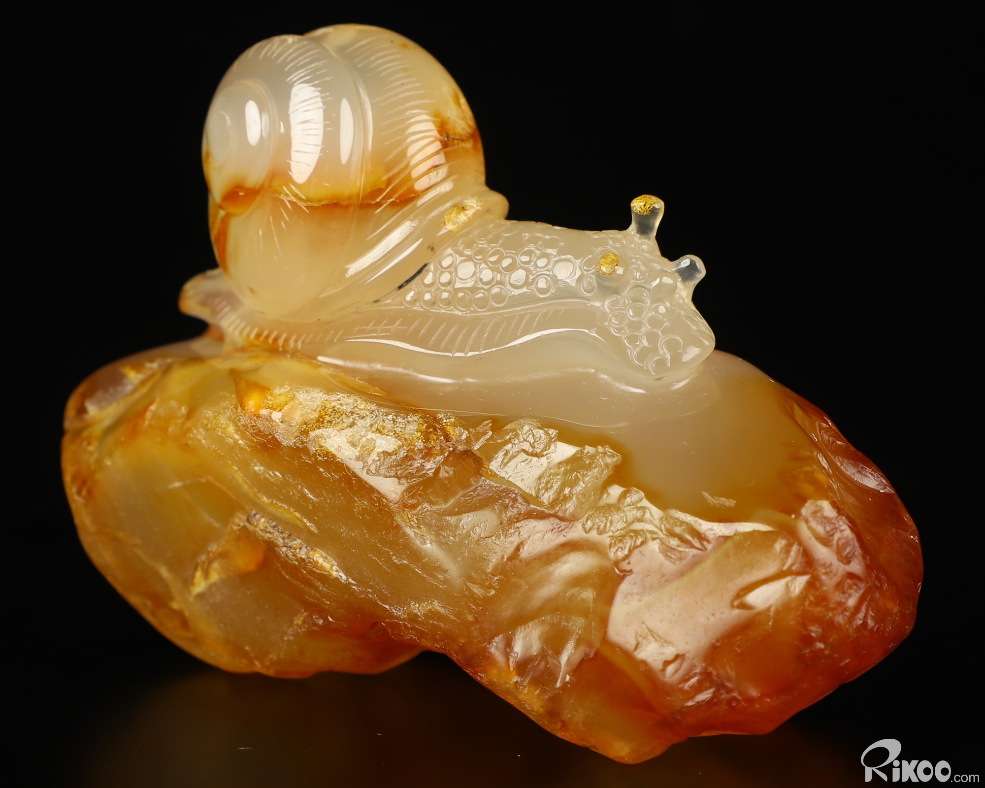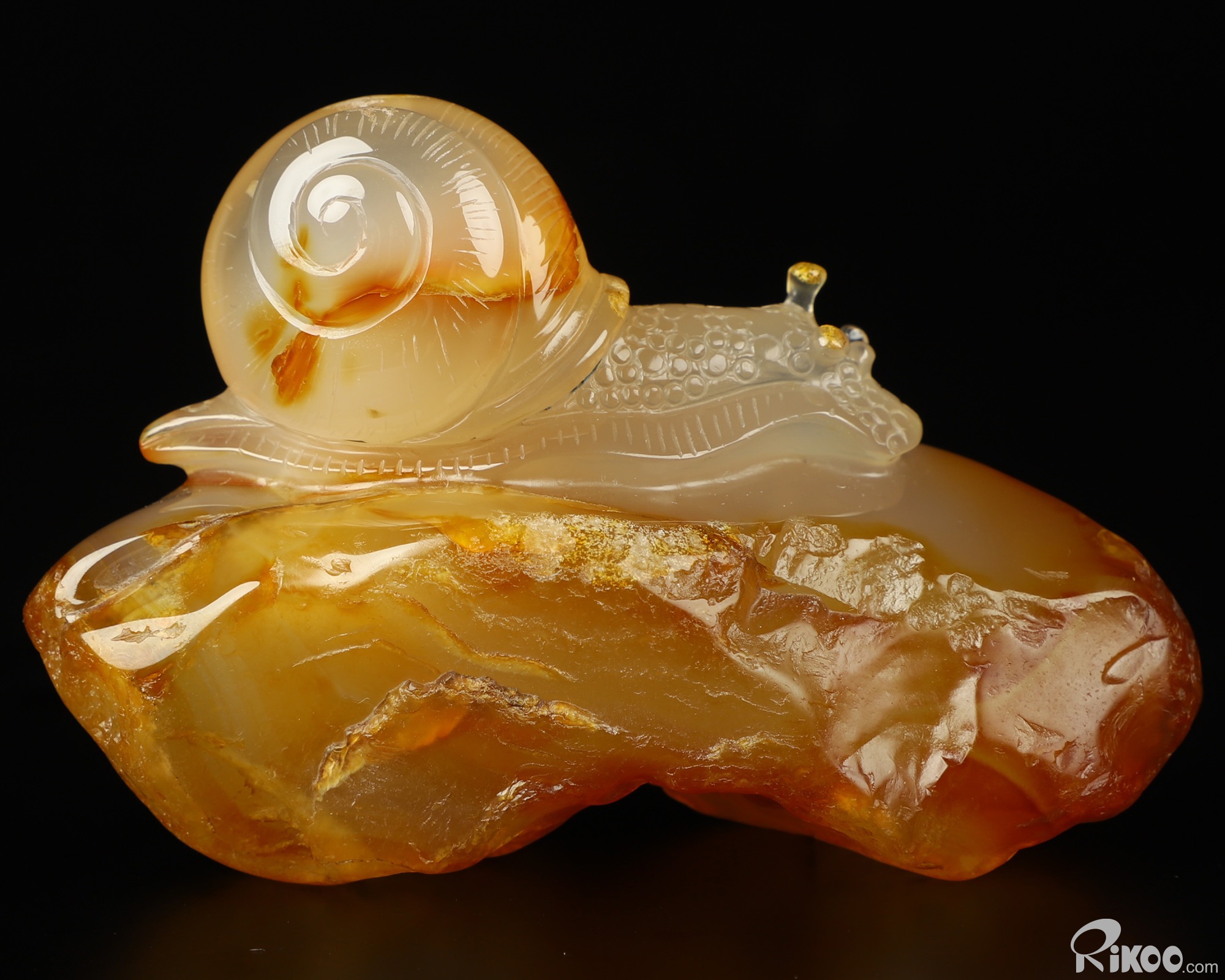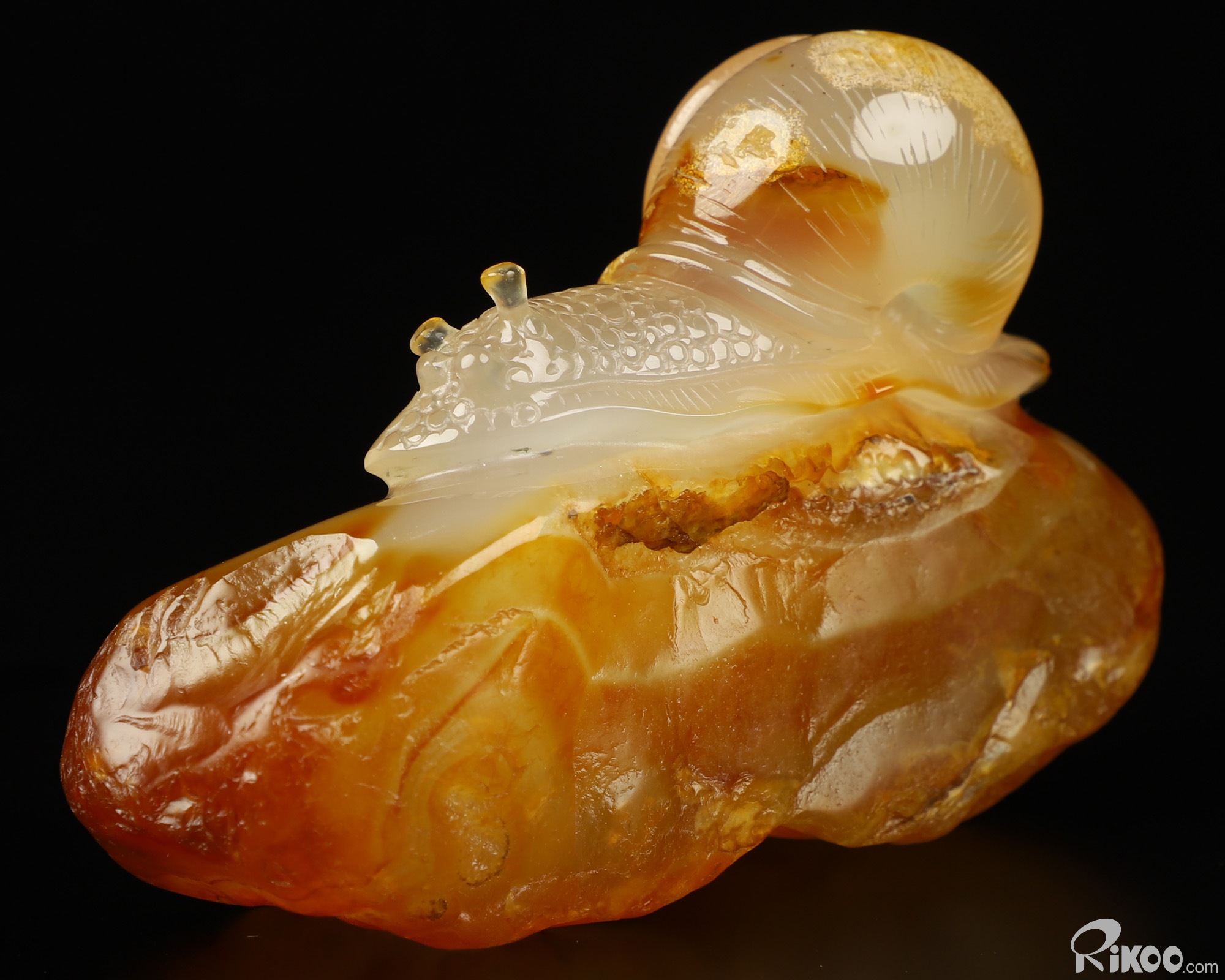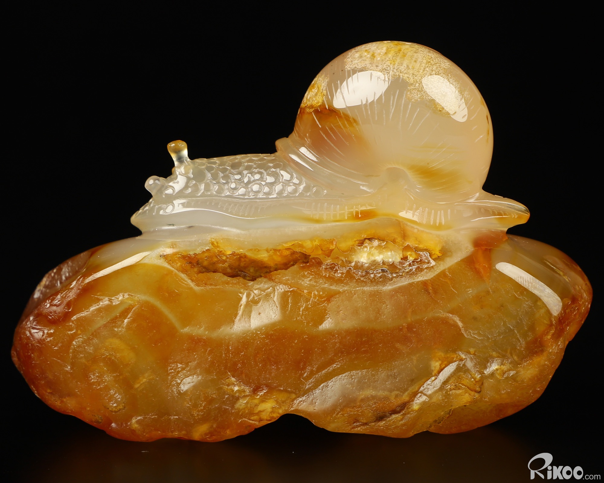 Gemstone 3.9" Carnelian Carved Crystal Snail Sculpture