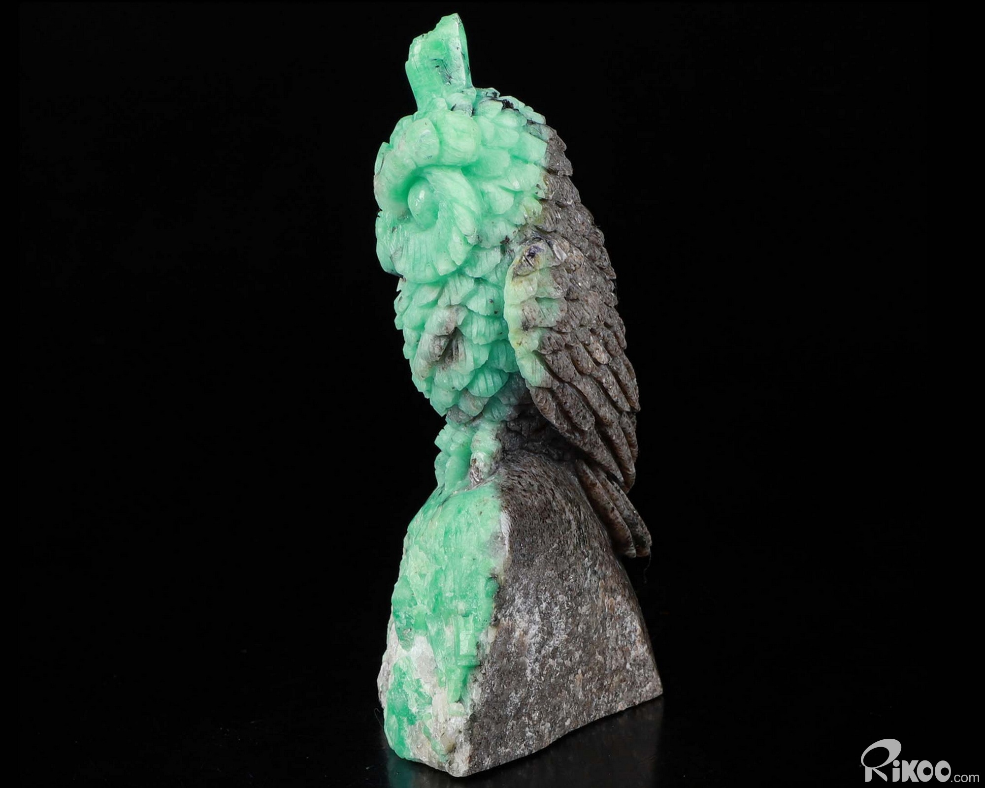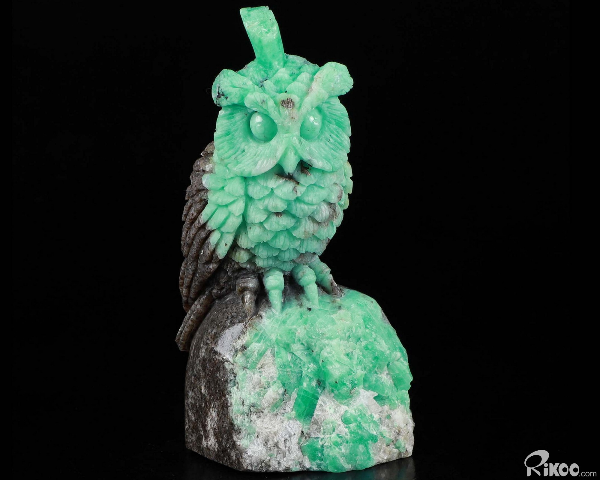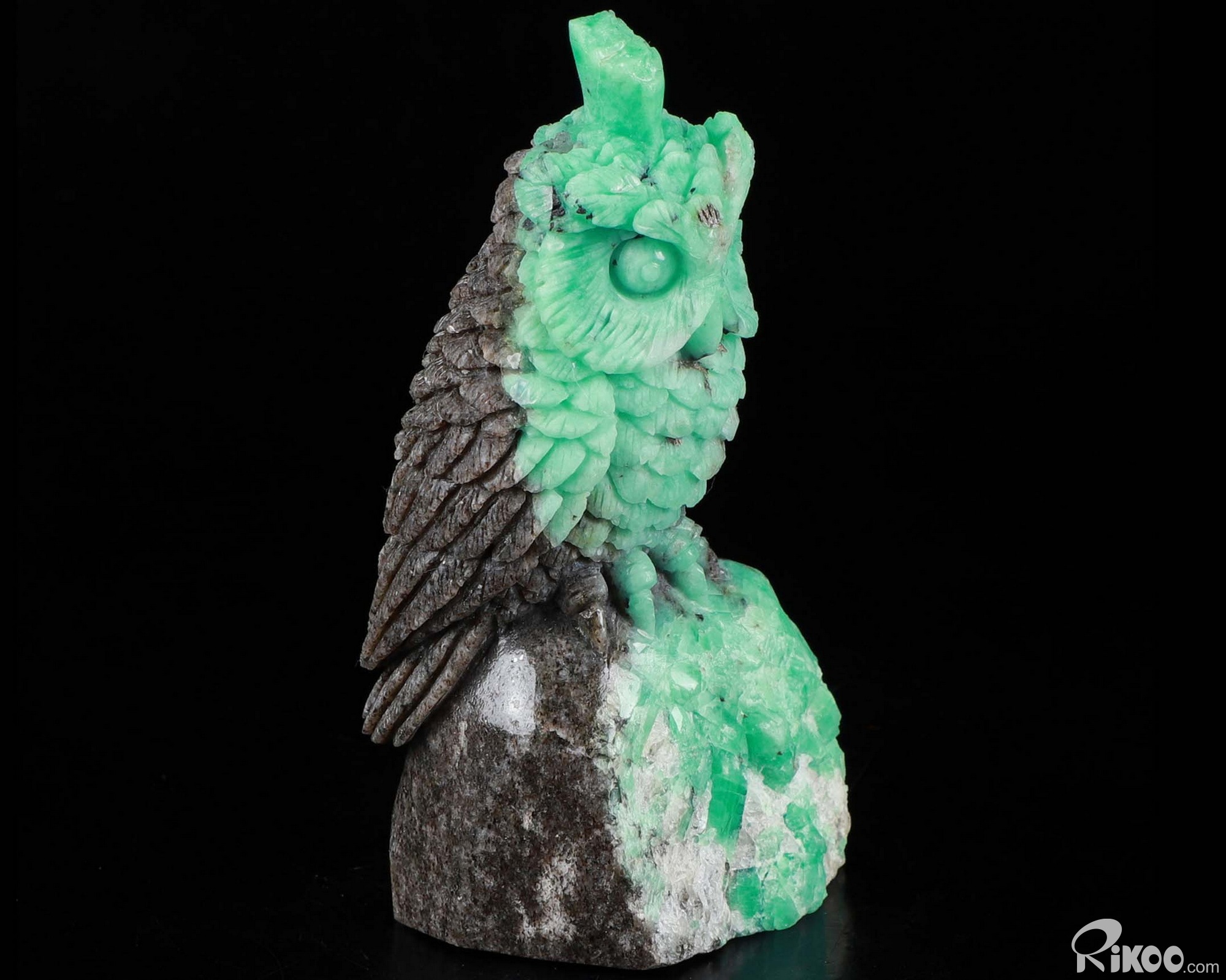 Gemstone 3.9" Emerald Carved Crystal Owl Sculpture, Realistic