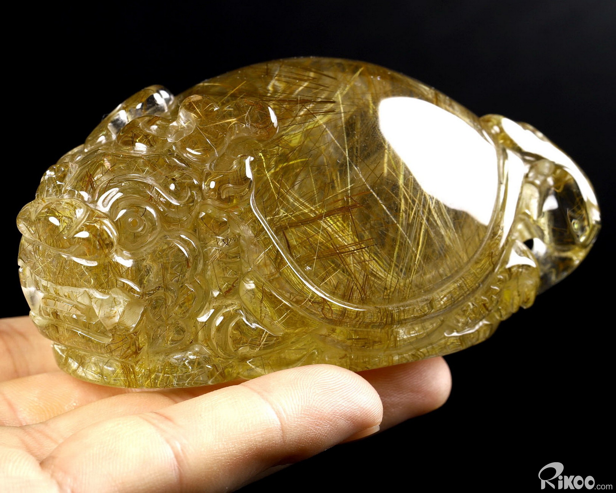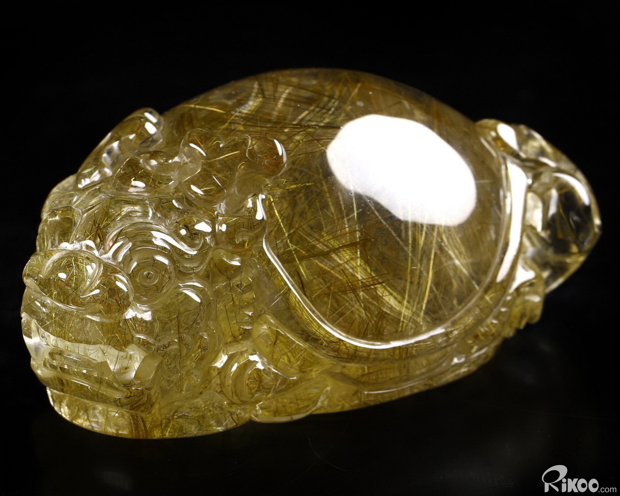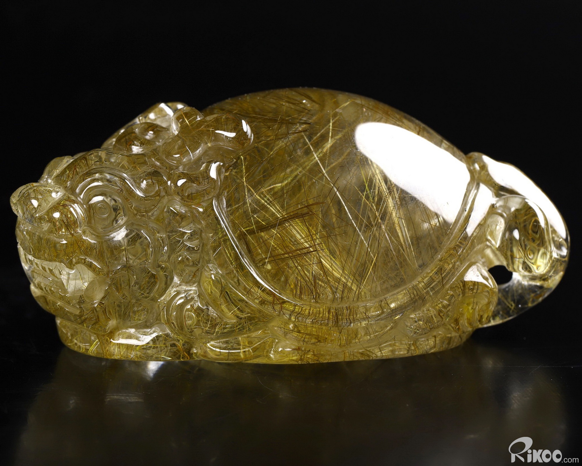 Gemstone 3.9" Rutilated Quartz Rock Crystal Carved Crystal Dragon turtle Sculpture, Crystal Healing