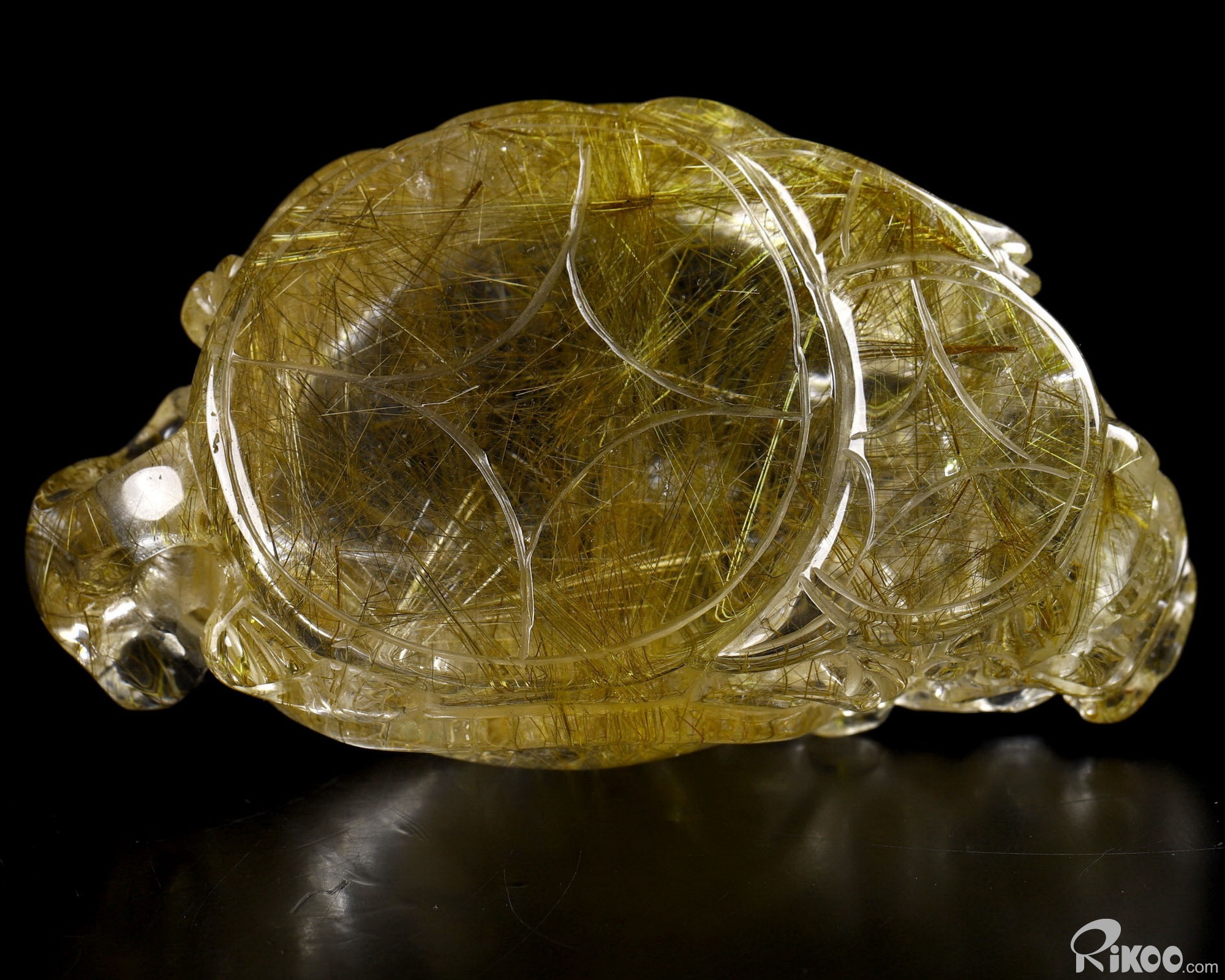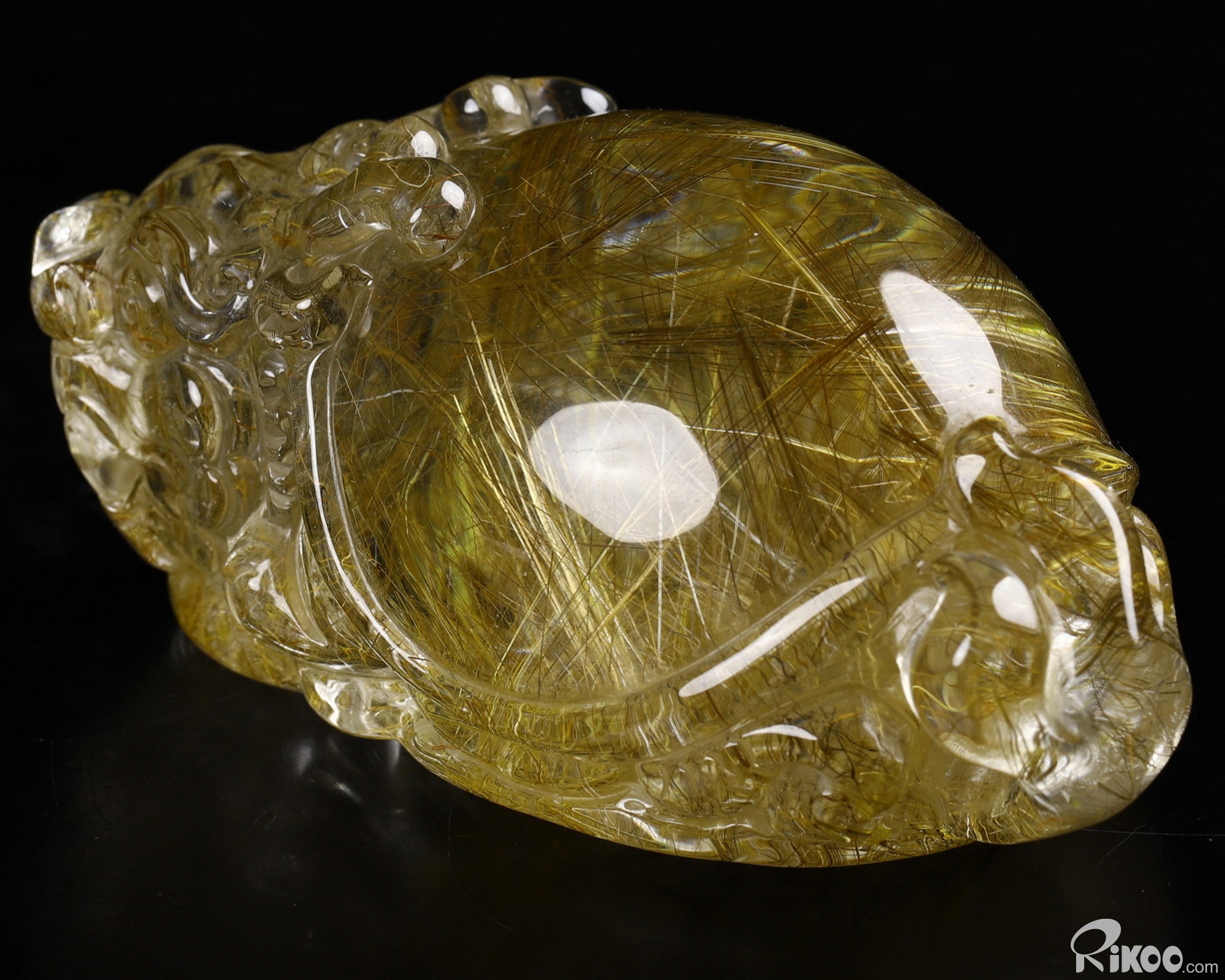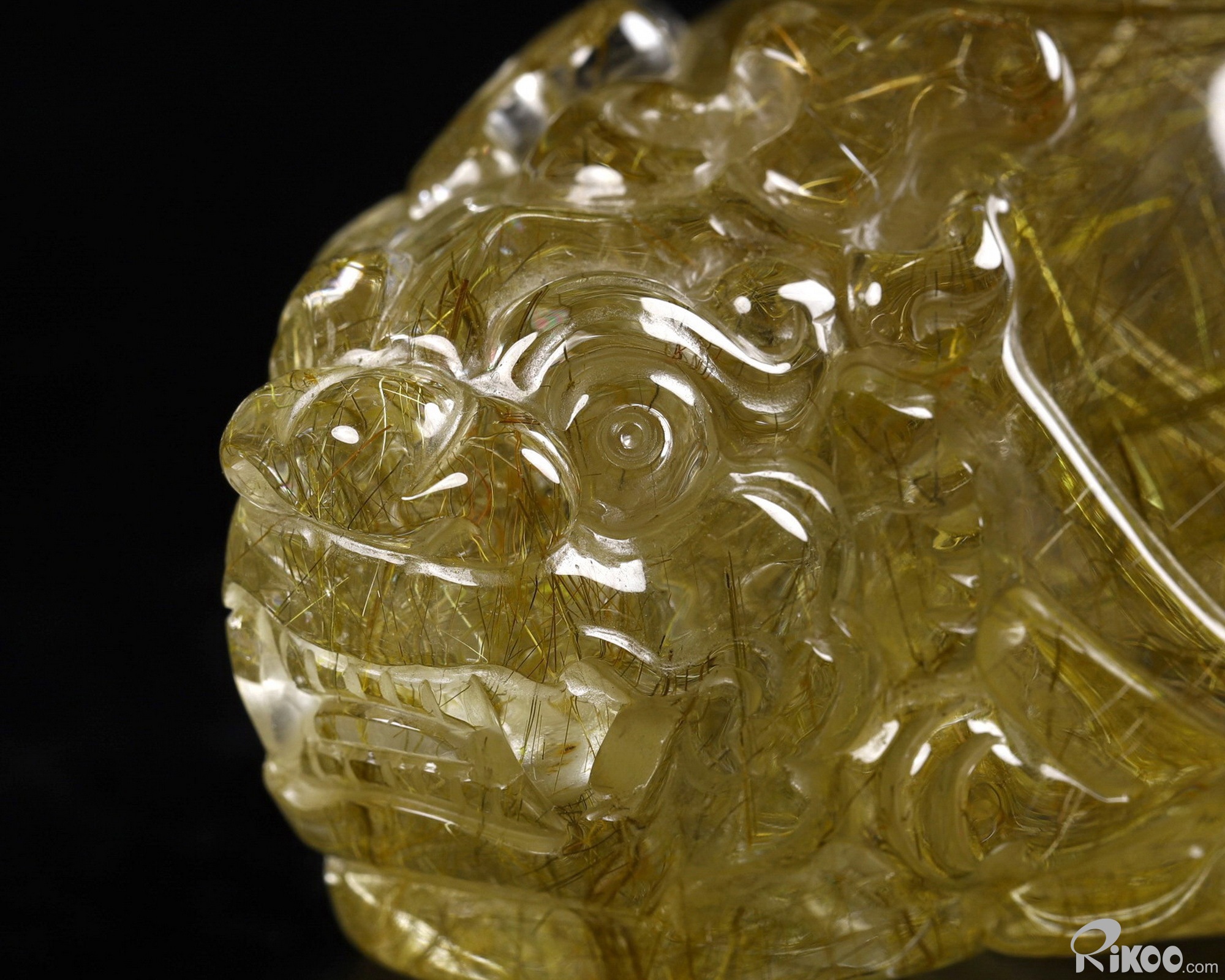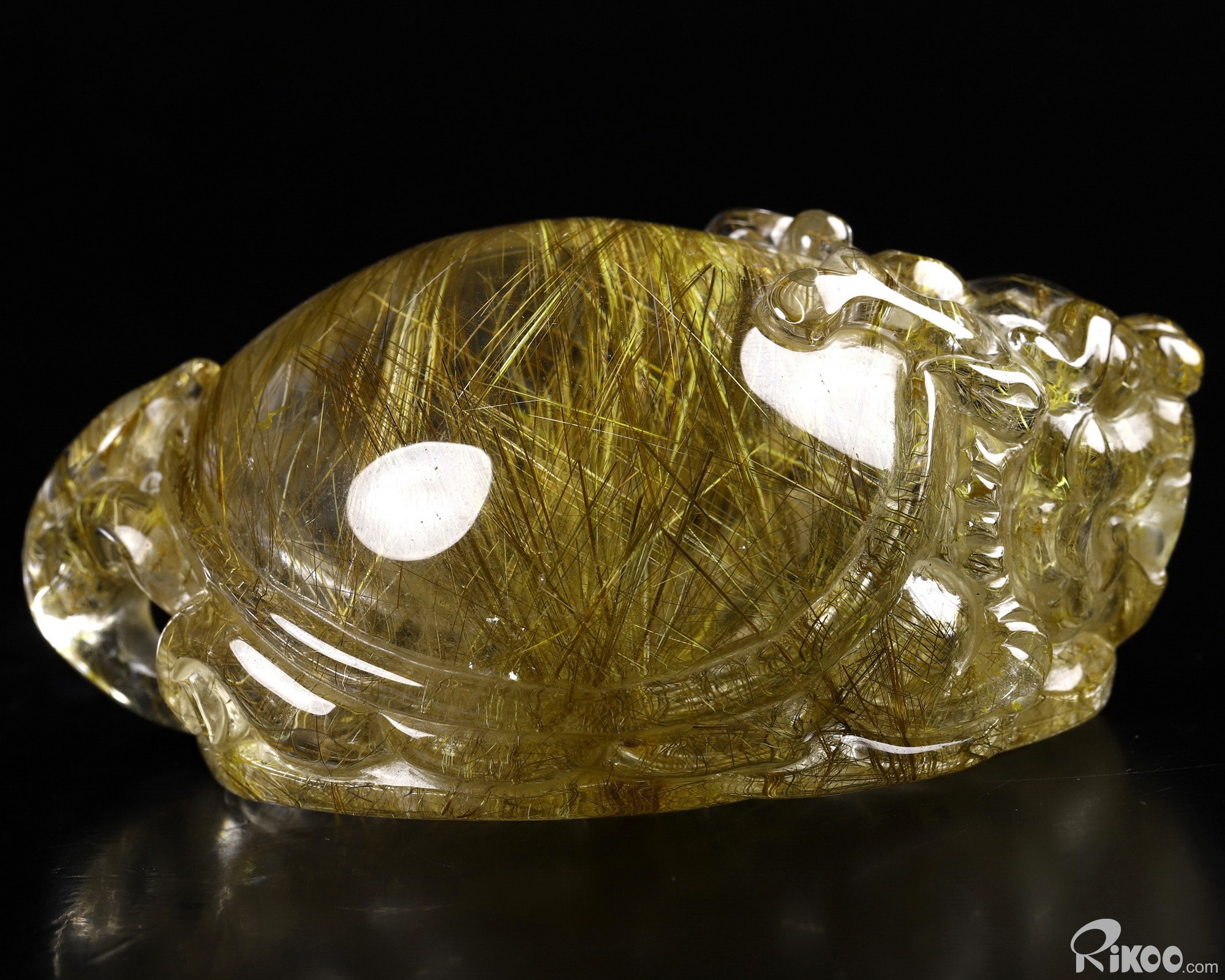 Gemstone 3.9" Rutilated Quartz Rock Crystal Carved Crystal Dragon turtle Sculpture, Crystal Healing