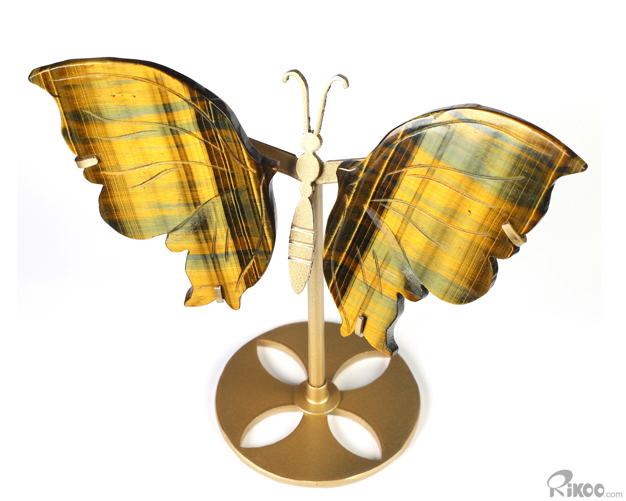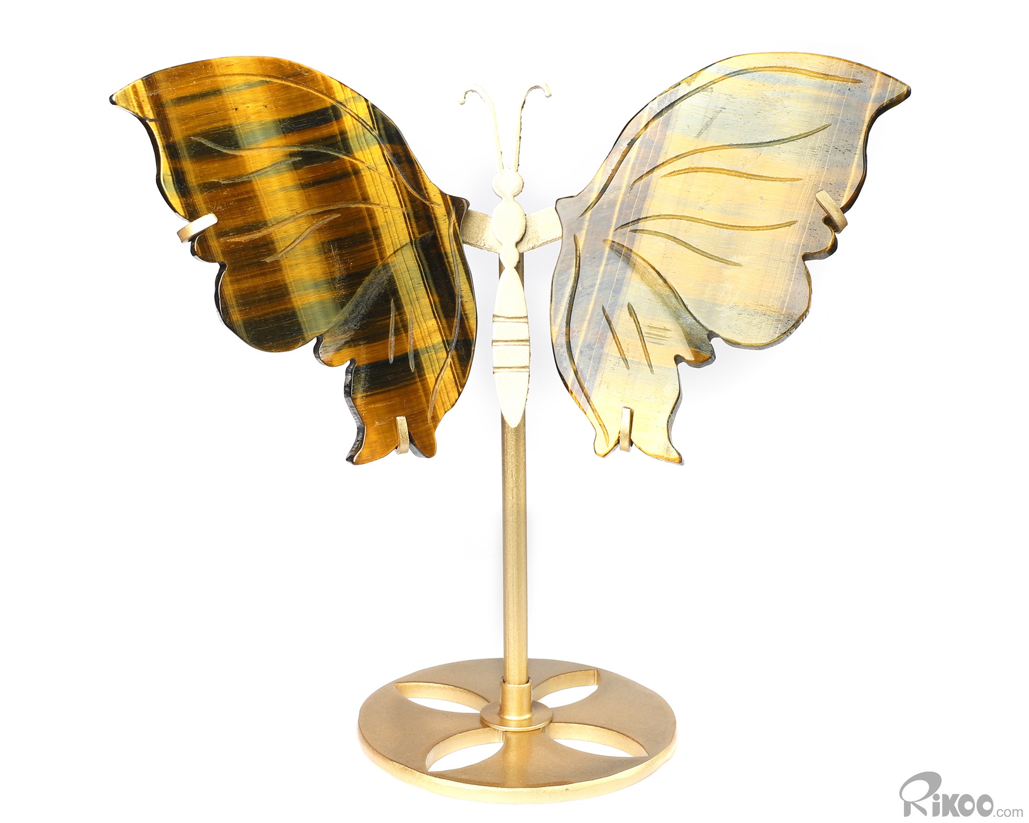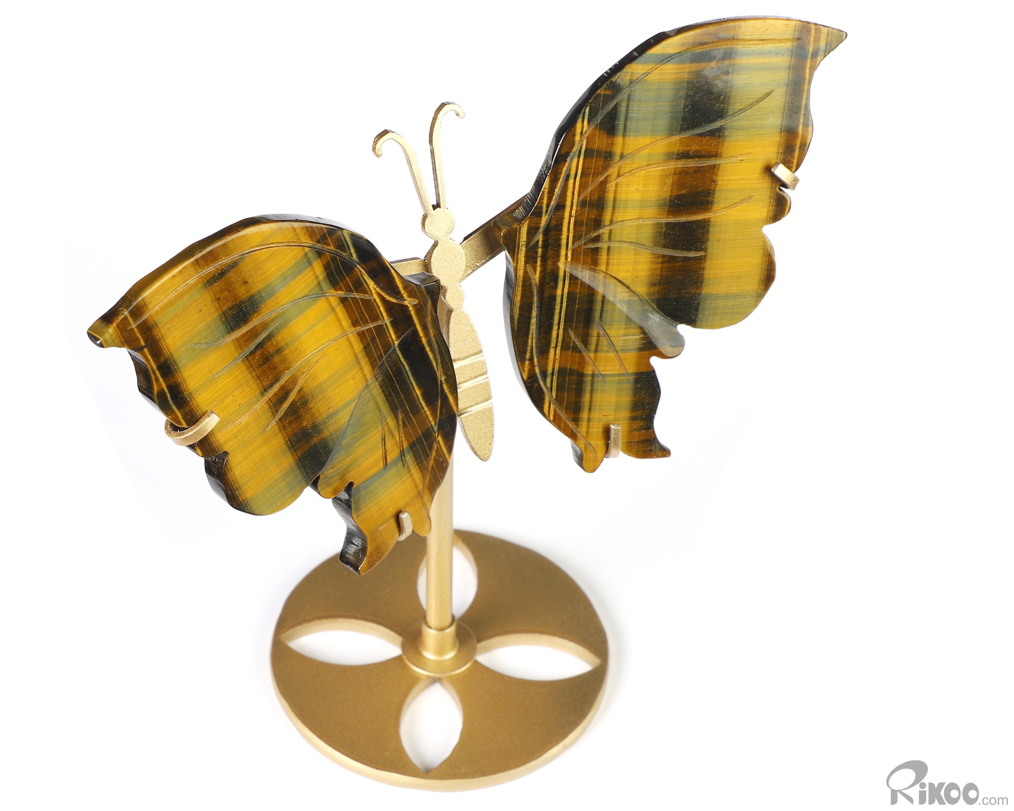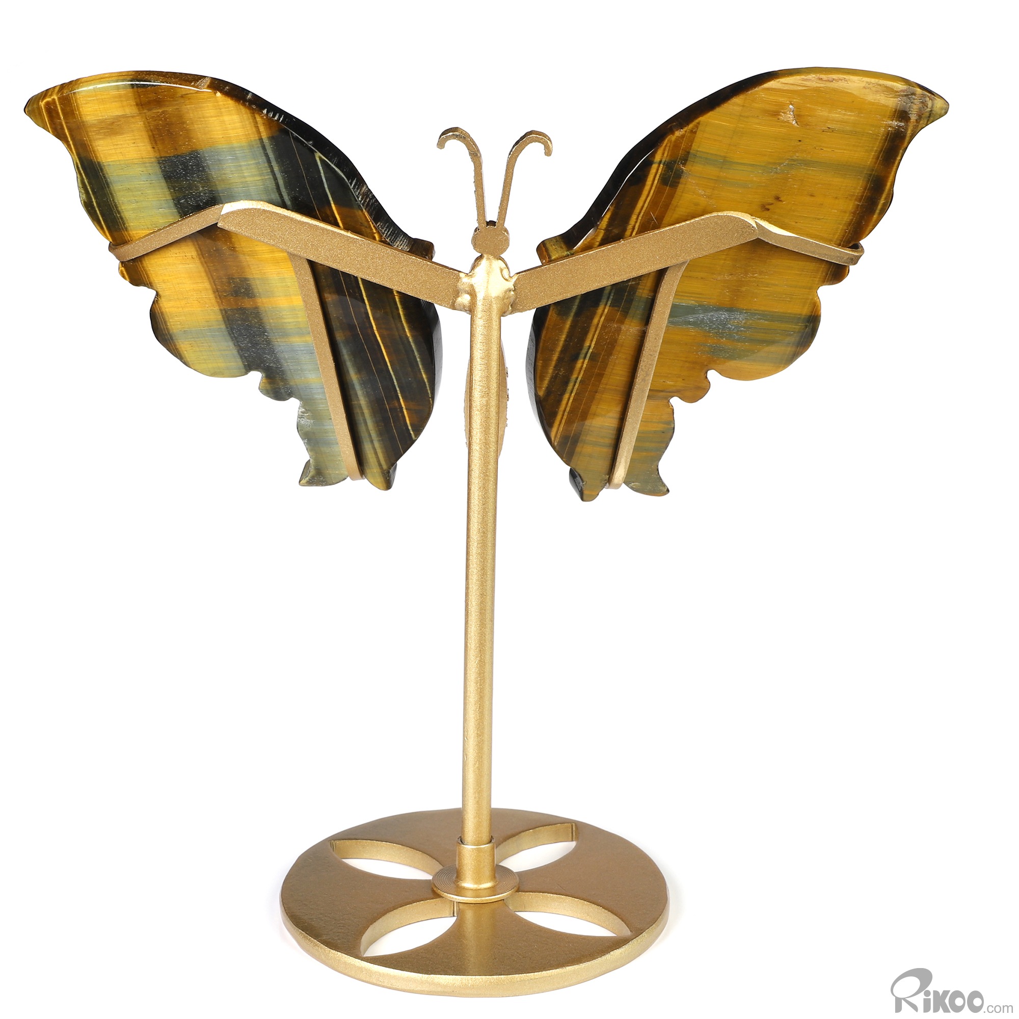 Gemstone 4.1" Blue & Gold Tiger's Eye Hand Carved Crystal Butterfly with Stand, Crystal Healing