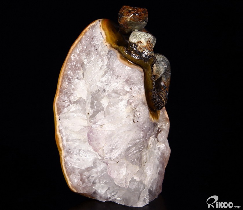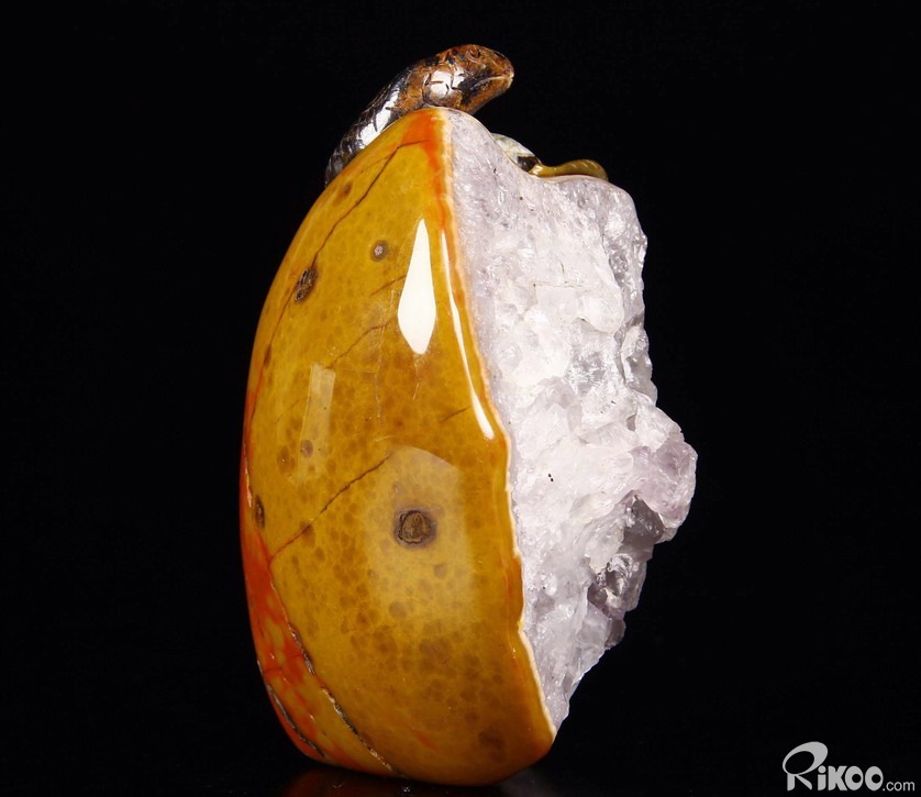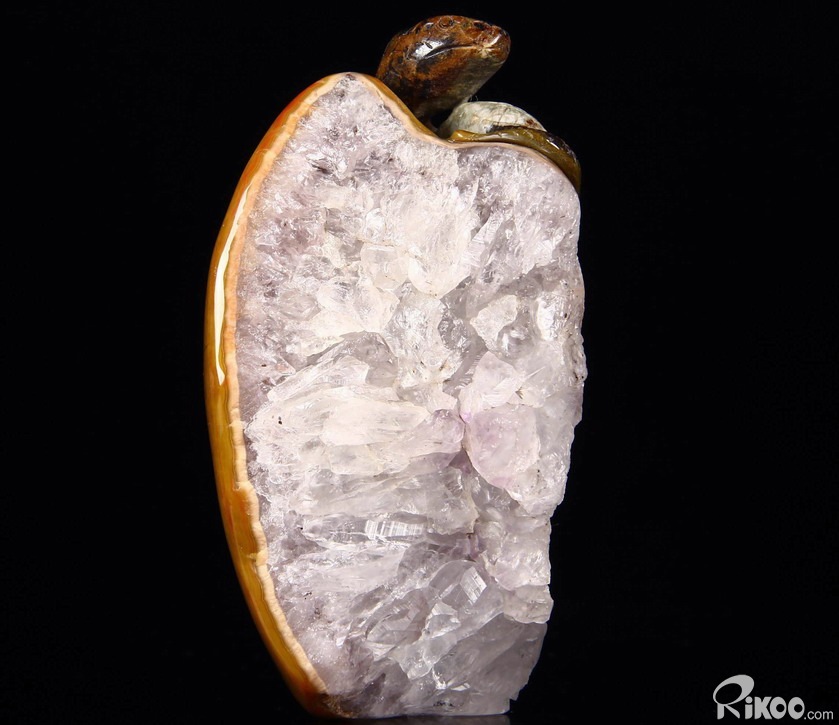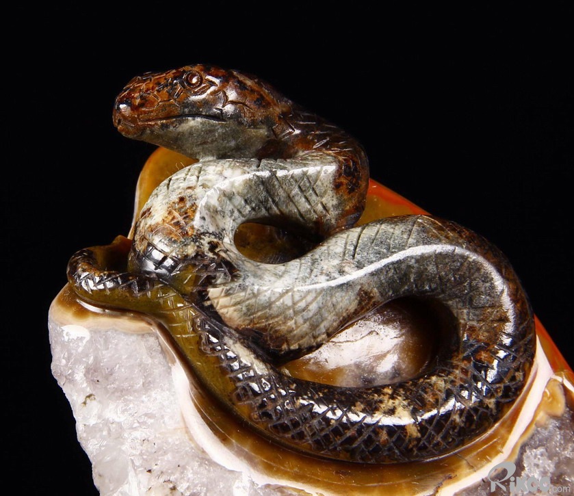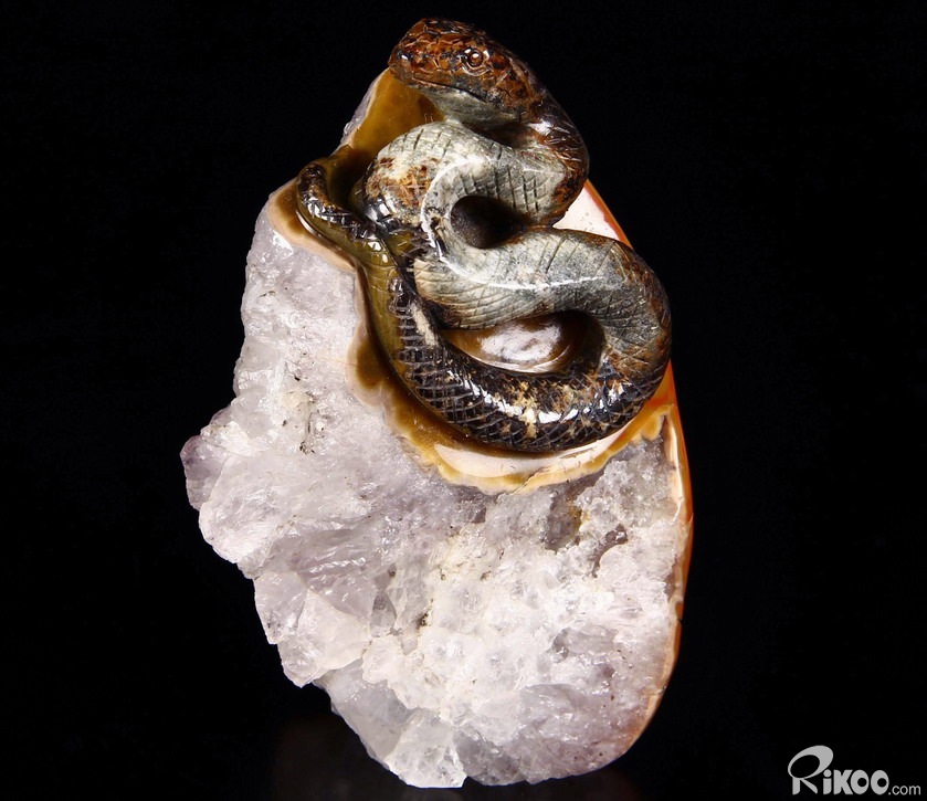 Gemstone 4.1" Empire Red Agate Geode Carved Crystal Snake Sculpturre