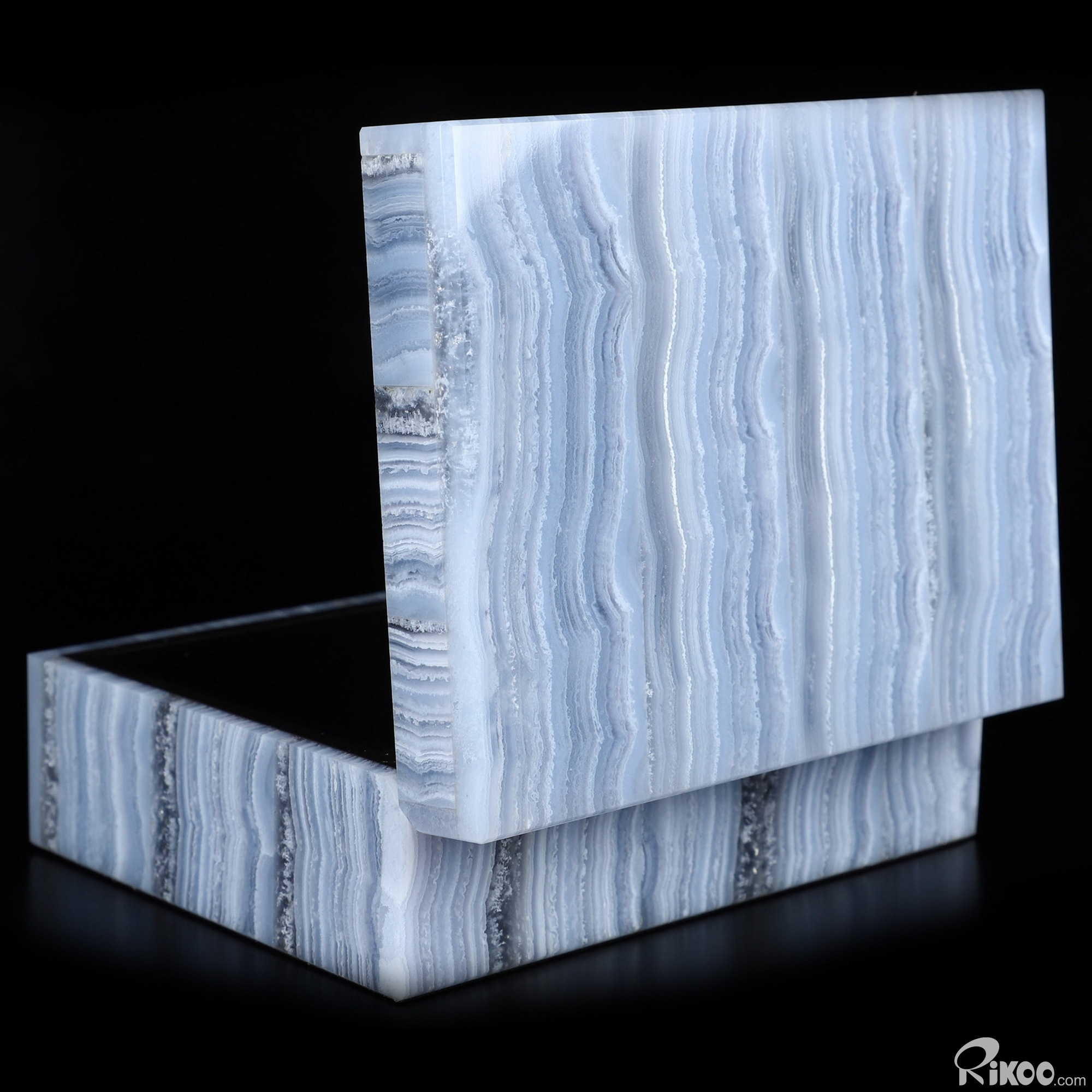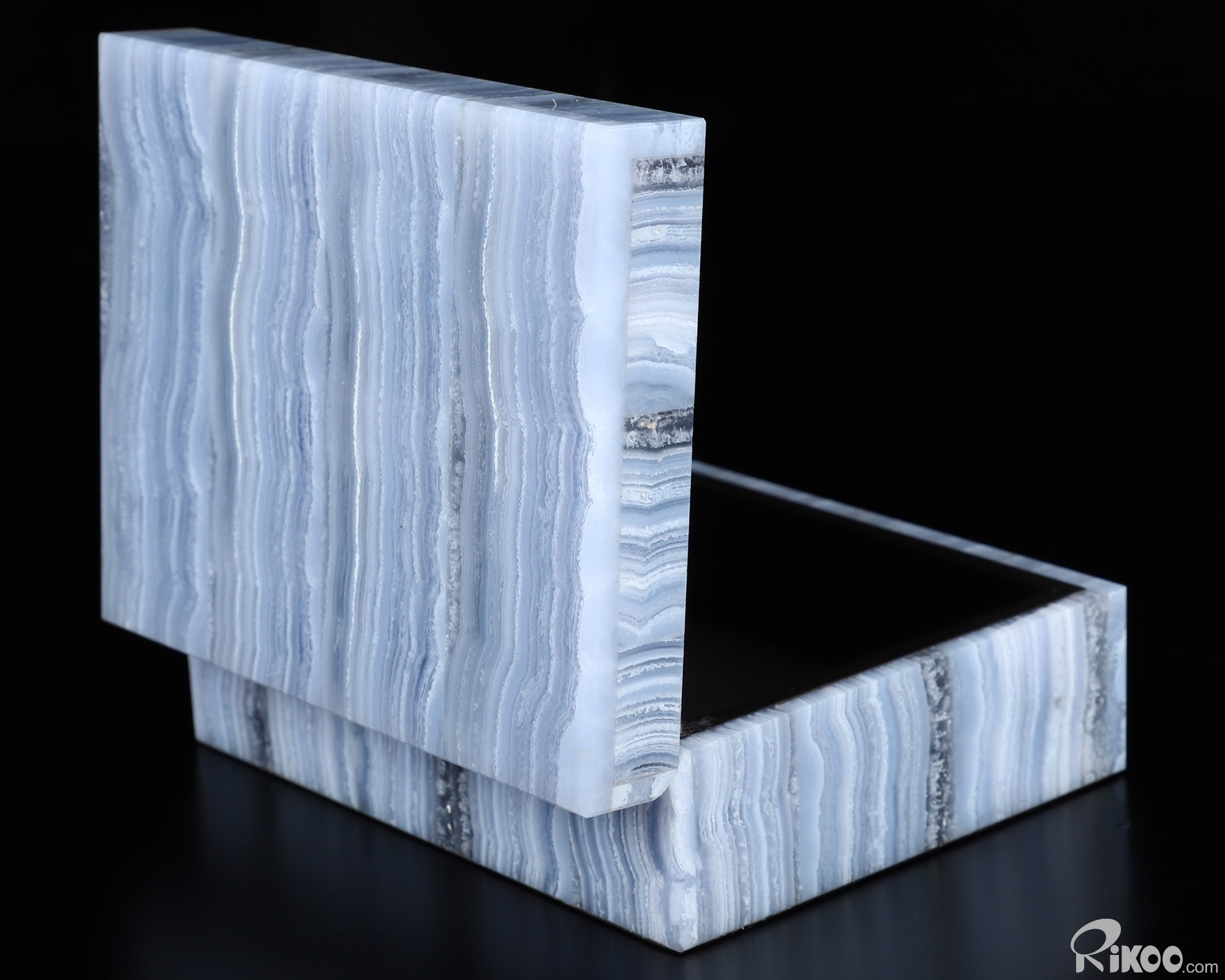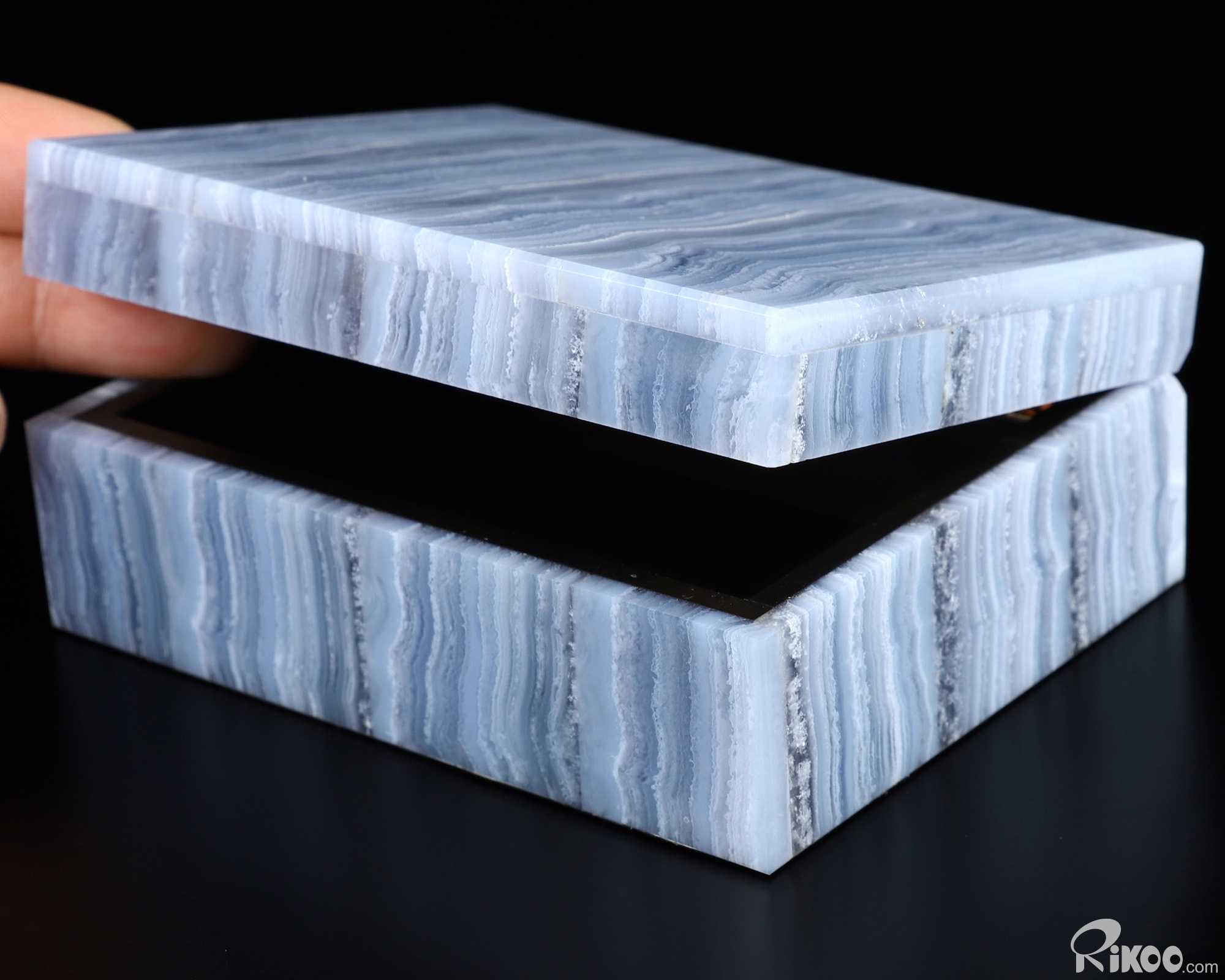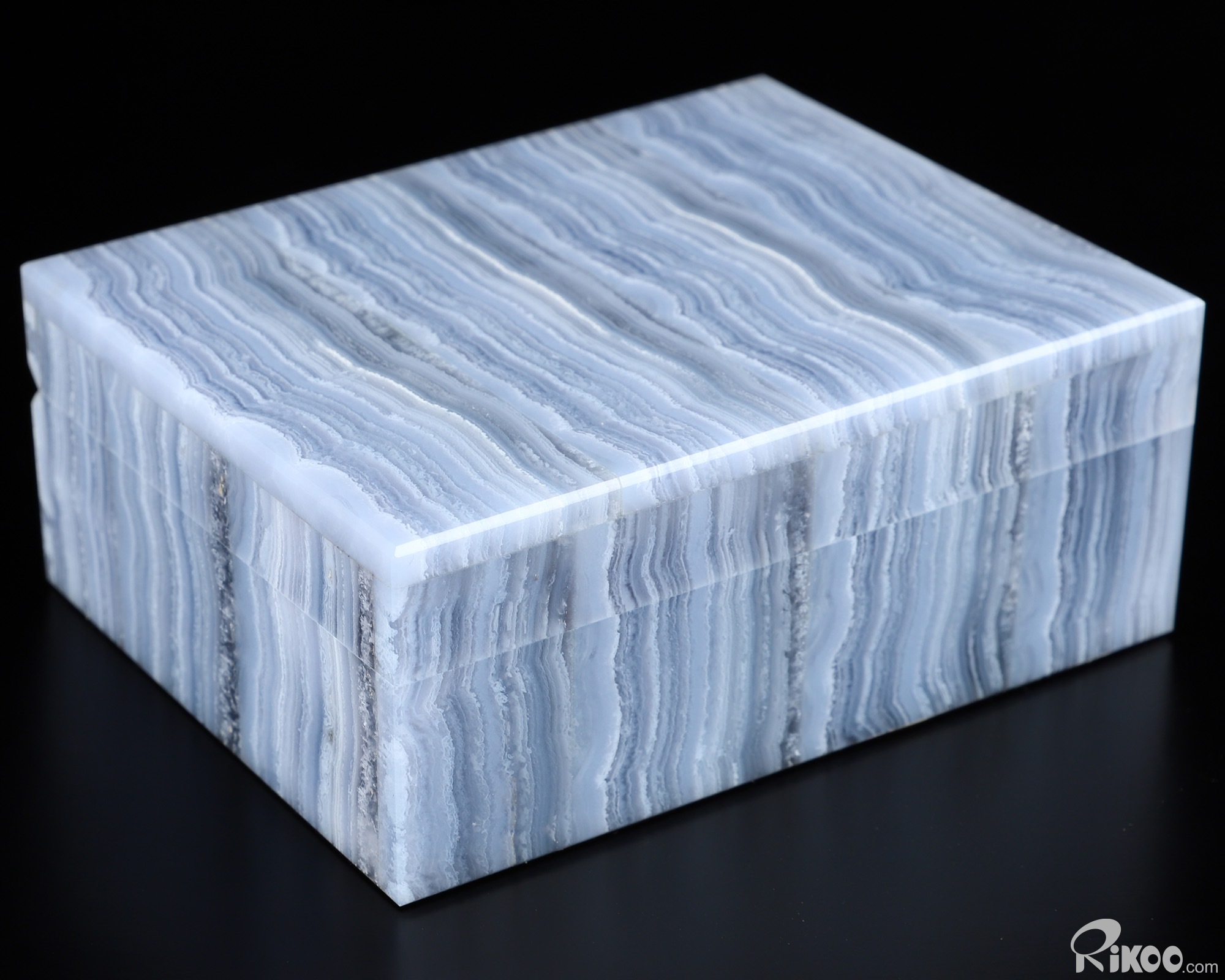 You are looking at a Blue Lace Agate Box. The sculpture is 4.2 inches long.