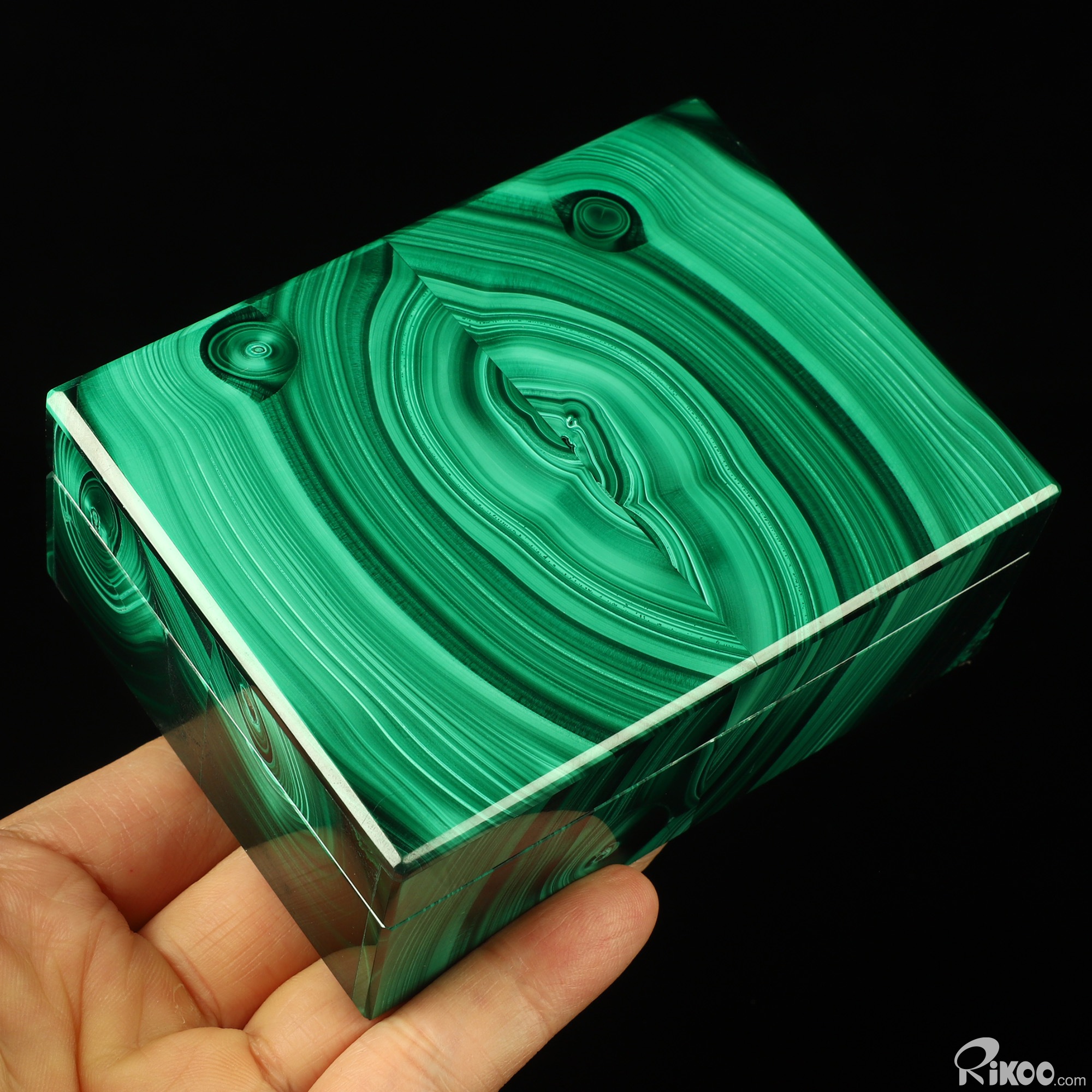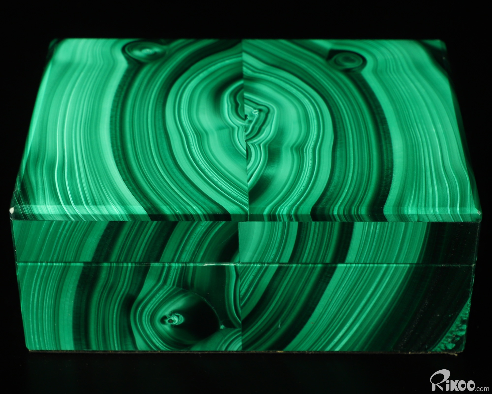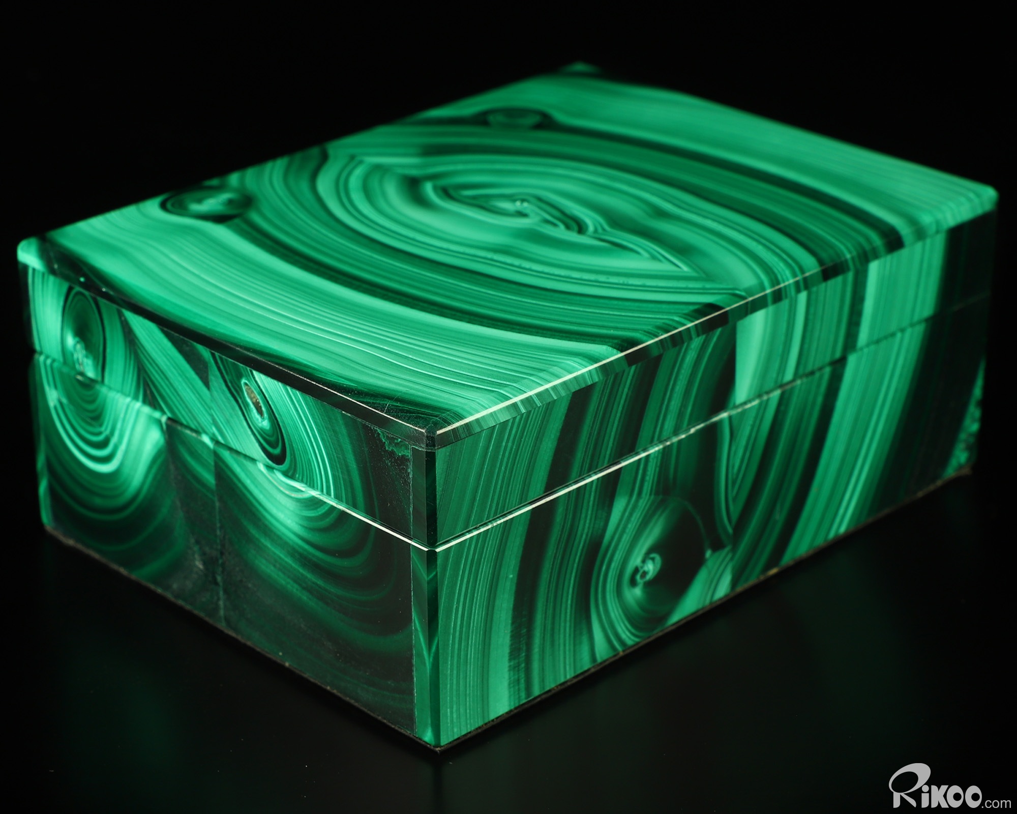 You are looking at a Malachite box. The sculpture is 4.2 inches long.