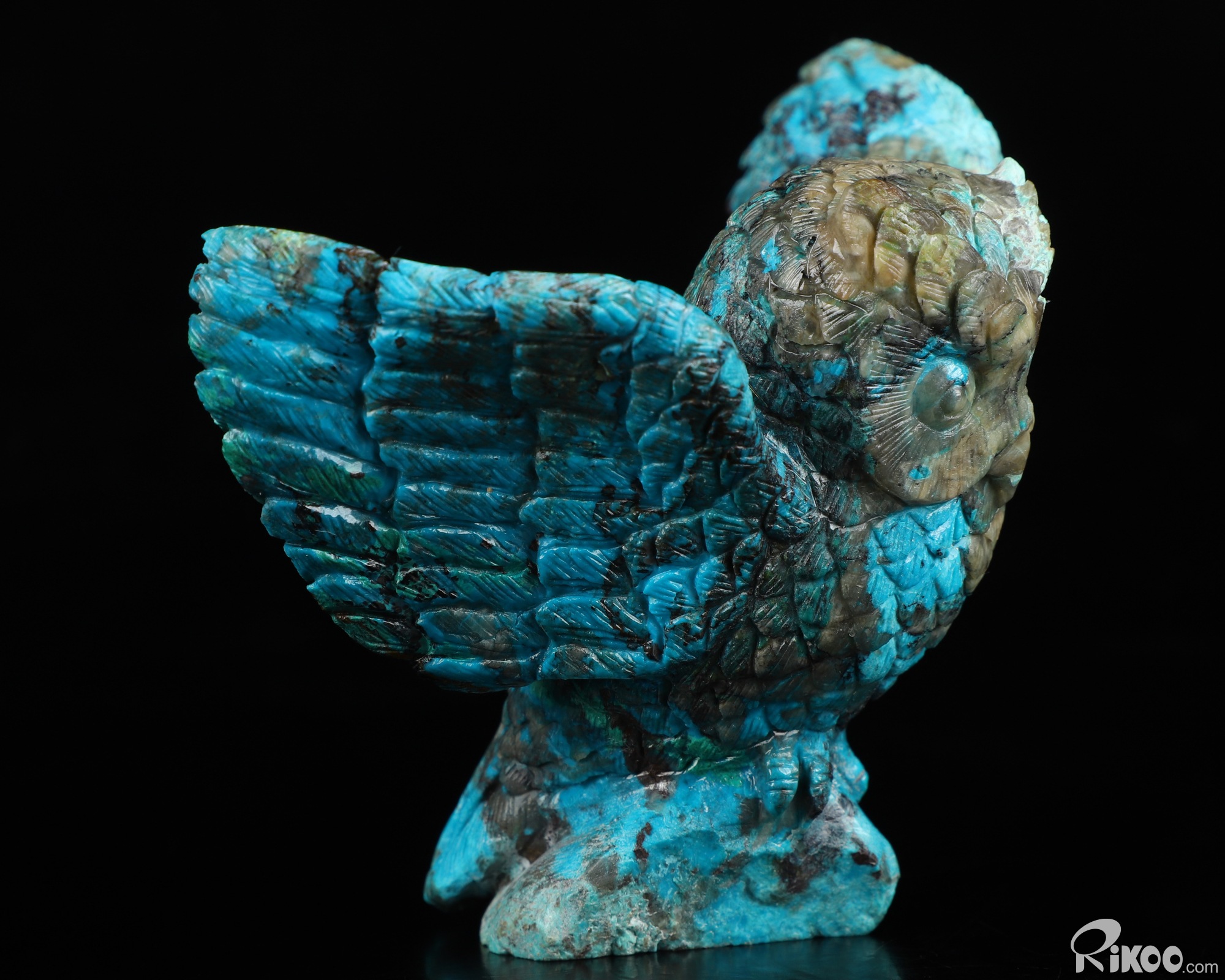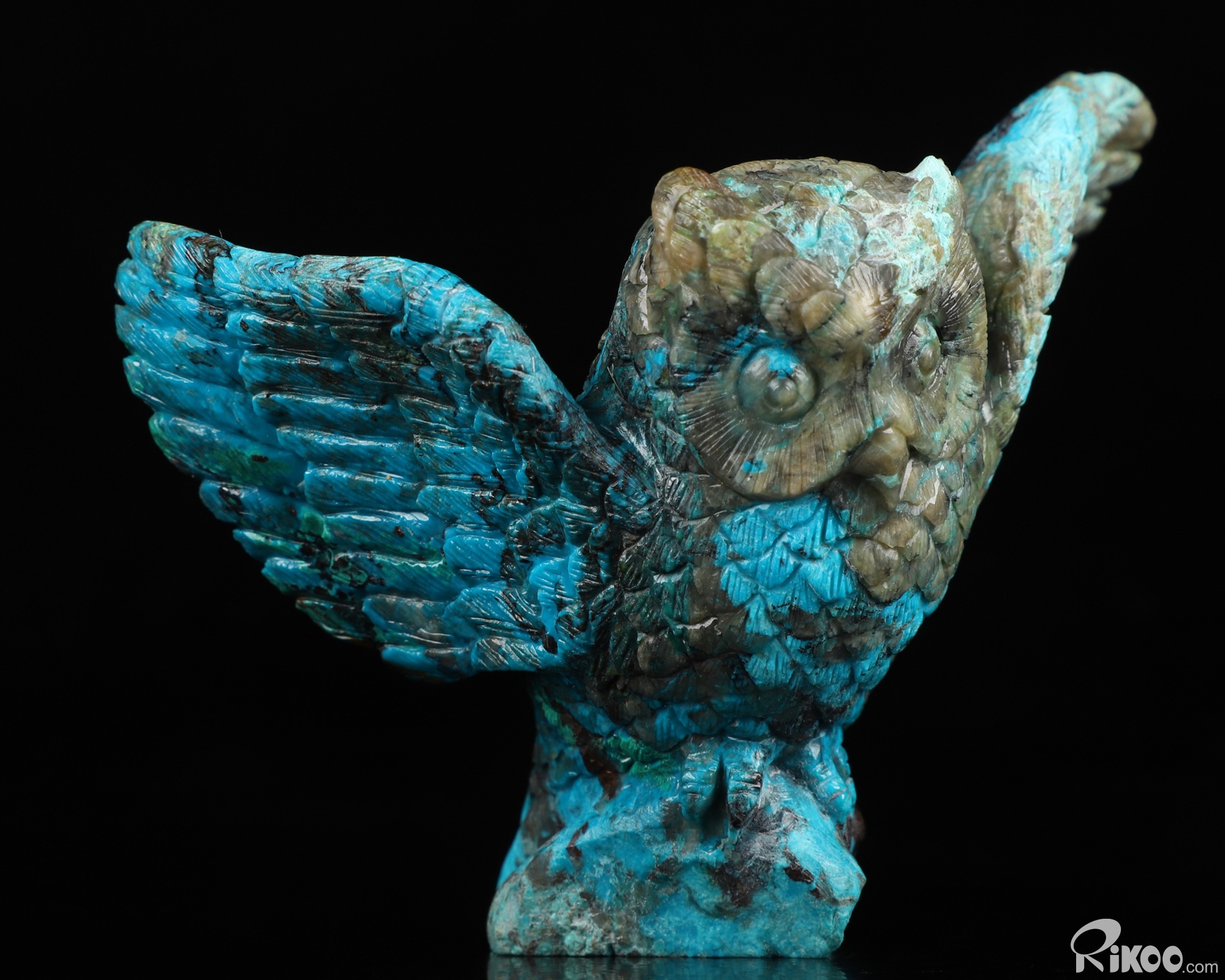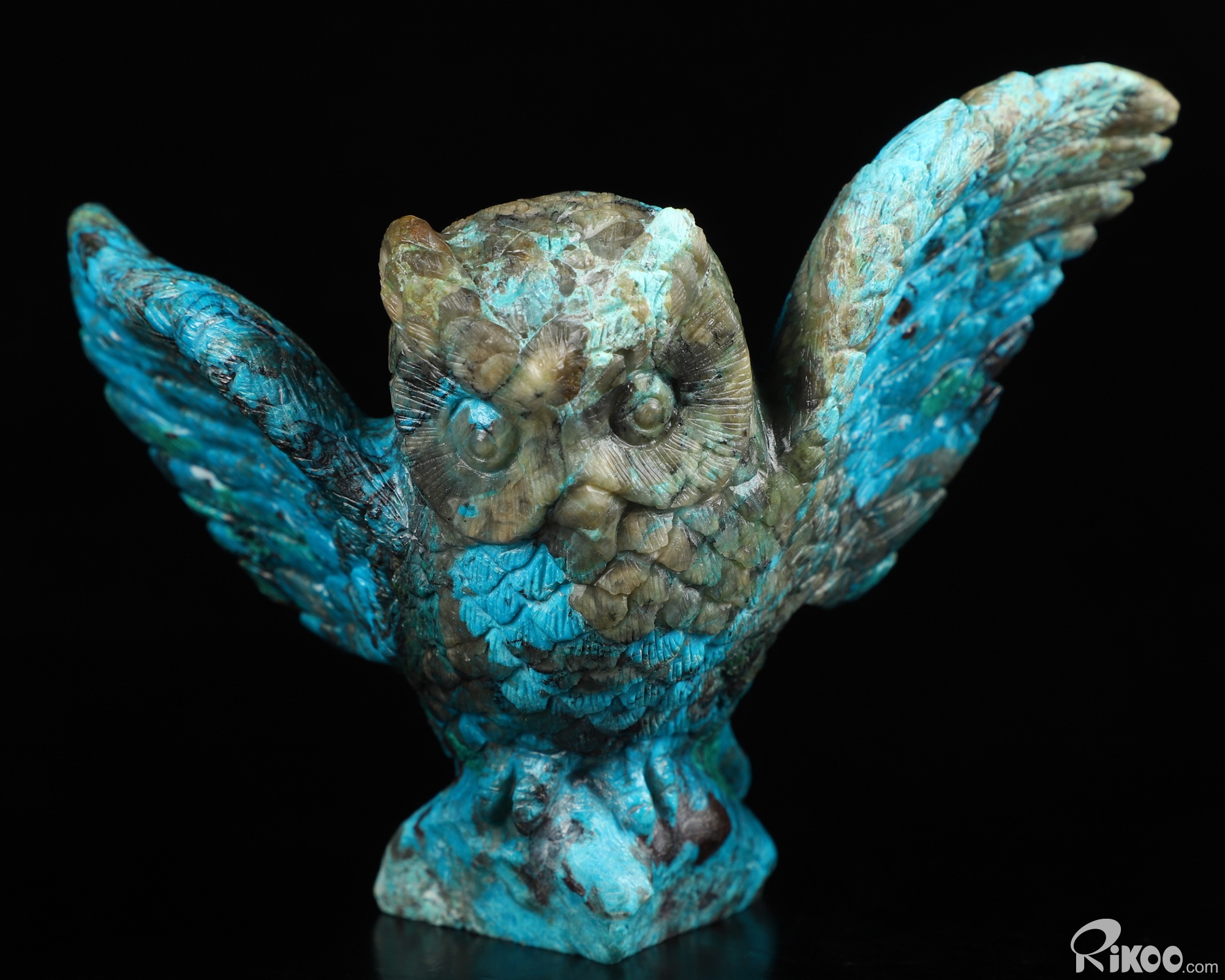Gemstone 4.3" American Chrysocolla Carved Crystal Owl,Realistic, Crystal Healing