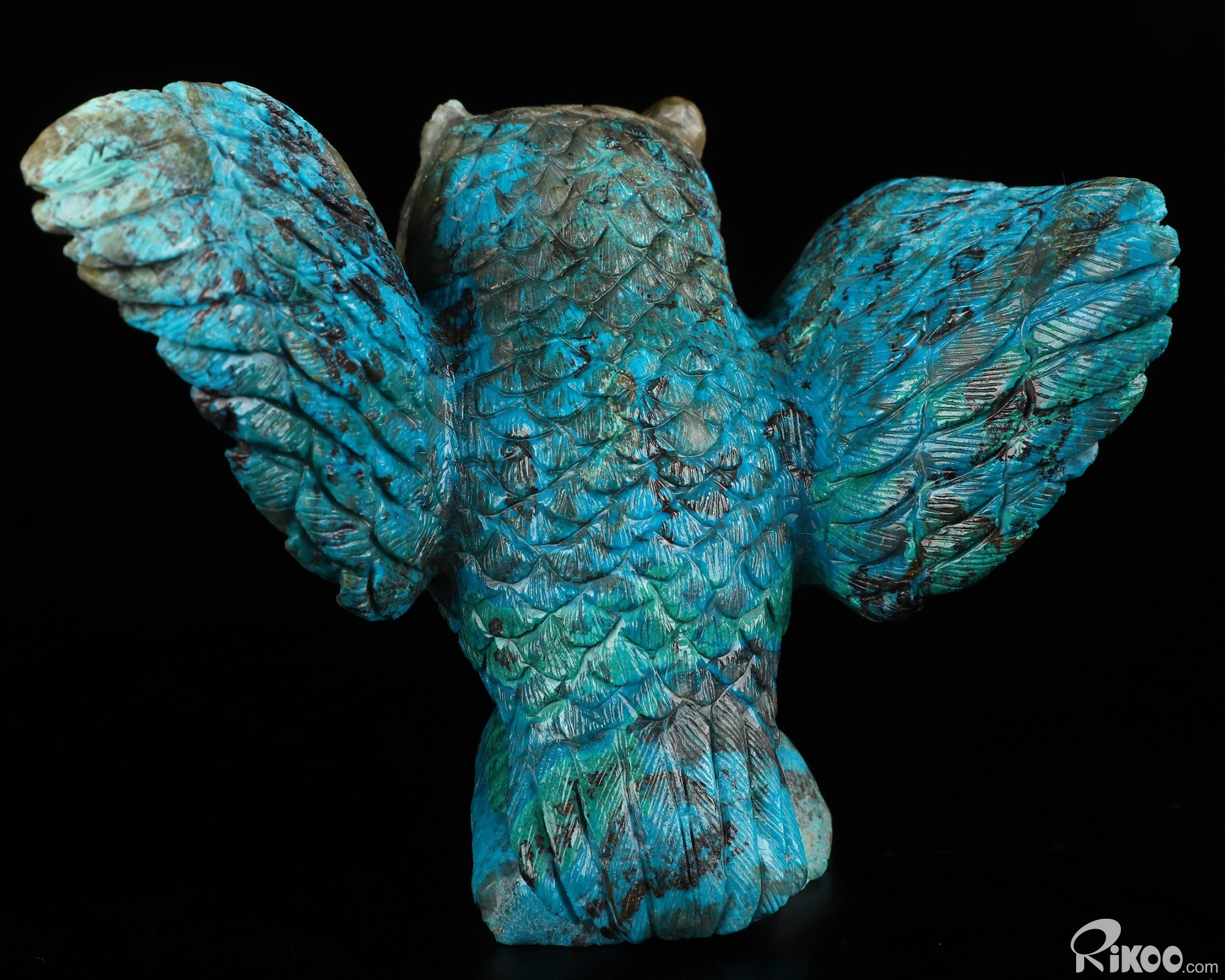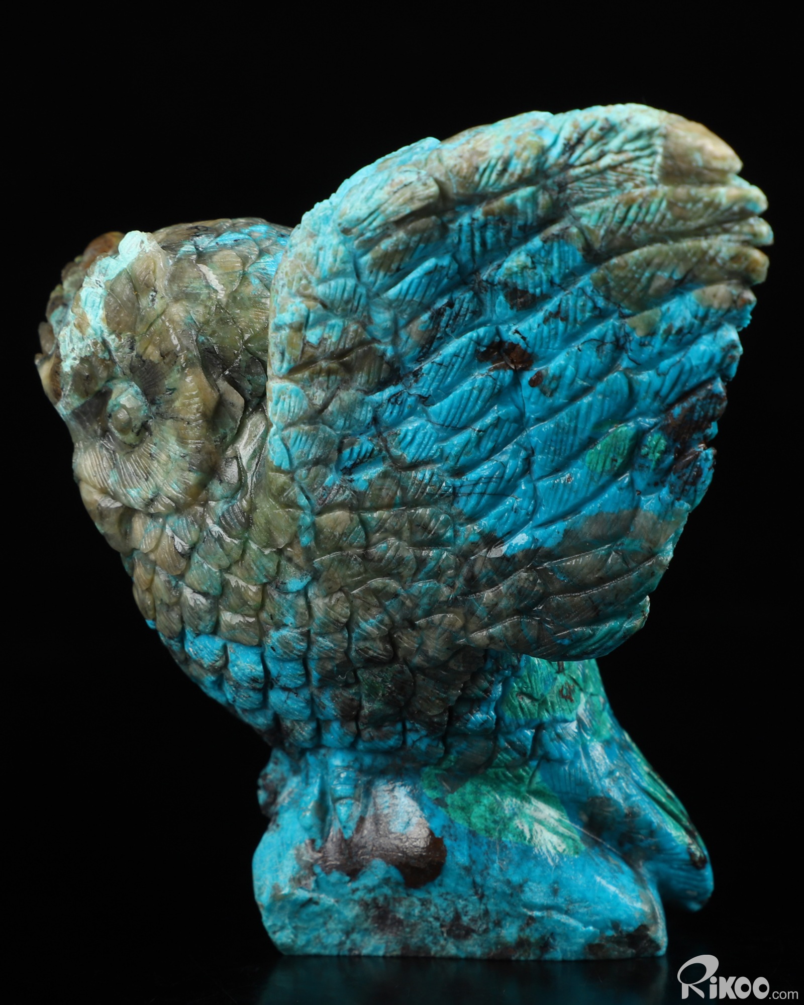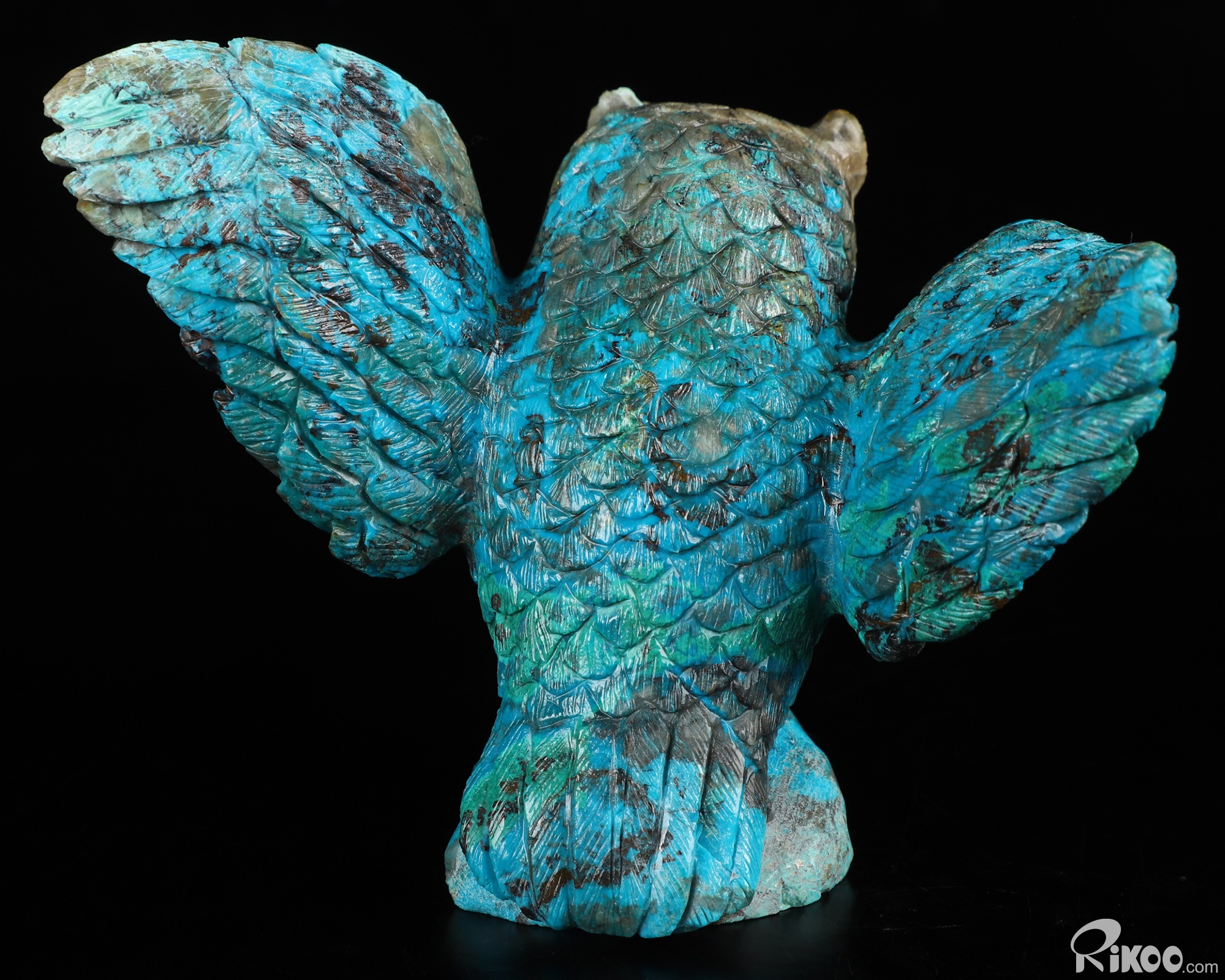 Gemstone 4.3" American Chrysocolla Carved Crystal Owl,Realistic, Crystal Healing