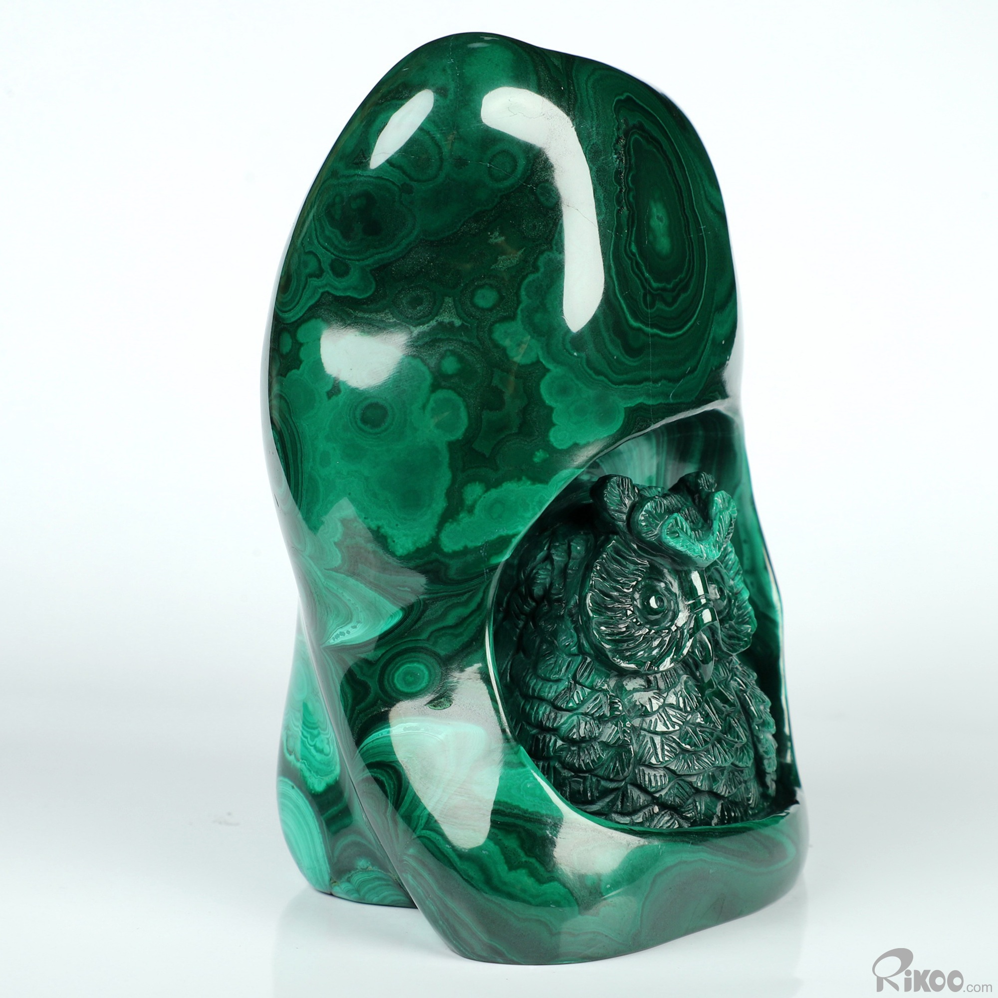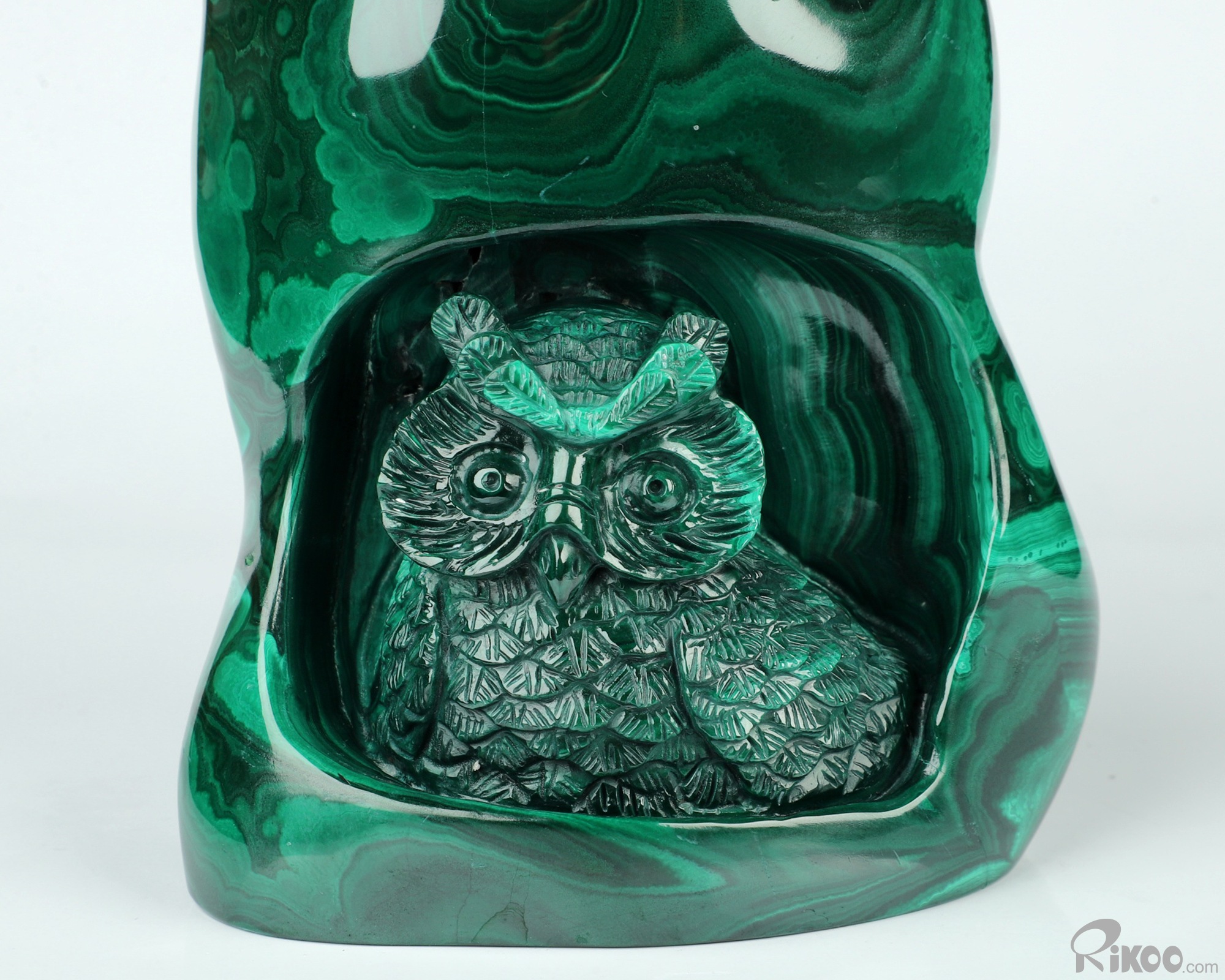You are looking at a Malachite owl sculpture. The sculpture is 4.5 inches long.