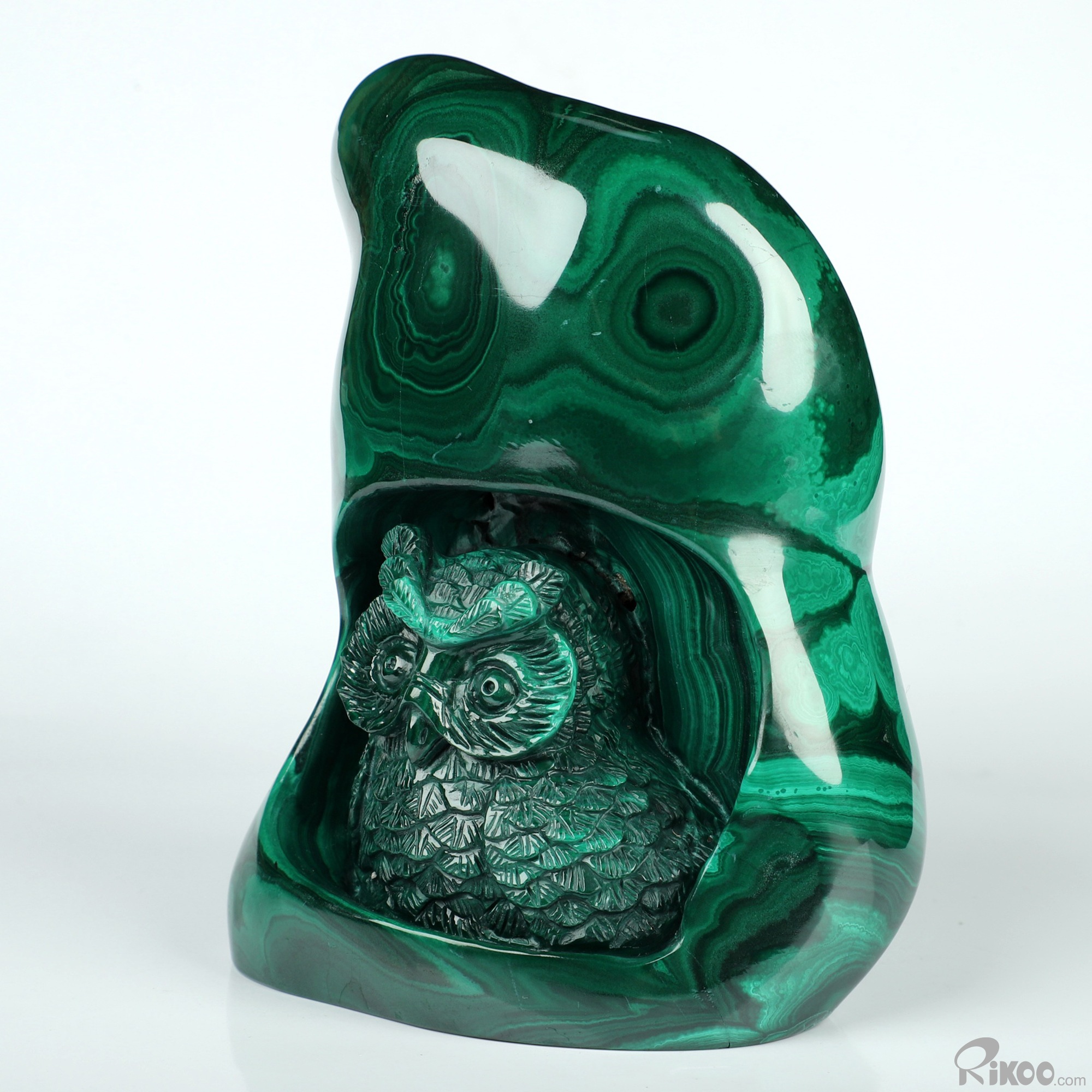 Gemstone 4.5" Malachite Hand Carved Crystal Owl Sculpture, Crystal Healing