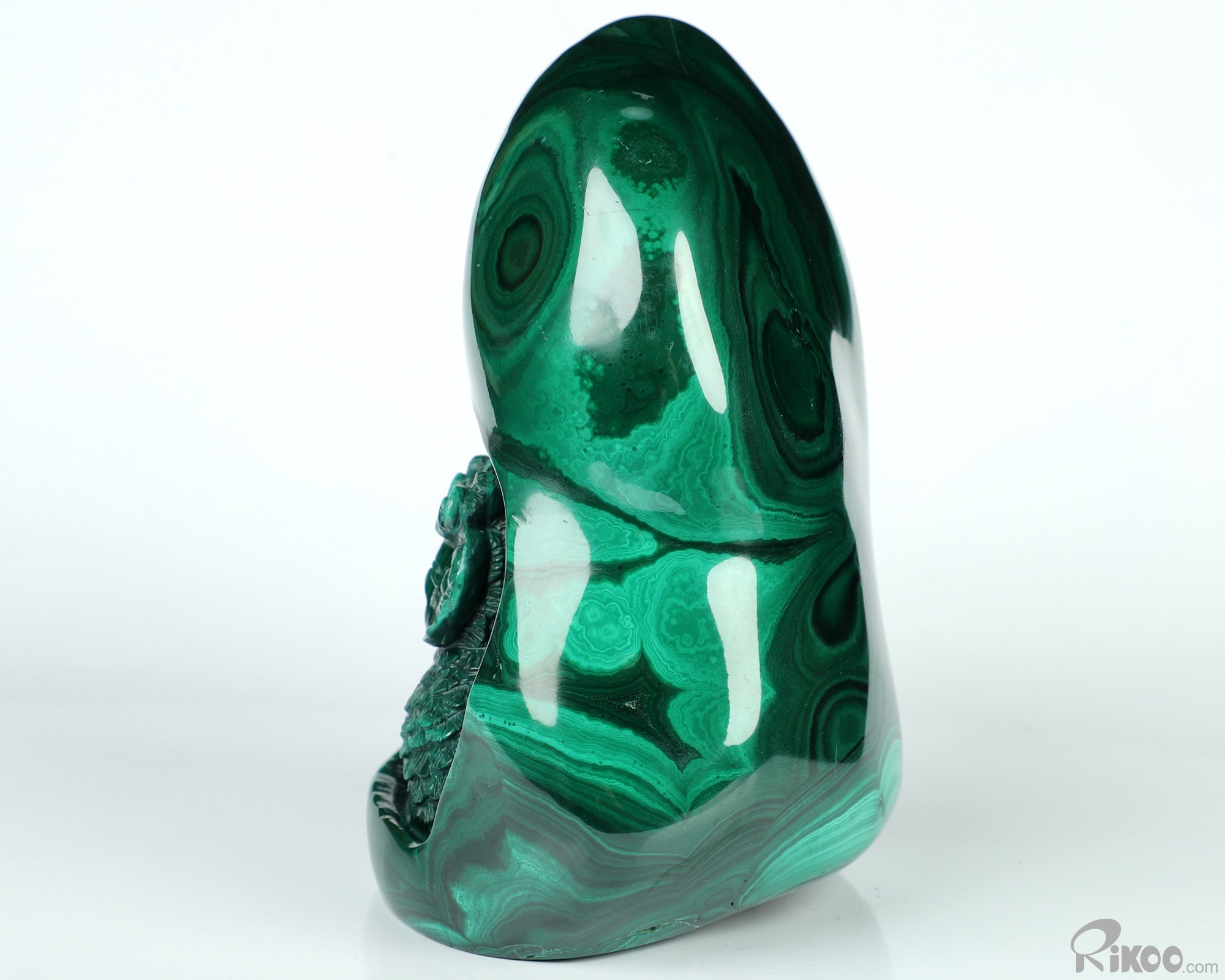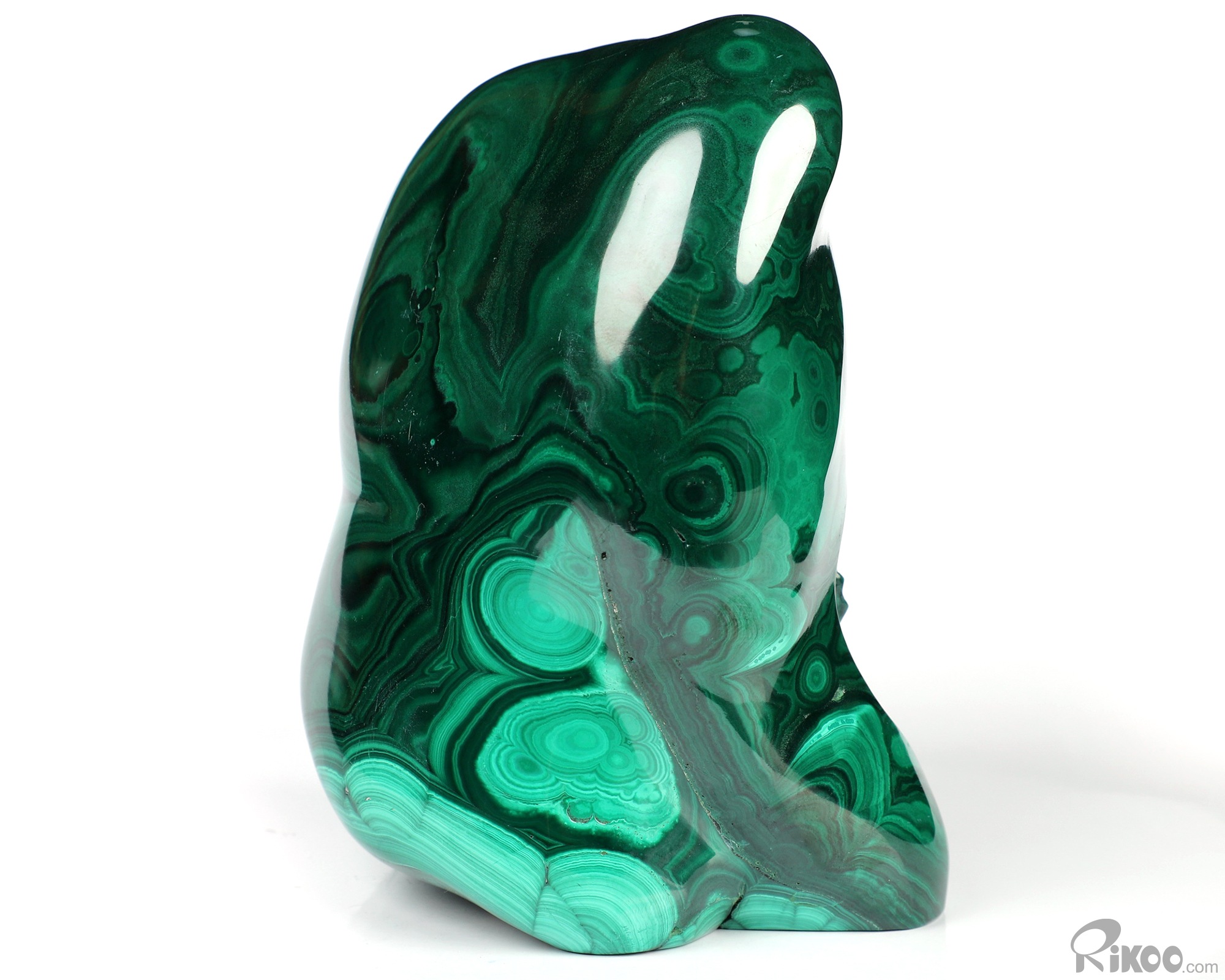 Steady pulsing electromagnetic energy. (High copper content) Malachite and azurite are the same chemical, practically, Copper Carbonate. The only difference is the ordering of the elements in the molecule. On brow: Stimulates physical and psychic vision, concentration. For heart and solar plexus centers: Stomach, liver, kidney stones, lungs, immune system, radiation, MS, circulation. Powerful healer with azurite or chrysocolla for healing: Releases and draws out pain, inflammation, depression, anger; heals blocks. Protects well by powerfully cleaning the auric field, rapidly absorbing undesirable energies, including: computer, TV, and other radiation, etc. Place in the 4 corners of a room to cleanse carpet toxins/gases. Clean very frequently -- daily if possible! . Often variegated and is one of the basic ores of Copper. Should be used with extreme care because it can amplify negative qualities. Caution must always be used when wearing it as jewelry. However, Malachite also magnifies the positive, and so it is useful if your mood is definitely on the upswing. It should not be used in healing without careful consideration of who is doing the healing. It is useful for relaxation and neurological disorders as well as tissue regeneration. It is said to awaken healing qualities and useful in fighting mental illnesses. Said to stimulate the optic nerve, help the pancreas, spleen, parathyroid, and help dyslexia. People living near nuclear power plants should keep pieces of Malachite in their homes, since Malachite may expel plutonium. A warning: Malachite in raw form has dust particles that are highly toxic and their ingestion should be avoided.