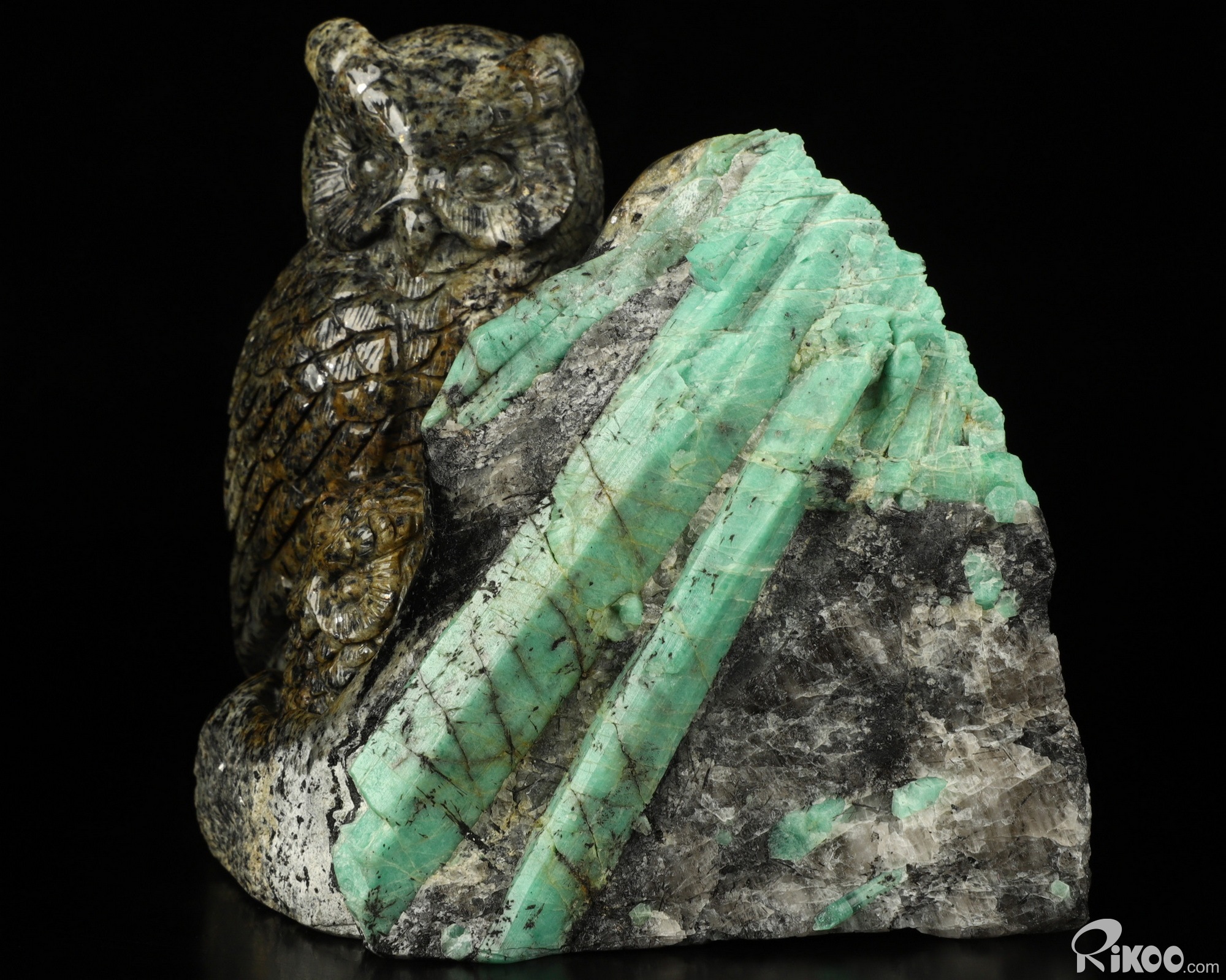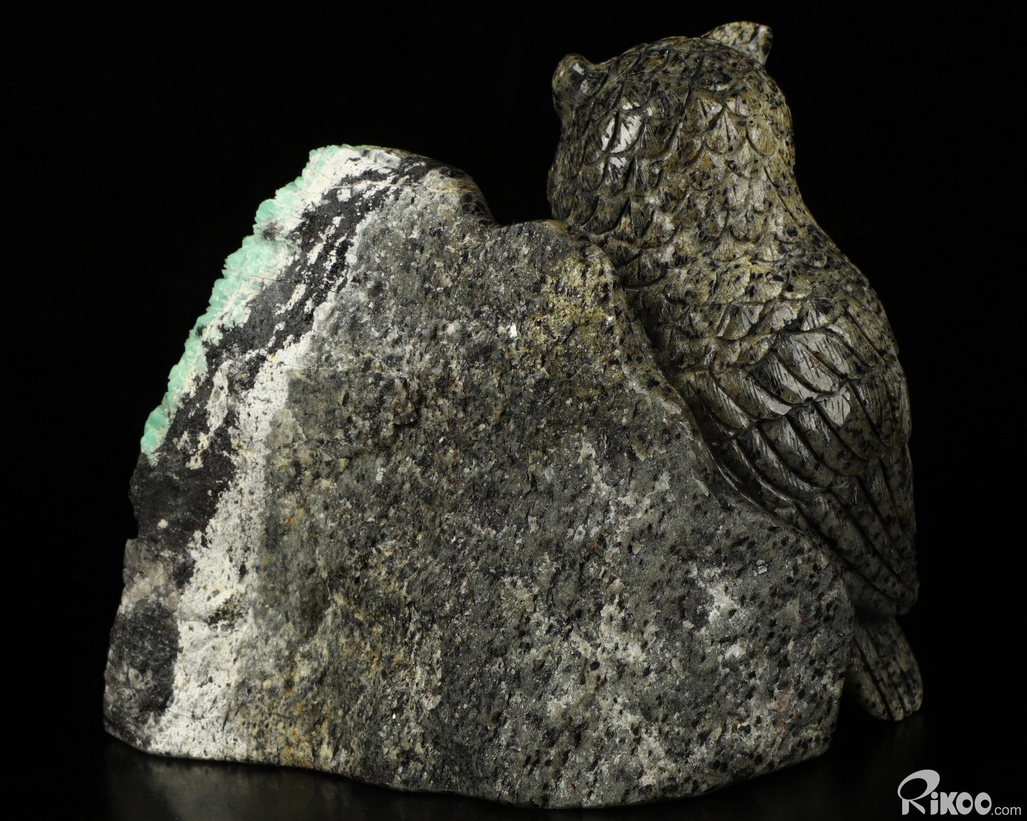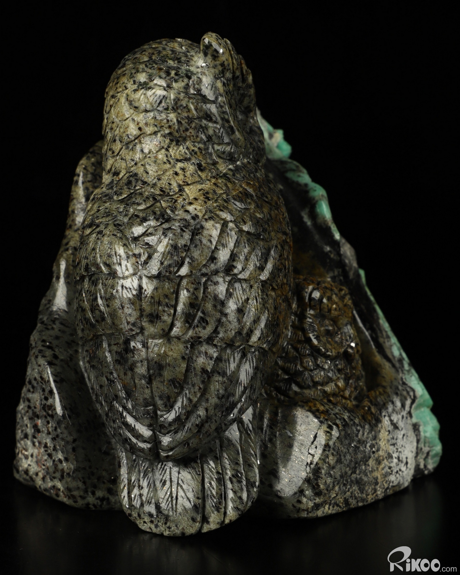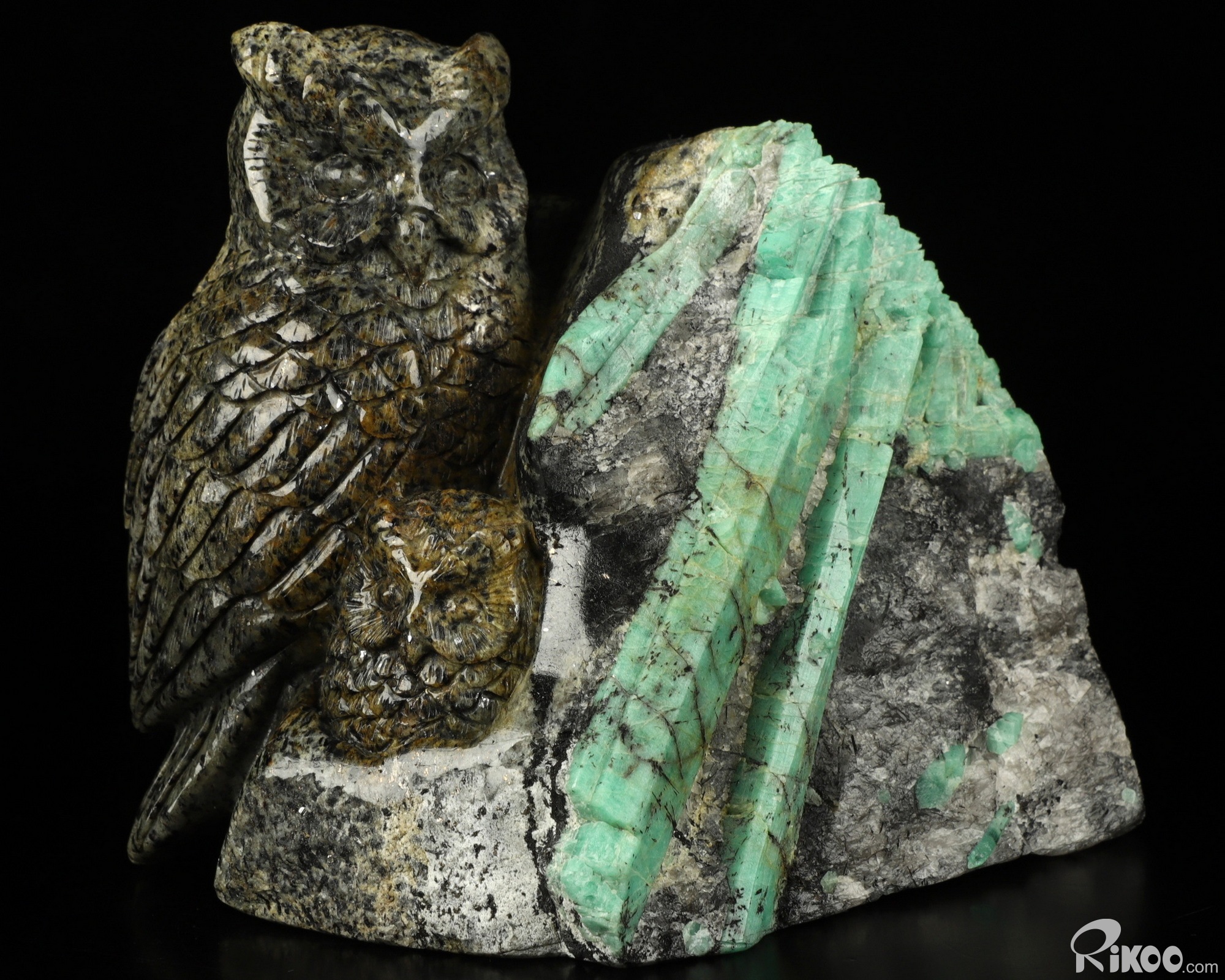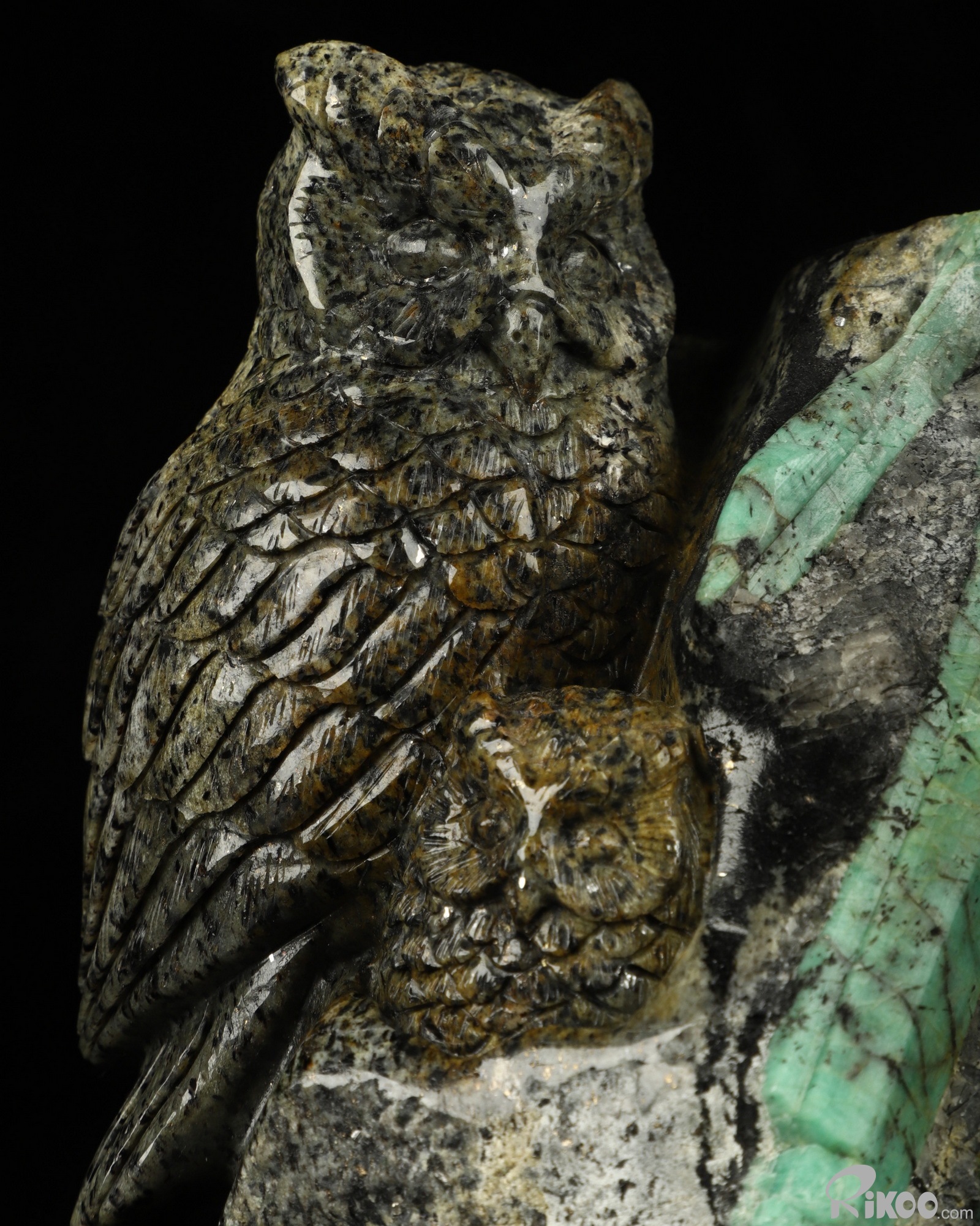 Gemstone 4.6" Emerald Hand Carved Crystal Owl Sculpture, Crystal Healing