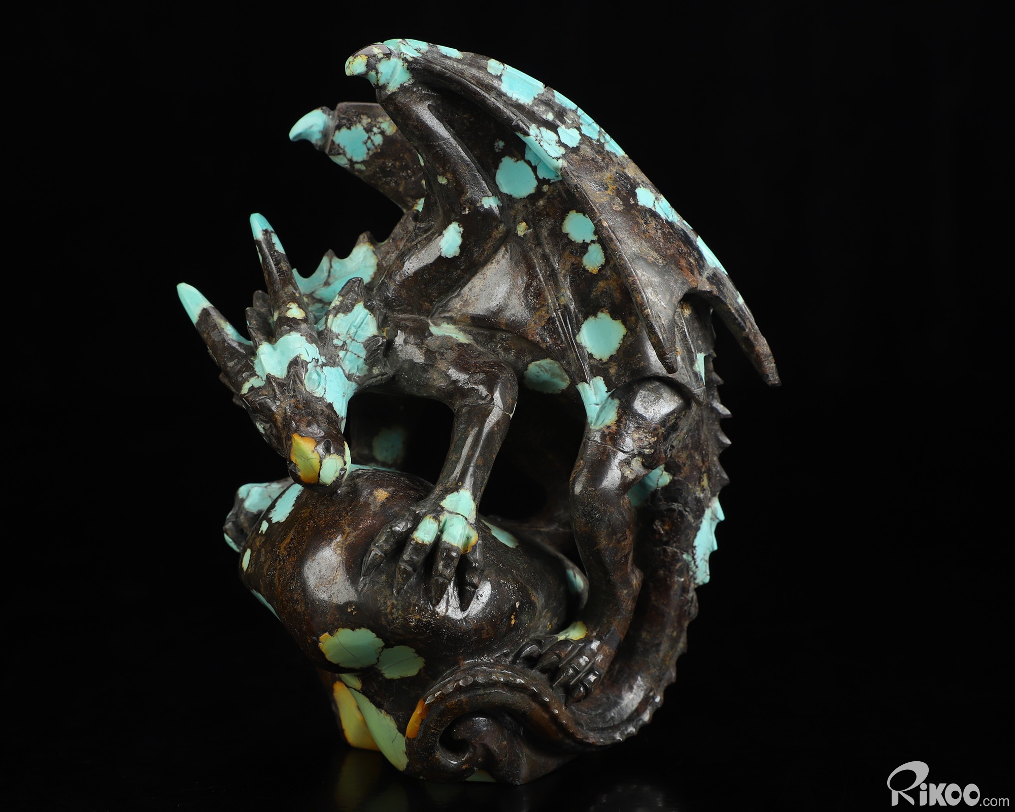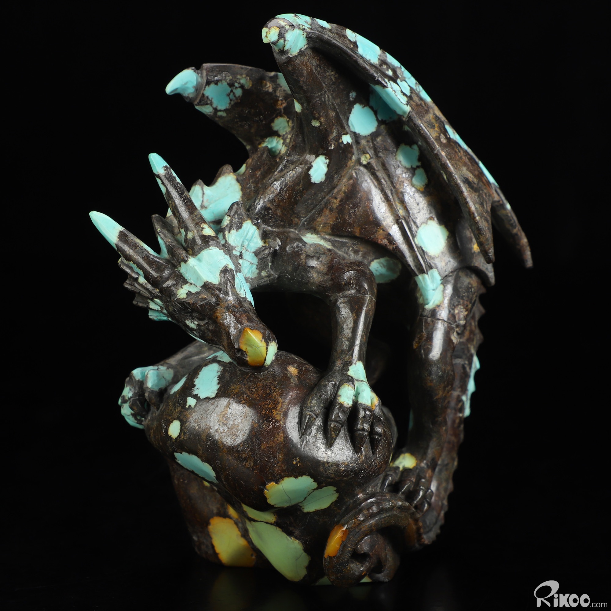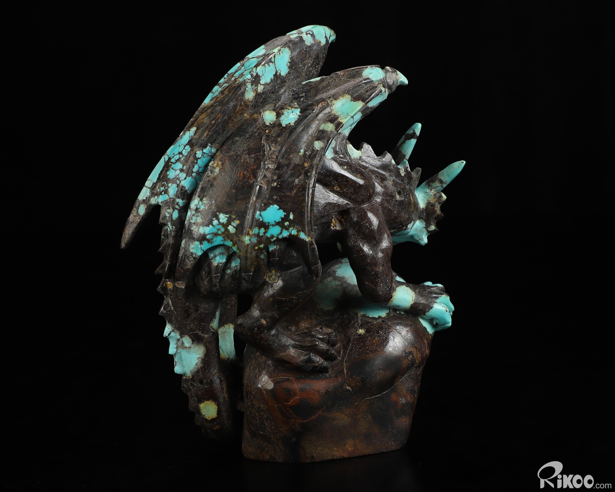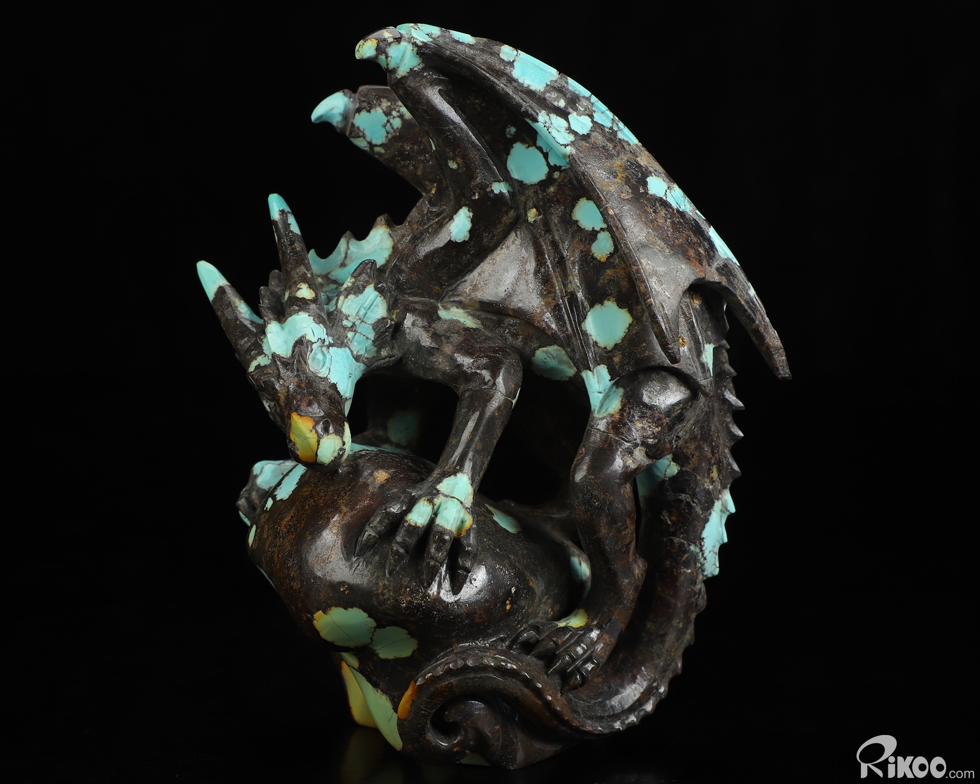 Gemstone 4.7" Turquoise Hand Carved Crystal Dragon Sculpture, Crystal Healing