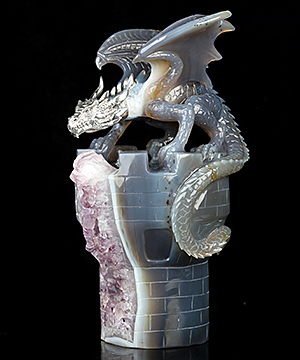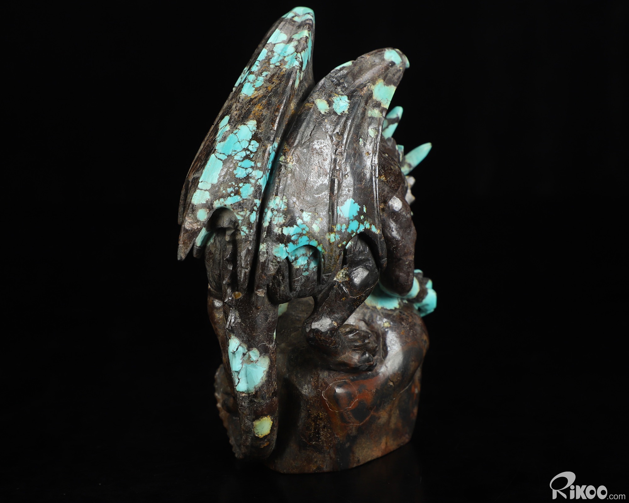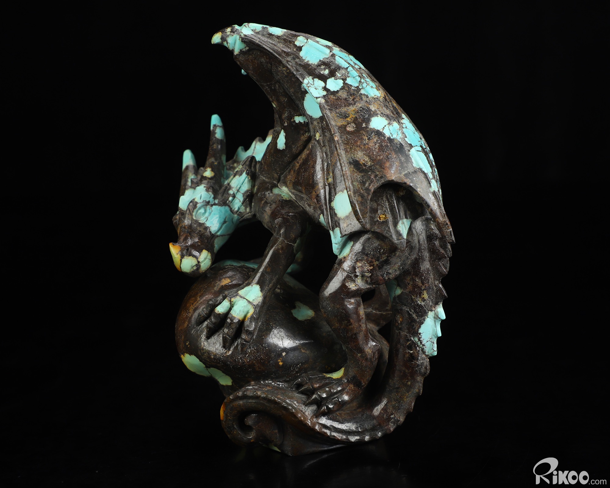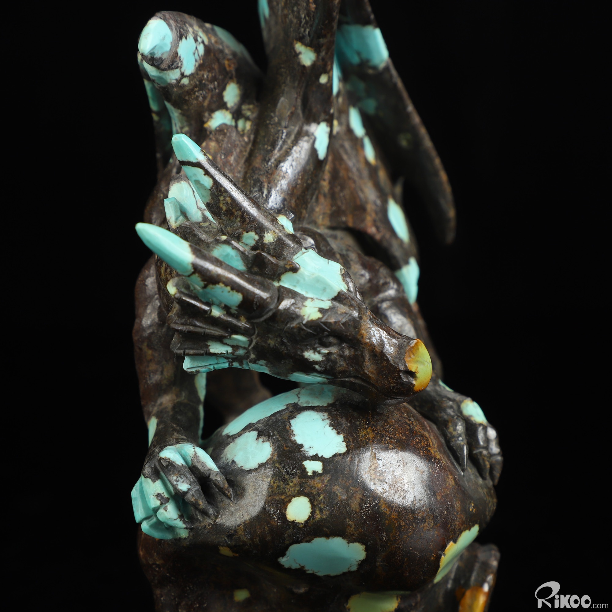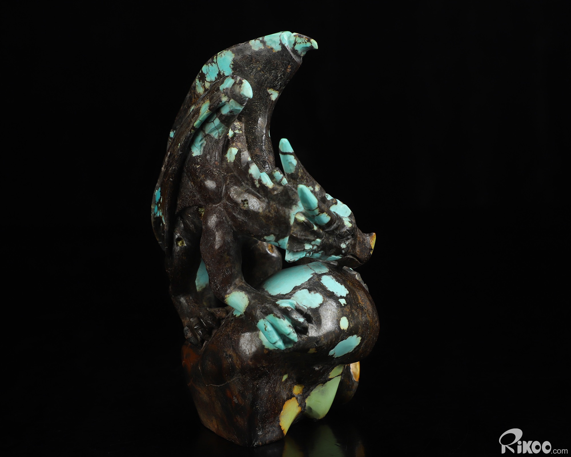 Gemstone 4.7" Turquoise Hand Carved Crystal Dragon Sculpture, Crystal Healing