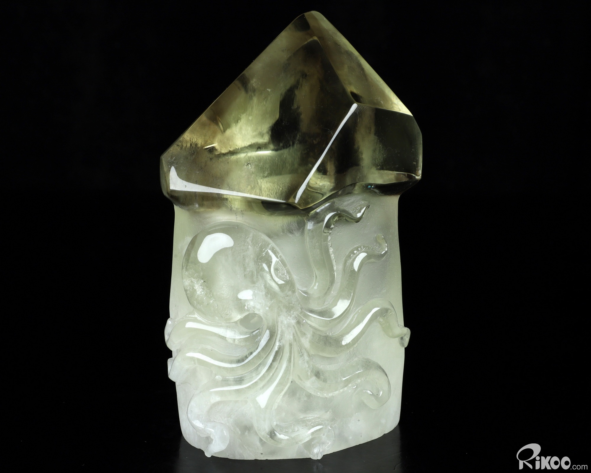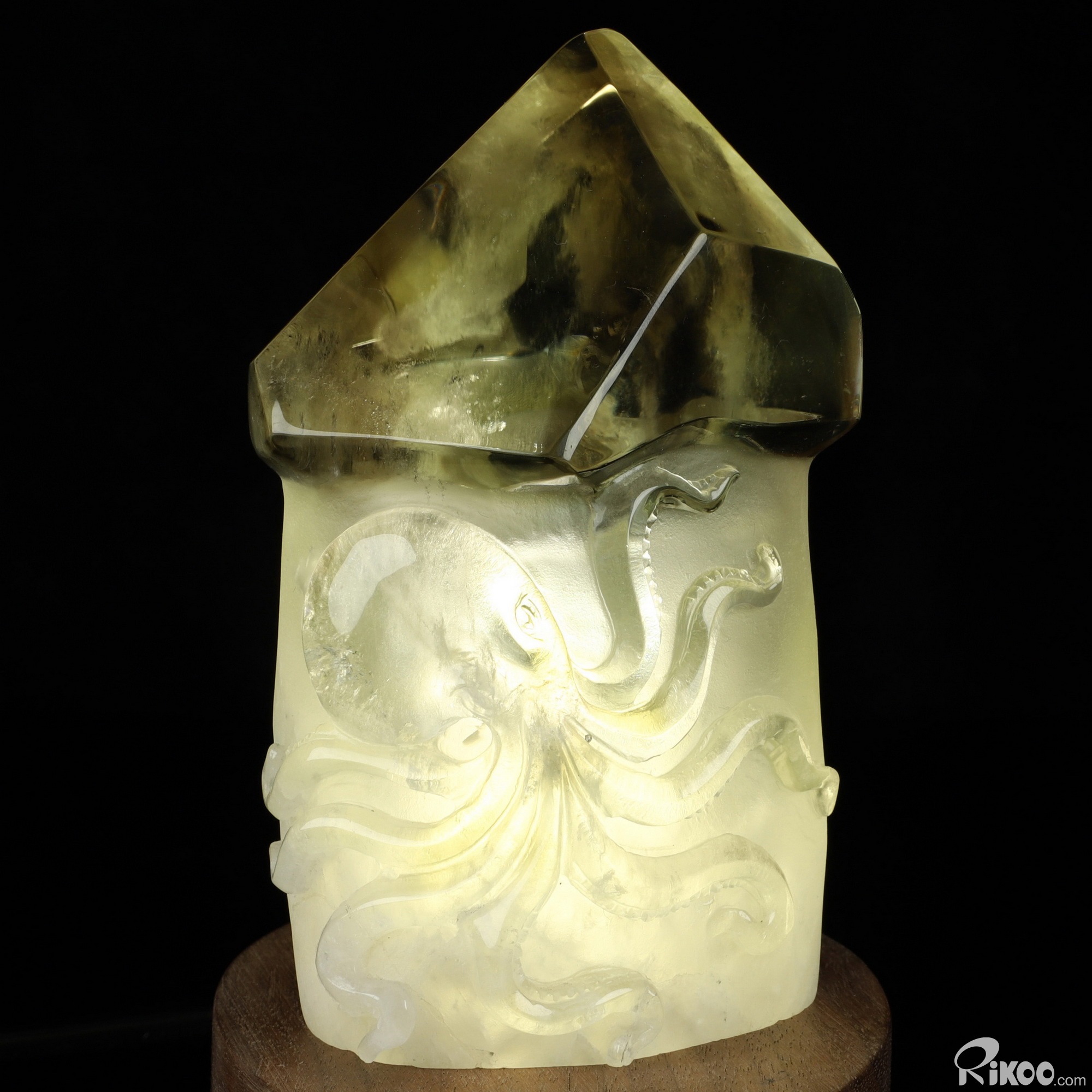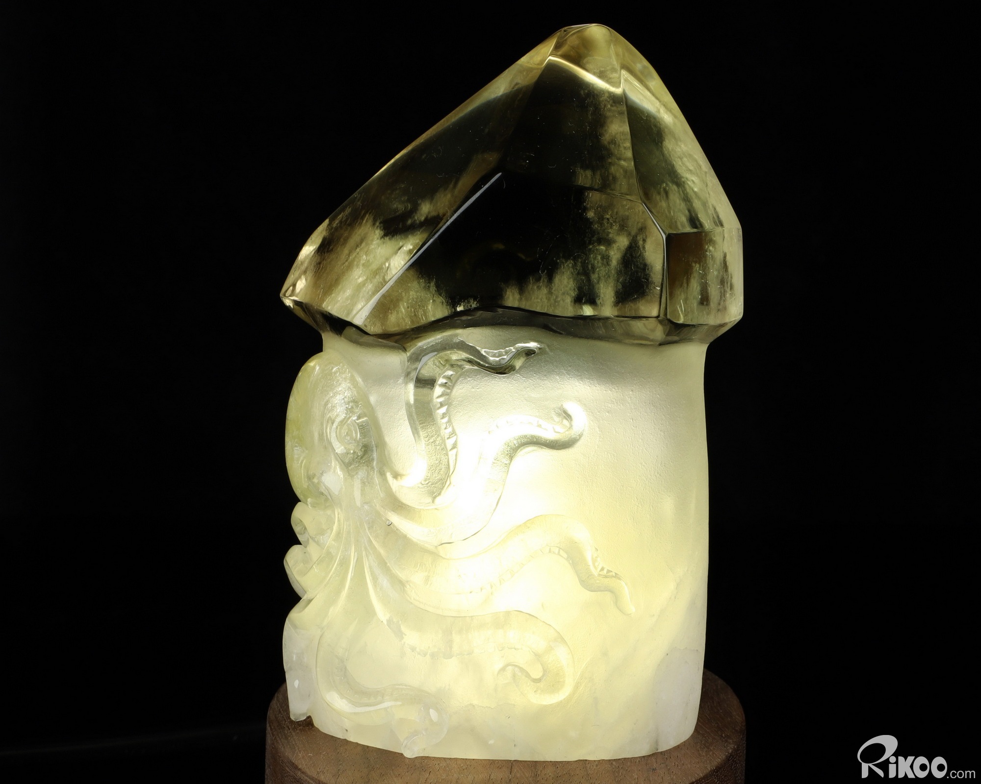 Gemstone 4.8" Citrine Hand Carved Crystal Octopus Sculpture Lamp with Led Stand, Crystal Healing