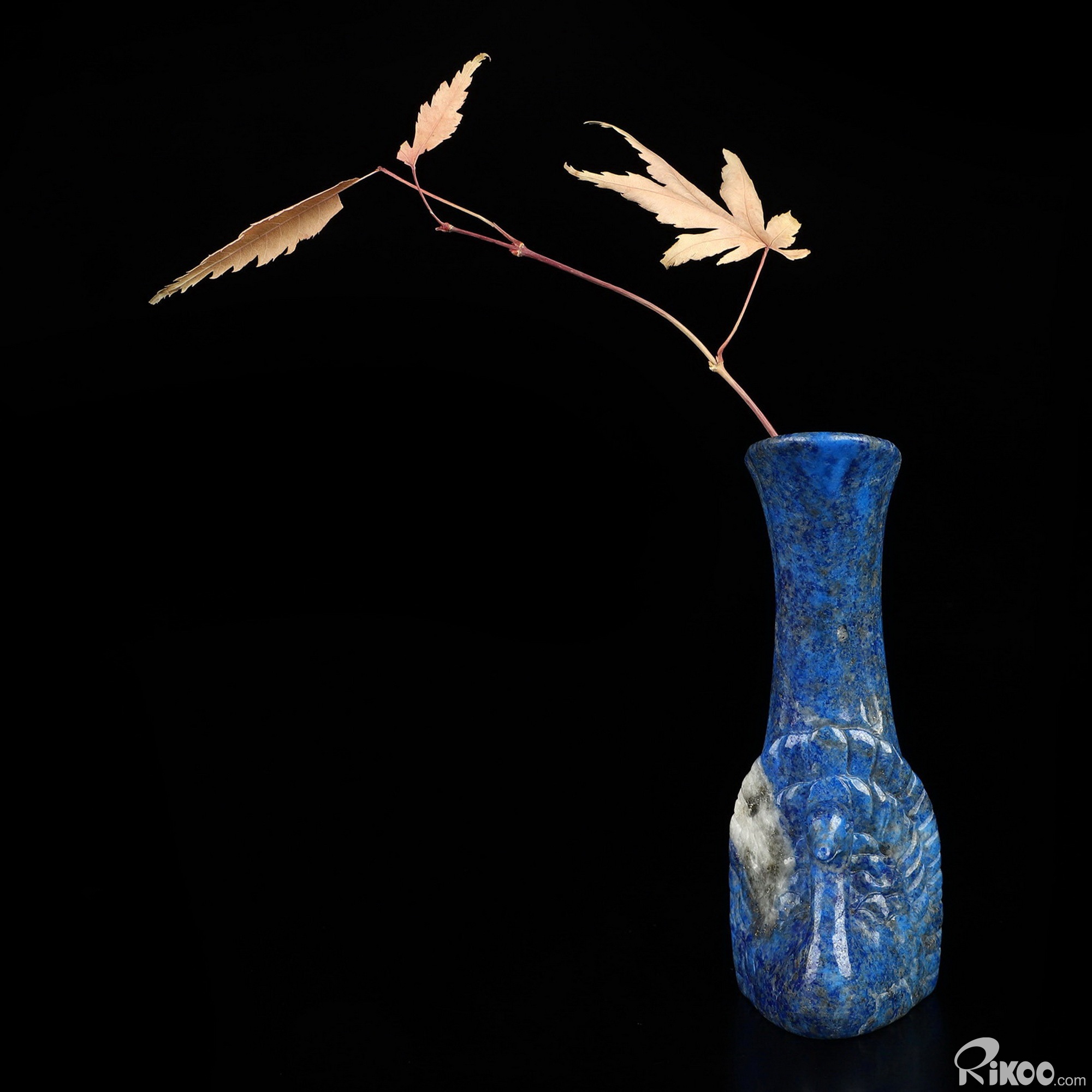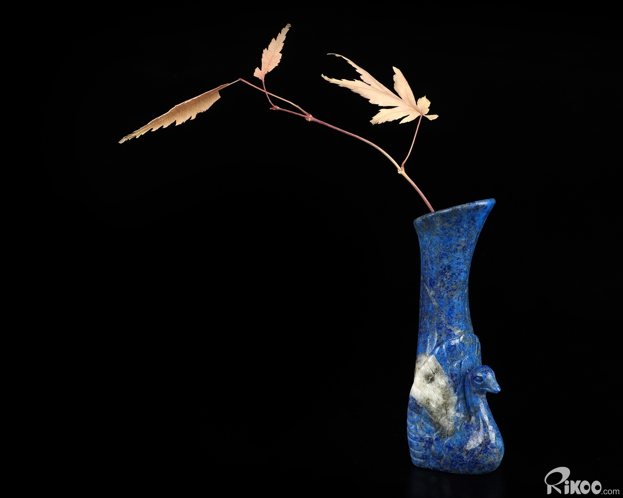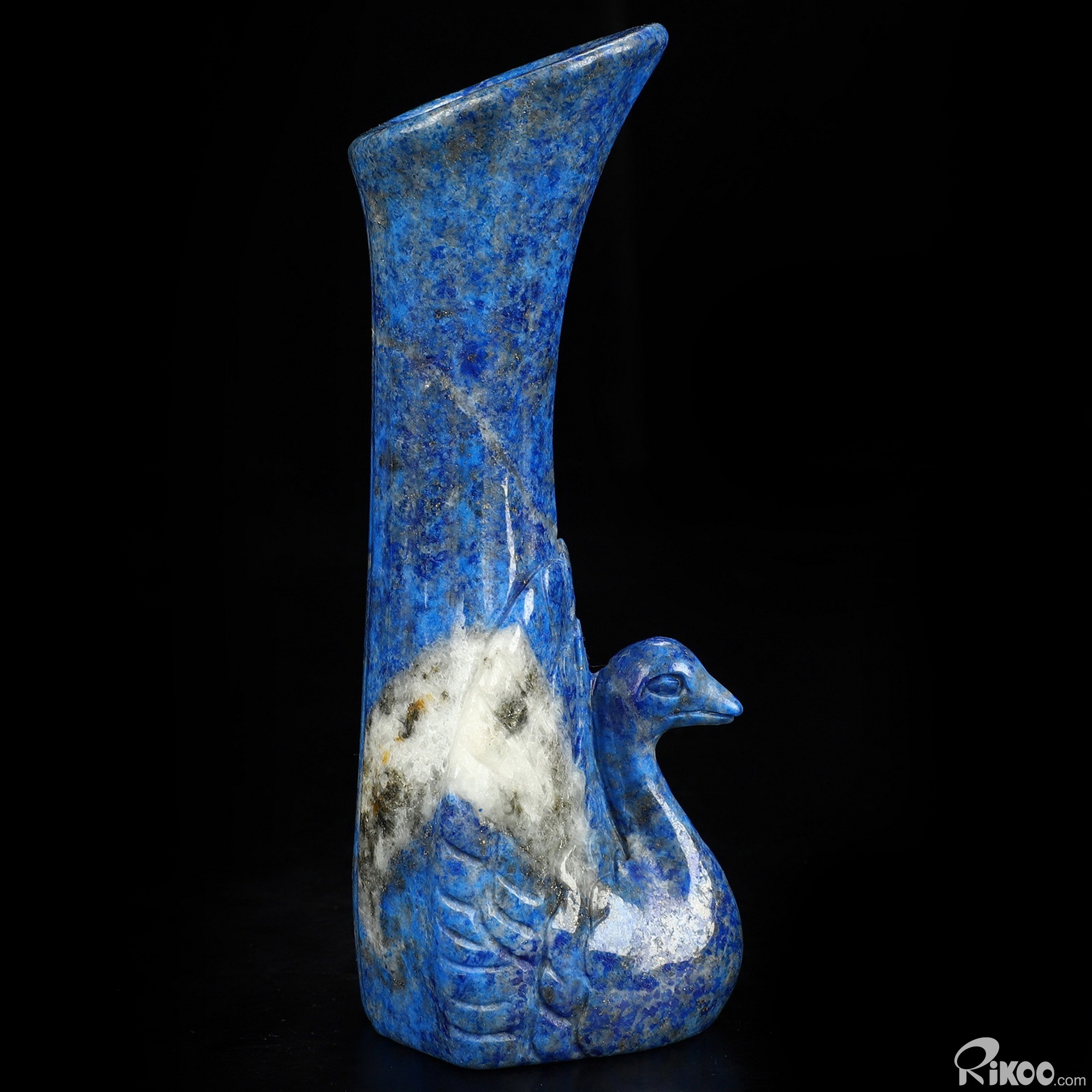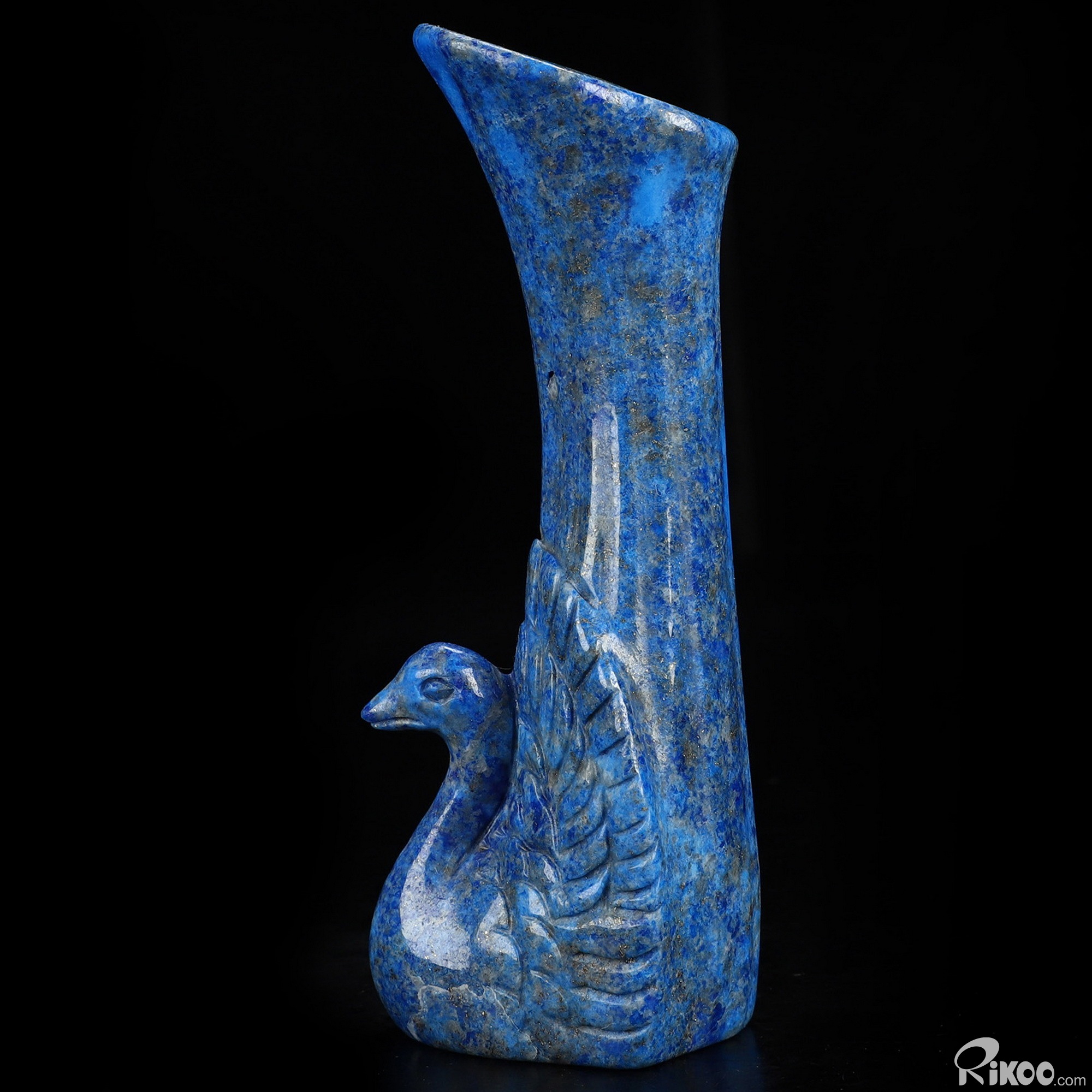 Gemstone 4.8" Lapis Lazuli Hand Carved Crystal Peacock Vase Sculpture, Crystal Healing