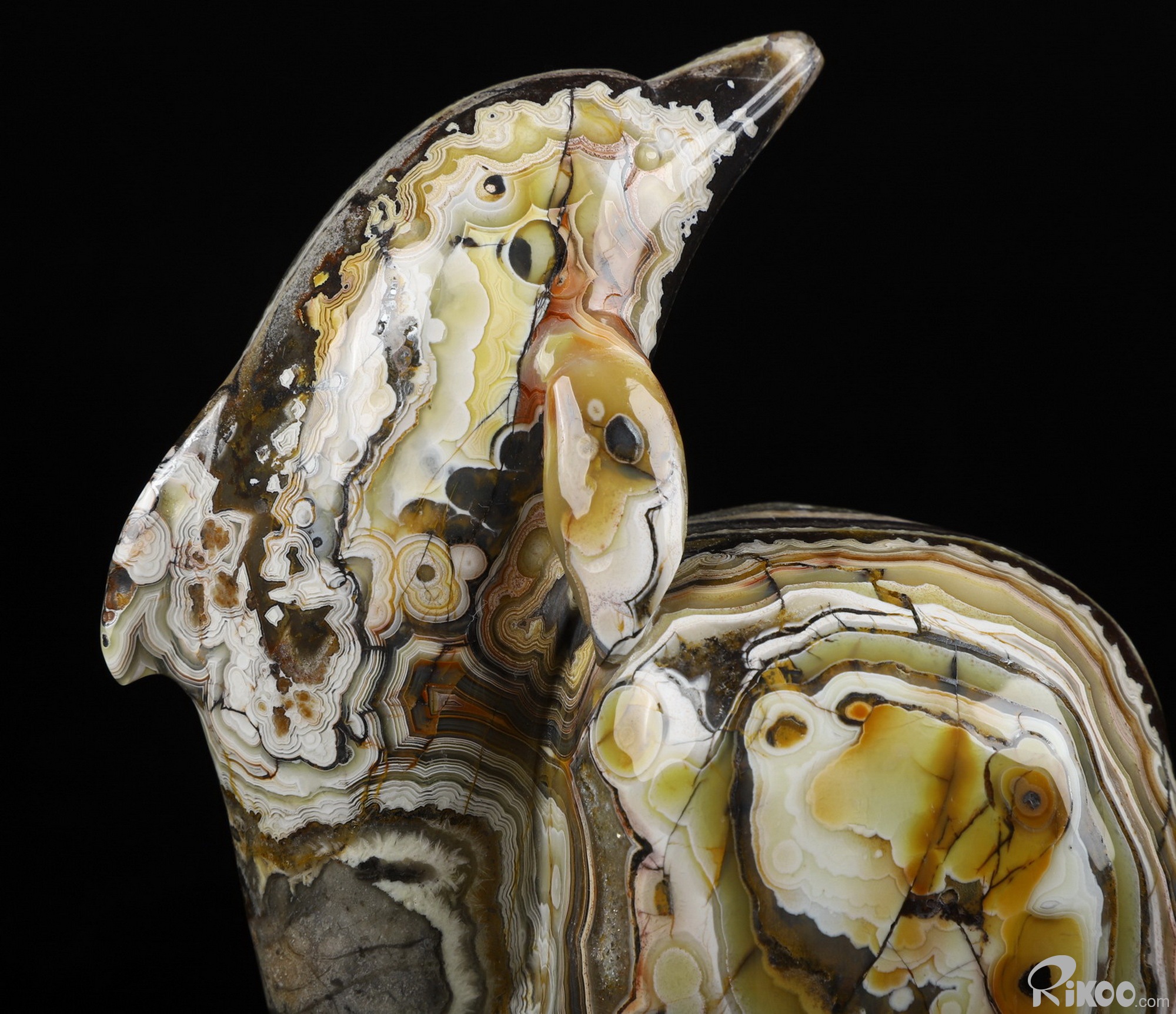 You are looking at a Red Crazy Lace Agate dolphin. The dolphin is 4.8 inches long from front to back.