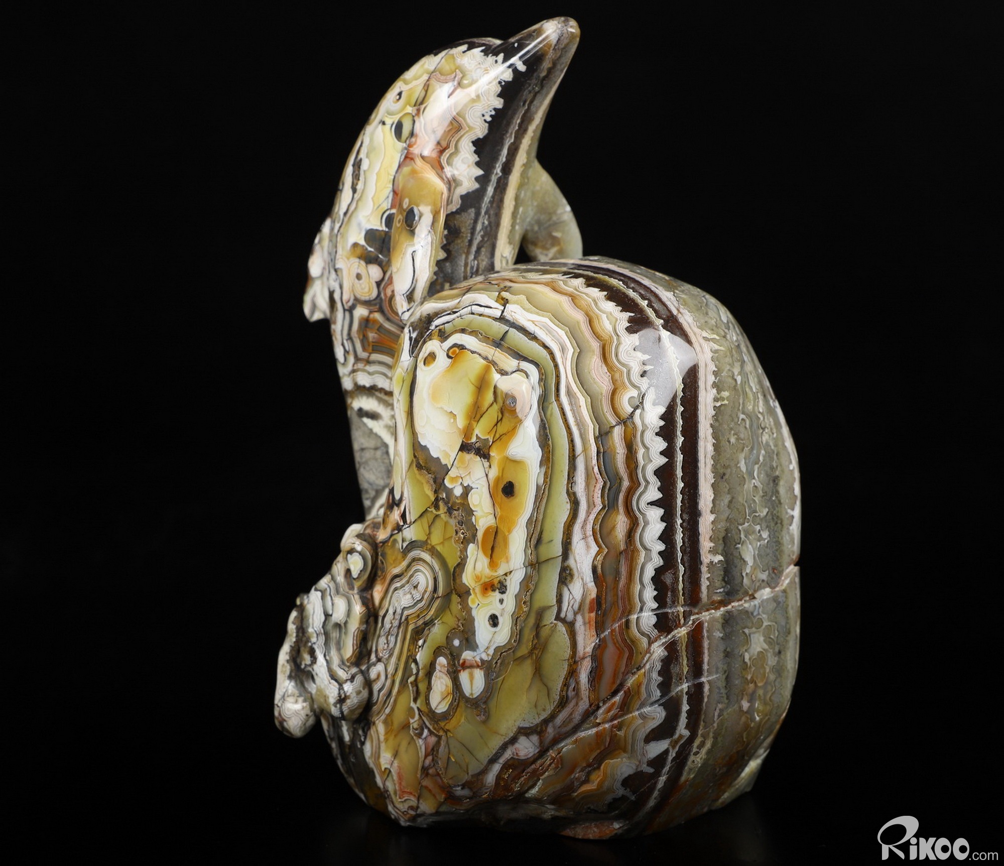 Gemstone 4.8" Red Crazy Lace Agate Hand Carved Crystal Dolphin Sculpture, Crystal Healing