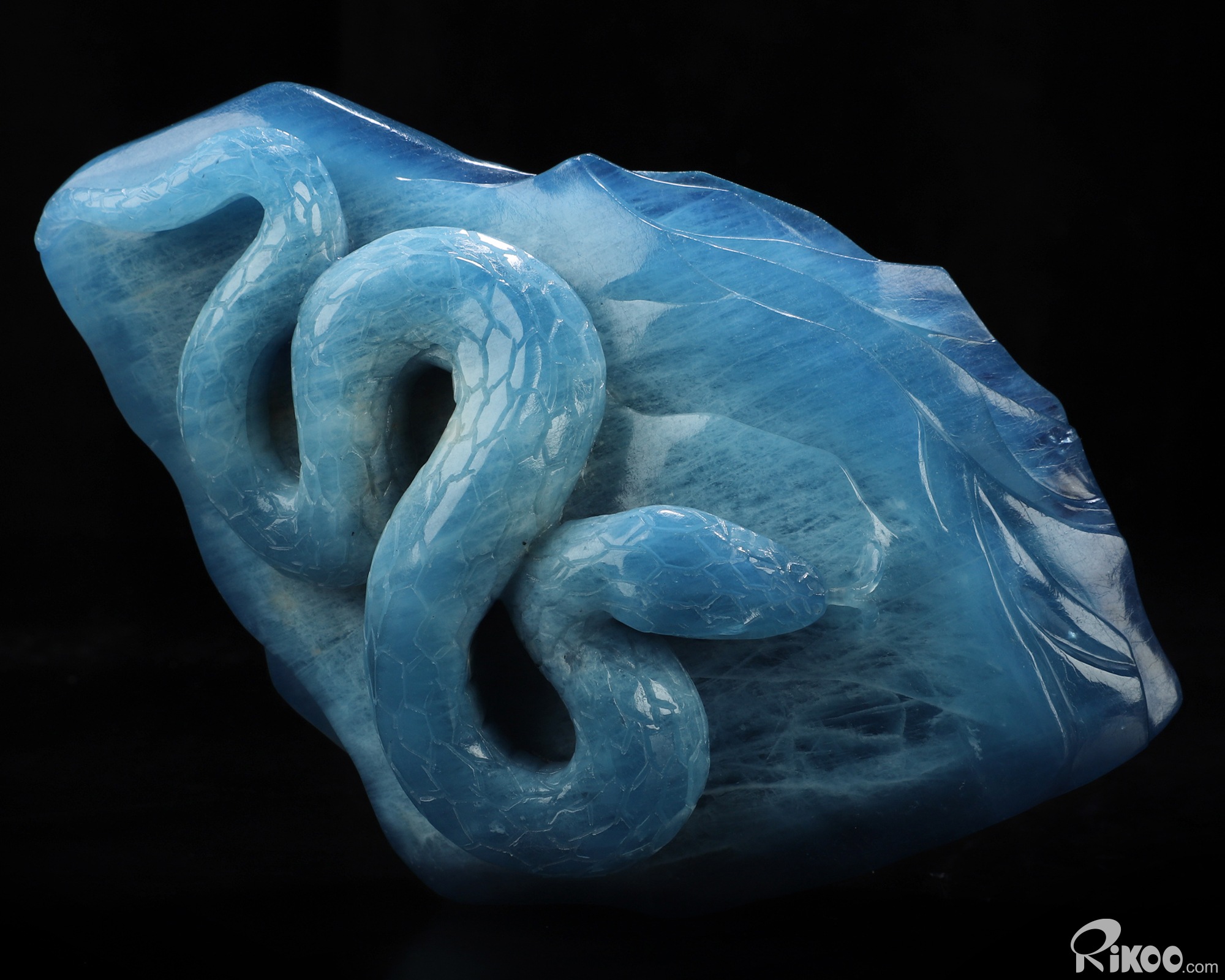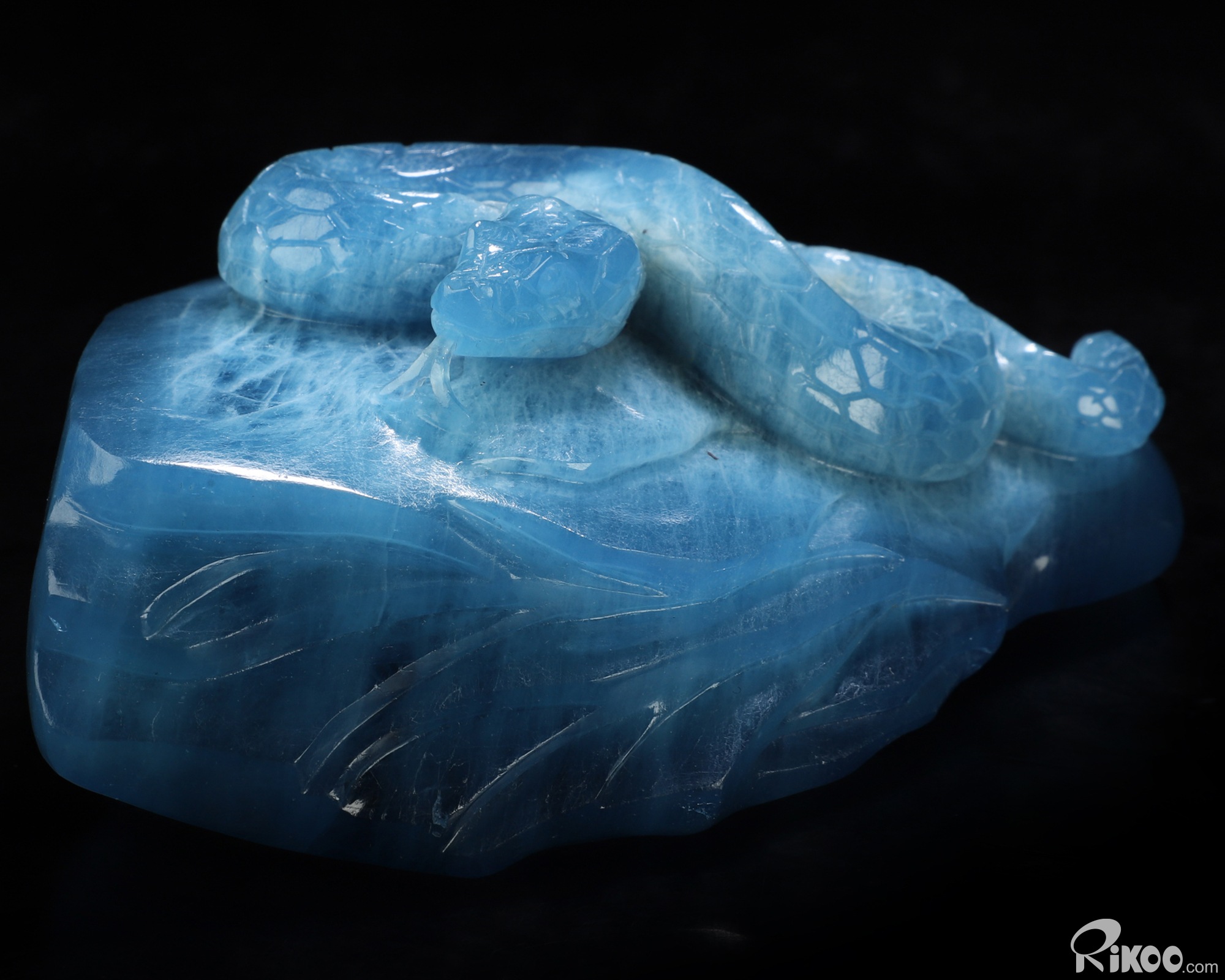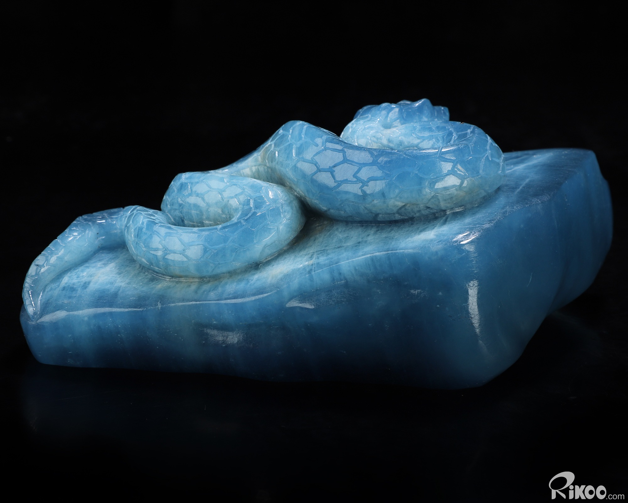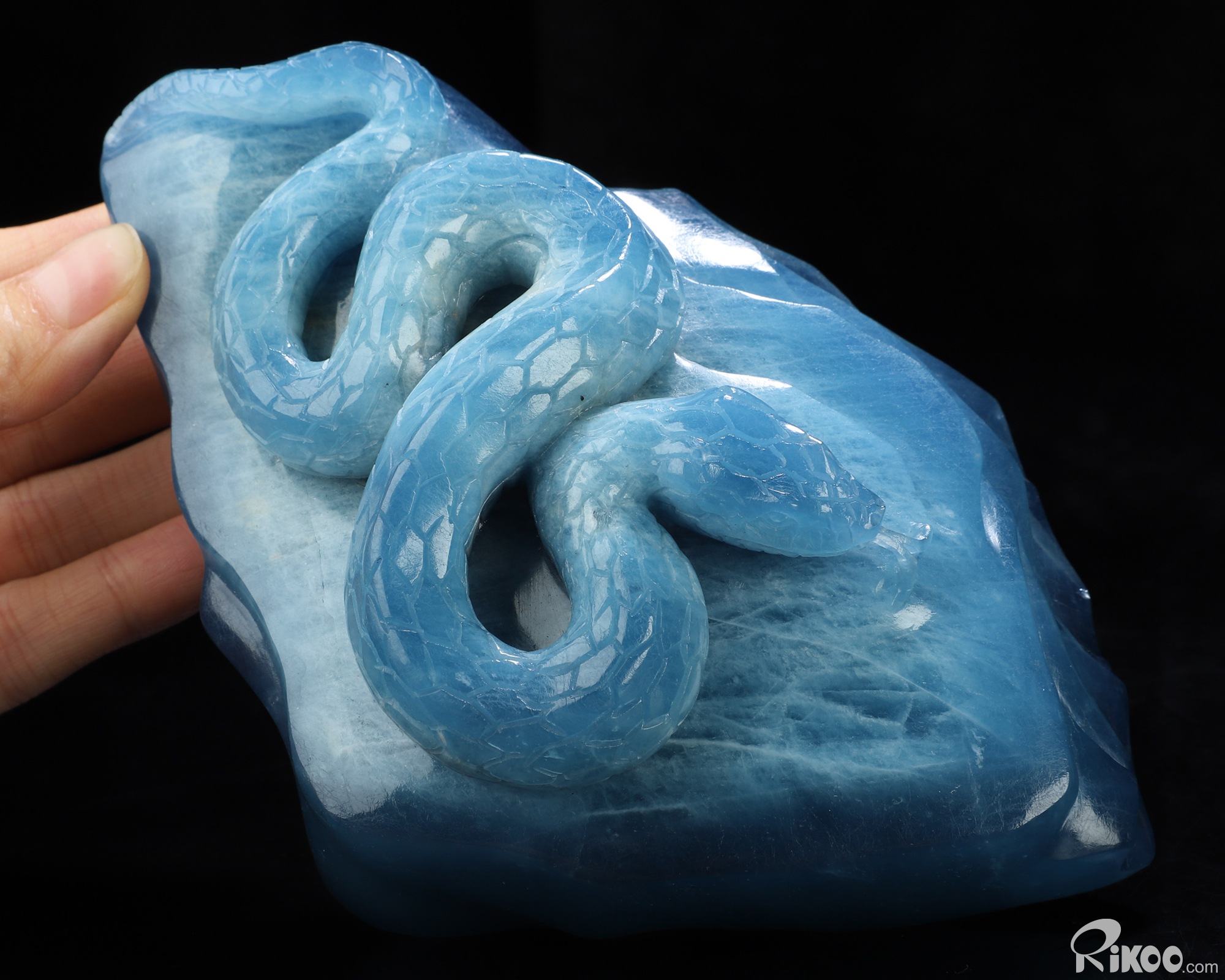 Gemstone 4.9" Aquamarine Hand Carved Crystal Snake Sculpture, Crystal Healing