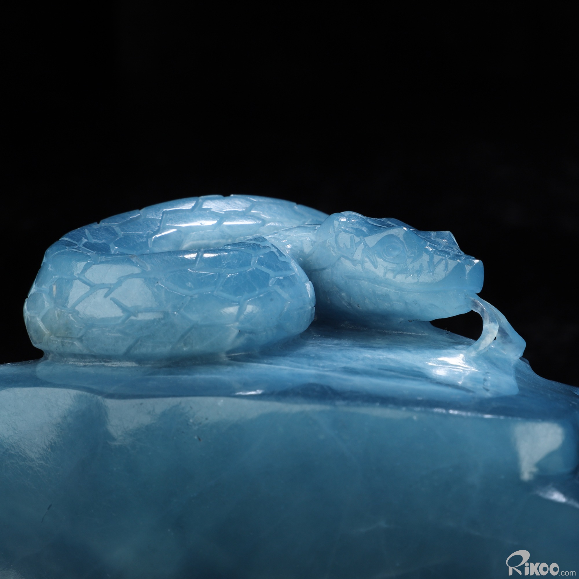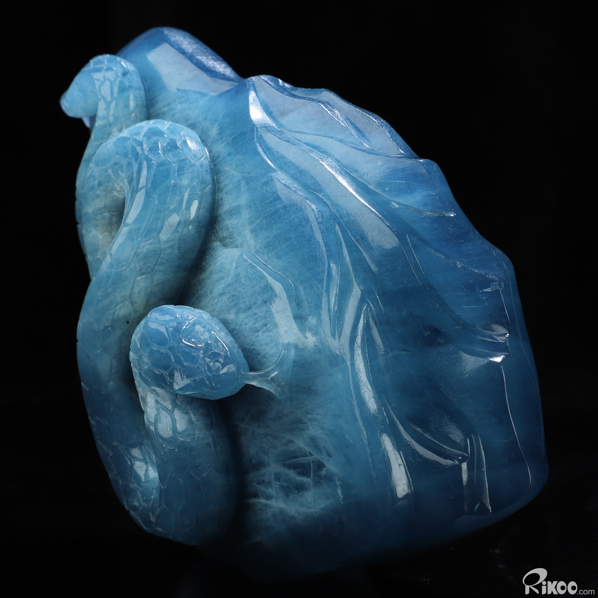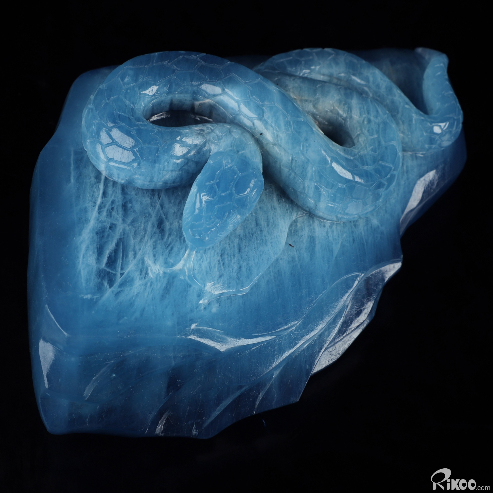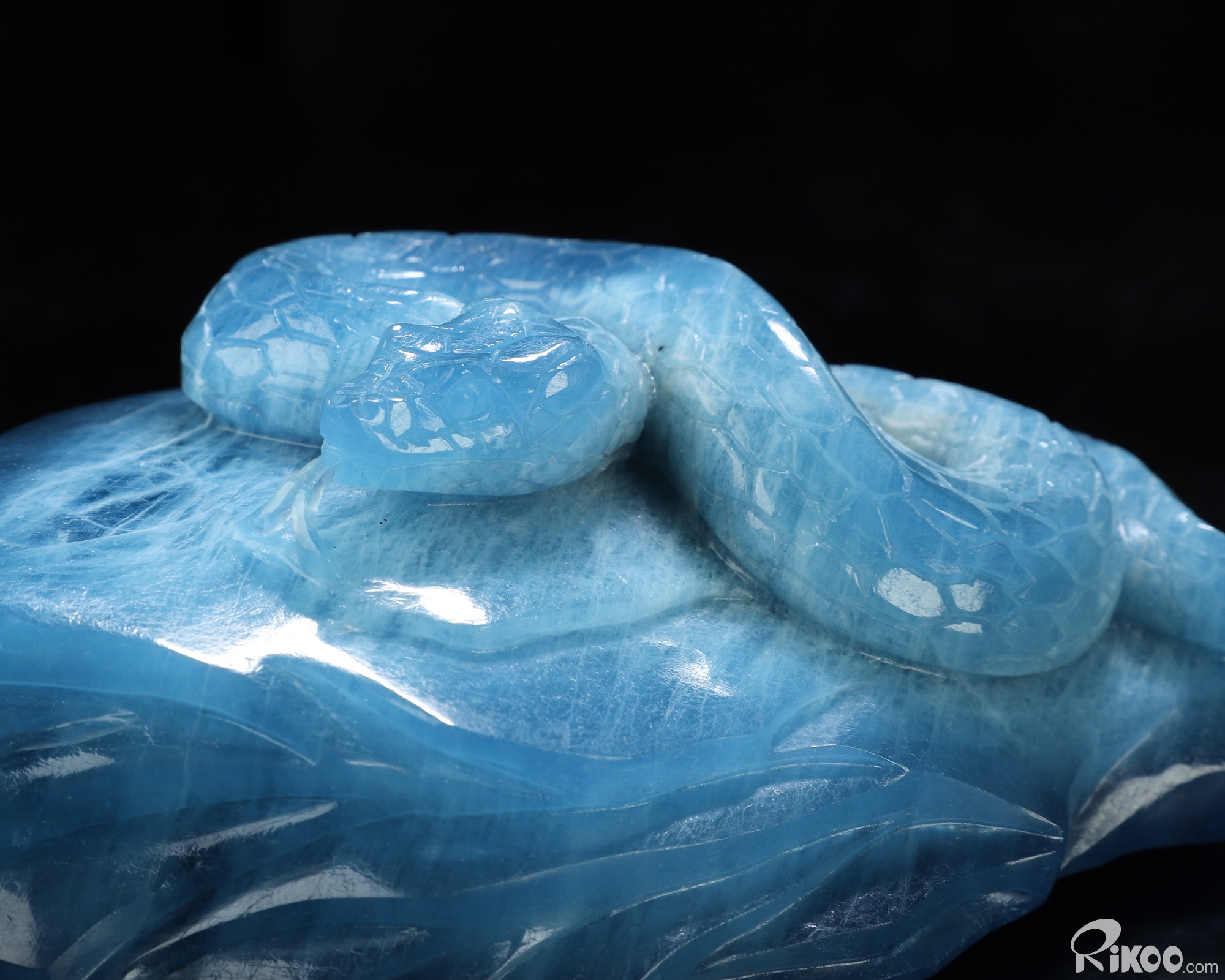 Gemstone 4.9" Aquamarine Hand Carved Crystal Snake Sculpture, Crystal Healing