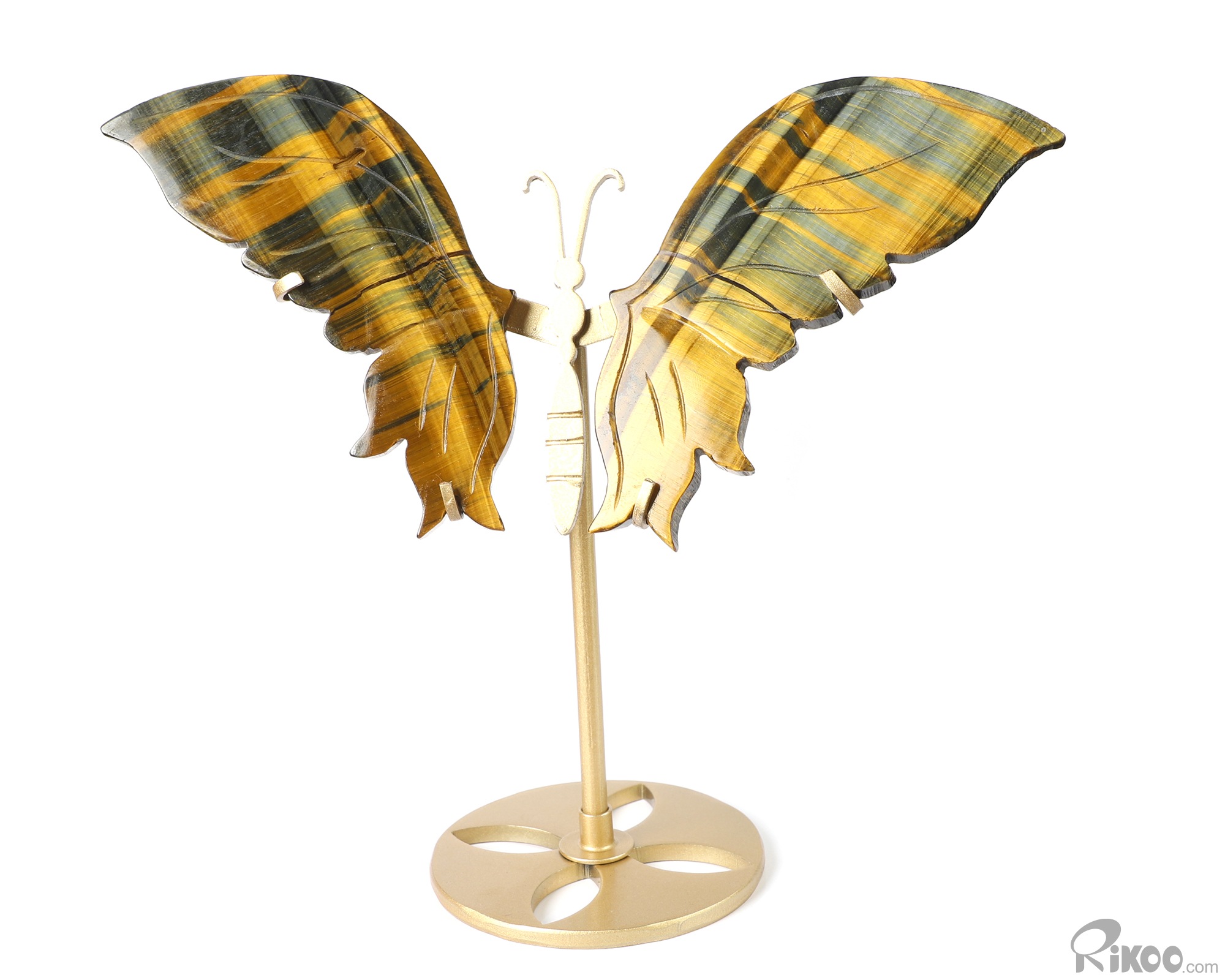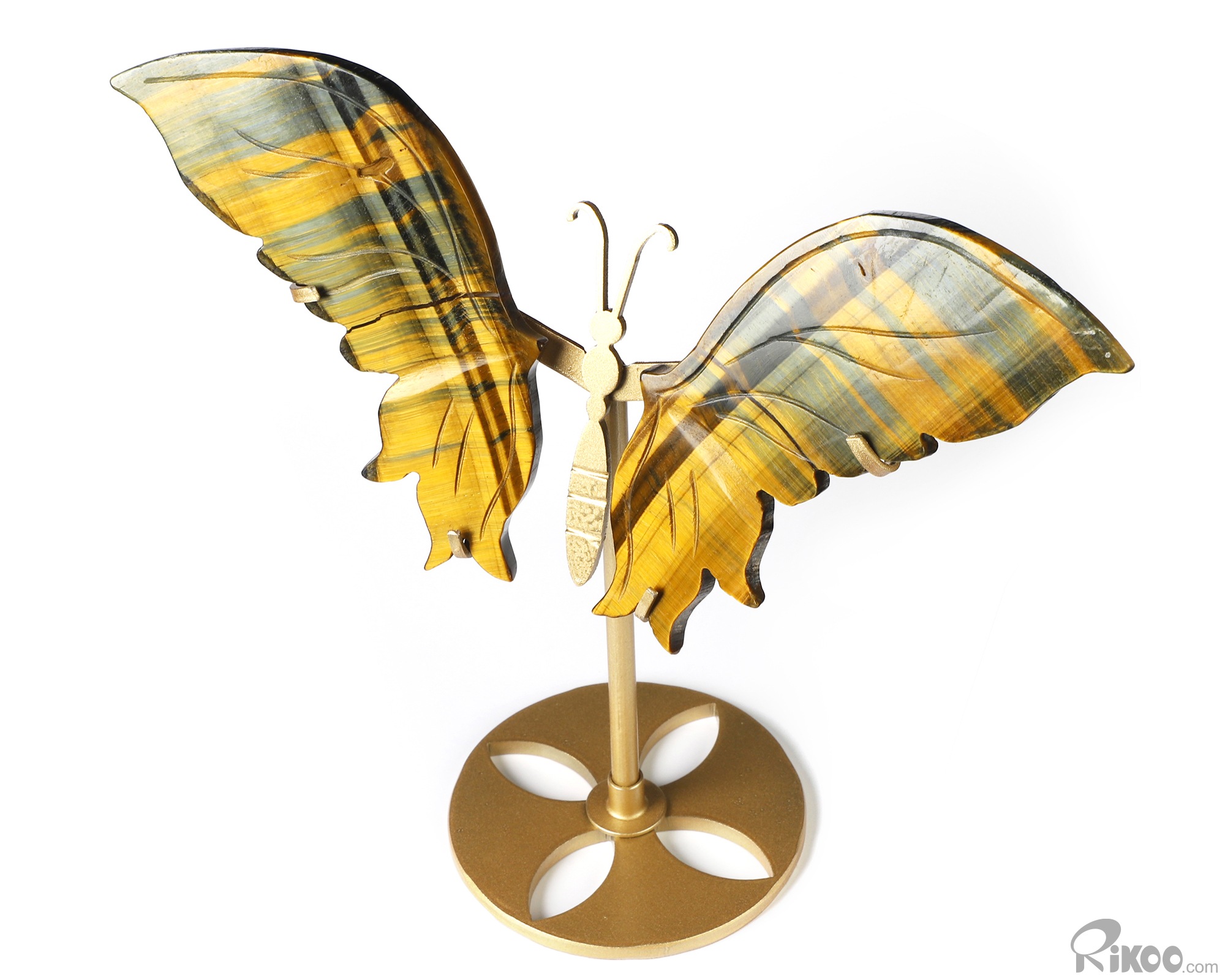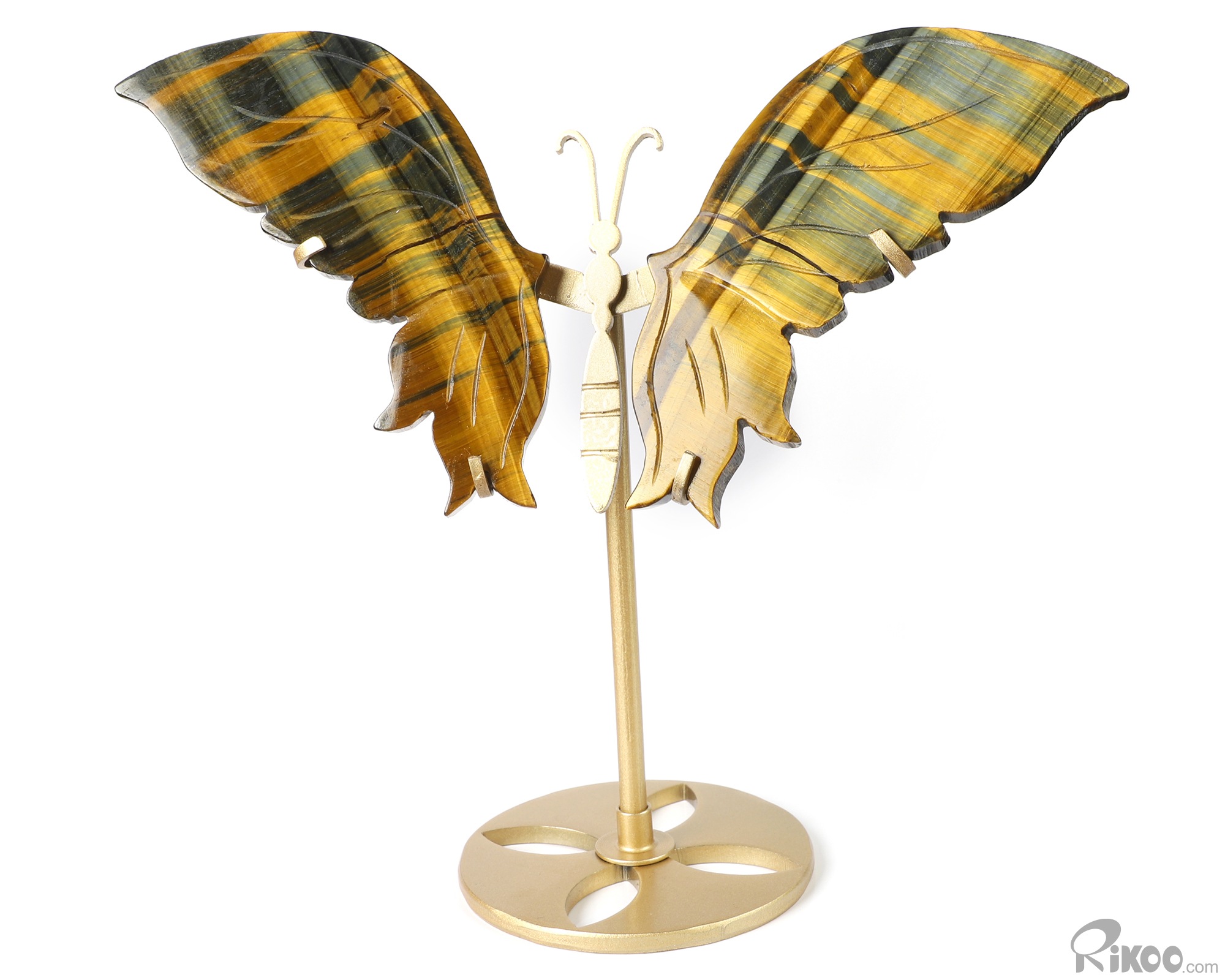 Gemstone 4.9" Blue & Gold Tiger's Eye Hand Carved Crystal Butterfly with Stand, Crystal Healing
