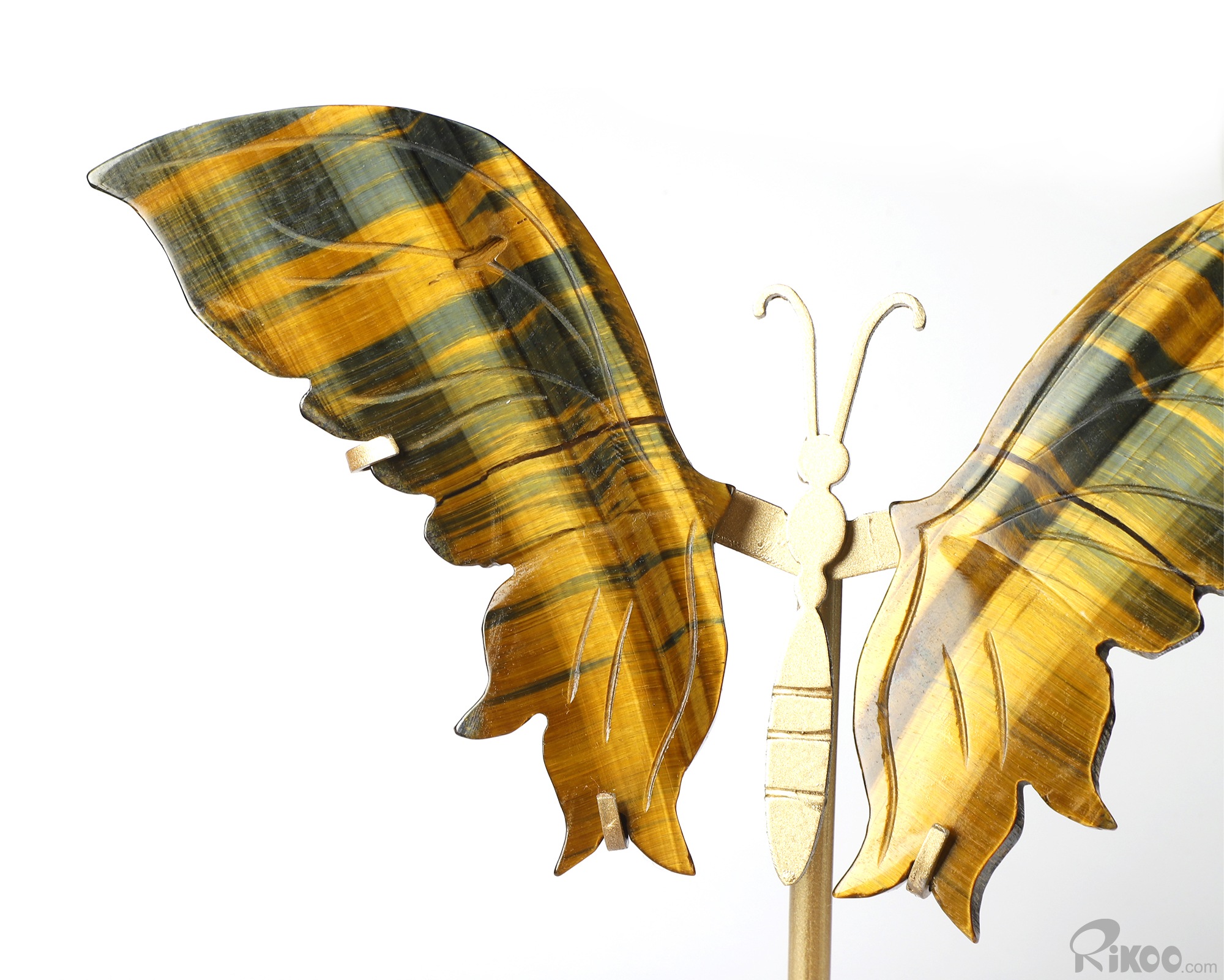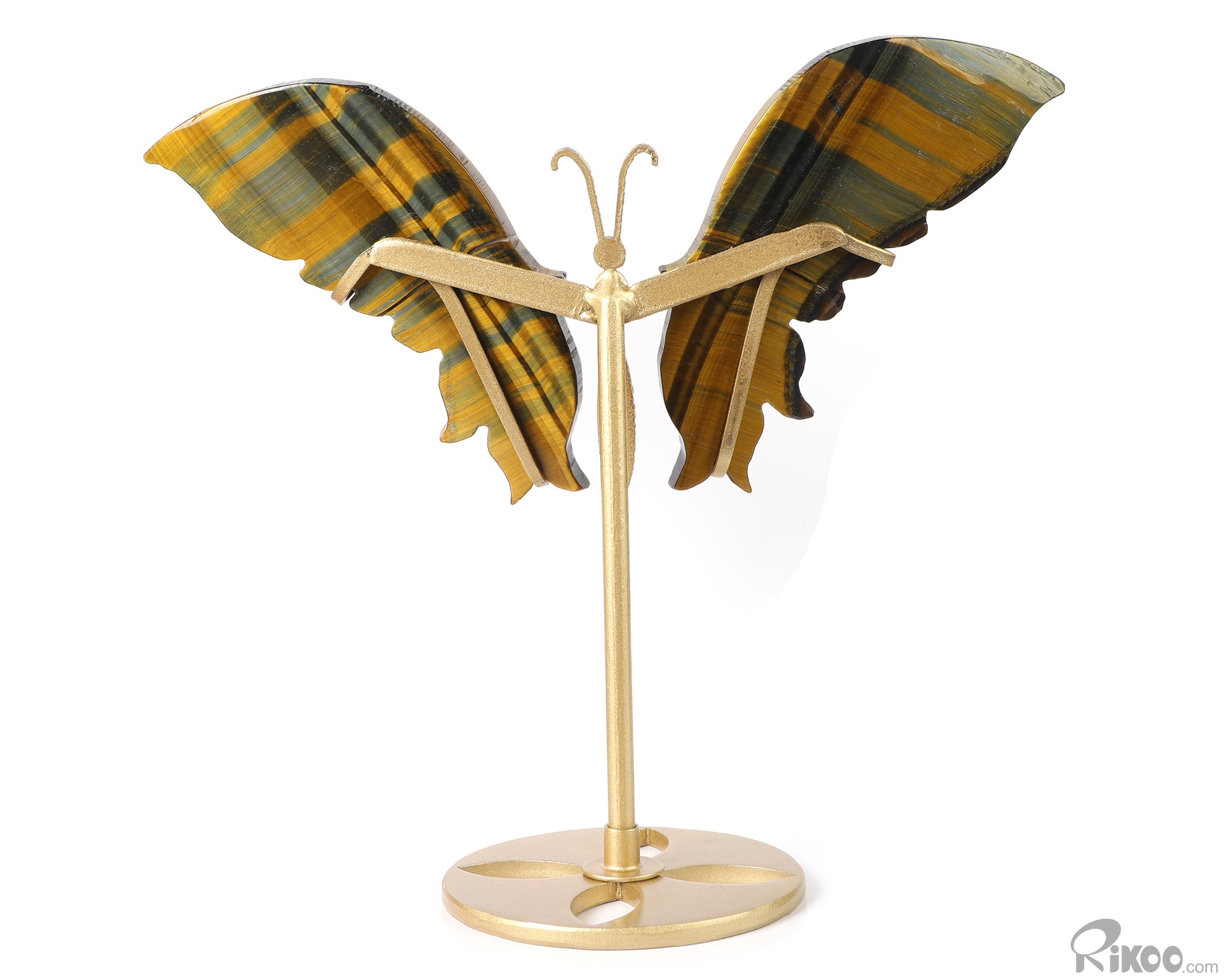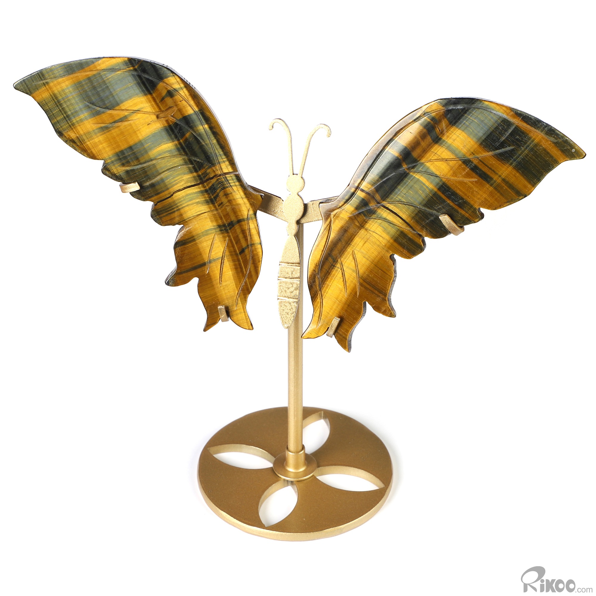 Gemstone 4.9" Blue & Gold Tiger's Eye Hand Carved Crystal Butterfly with Stand, Crystal Healing