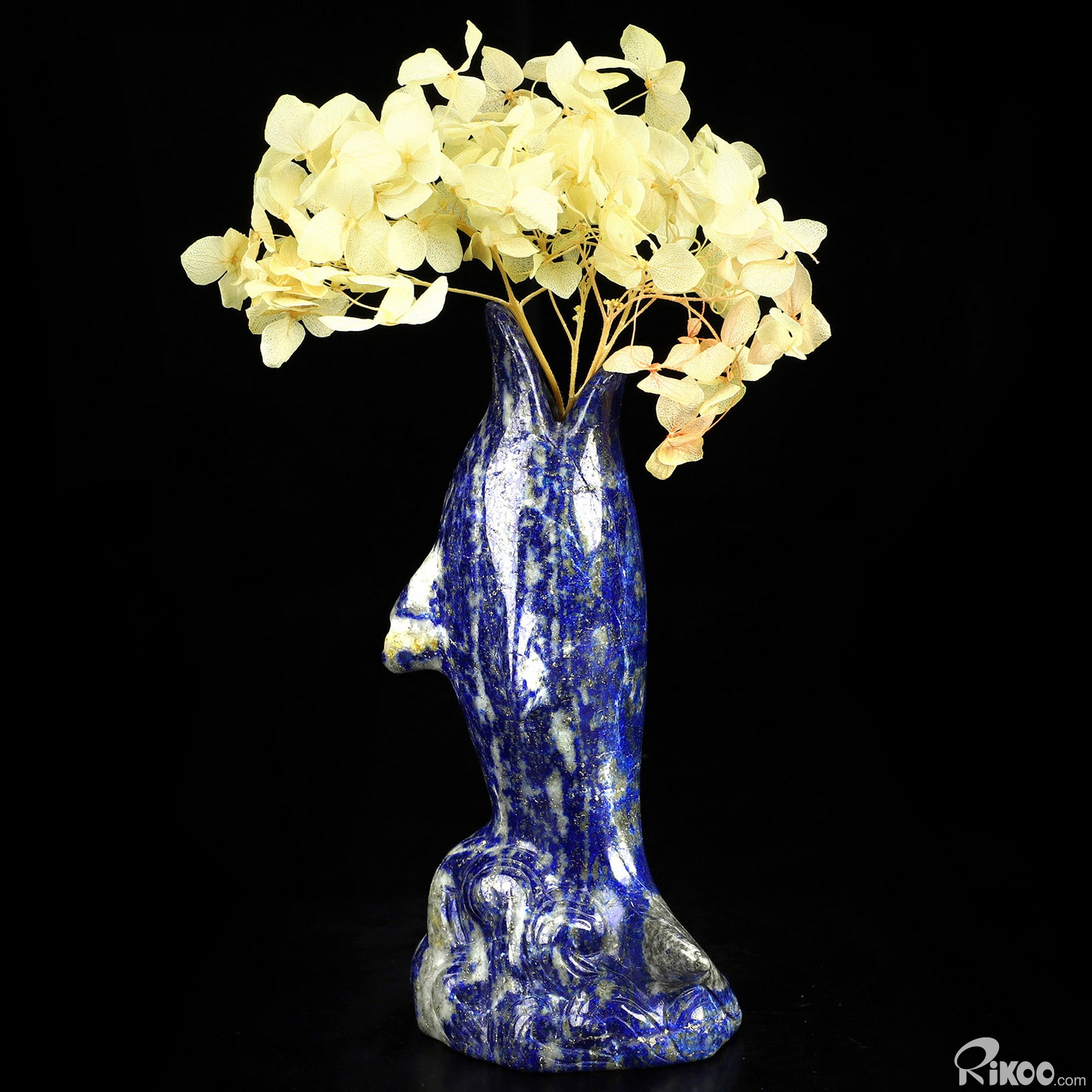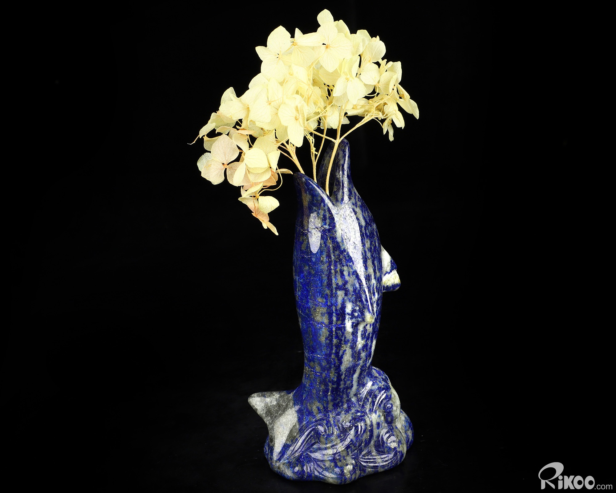 Gemstone 5.0" Lapis Lazuli Hand Carved Crystal Dolphin Vase Sculpture, Crystal Healing