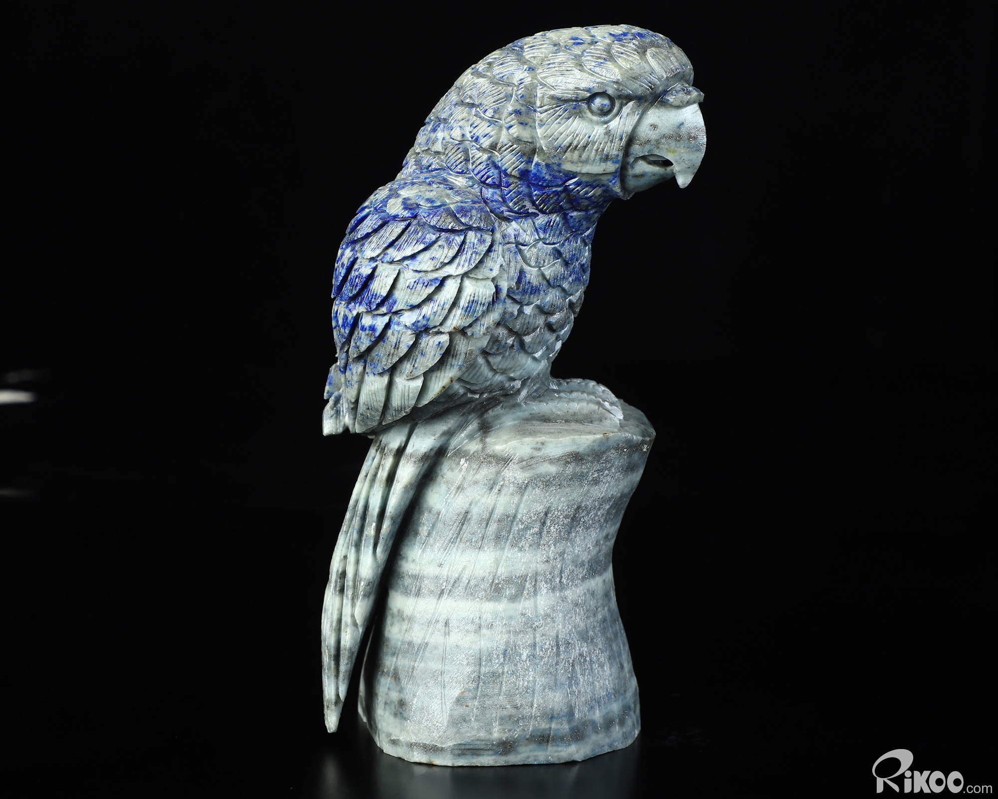 Gemstone 5.3" Lapis Lazuli Hand Carved Crystal Parrot Sculpture, Crystal Healing